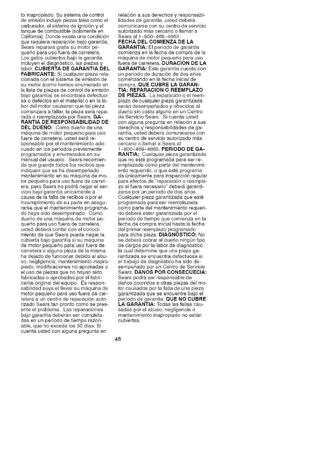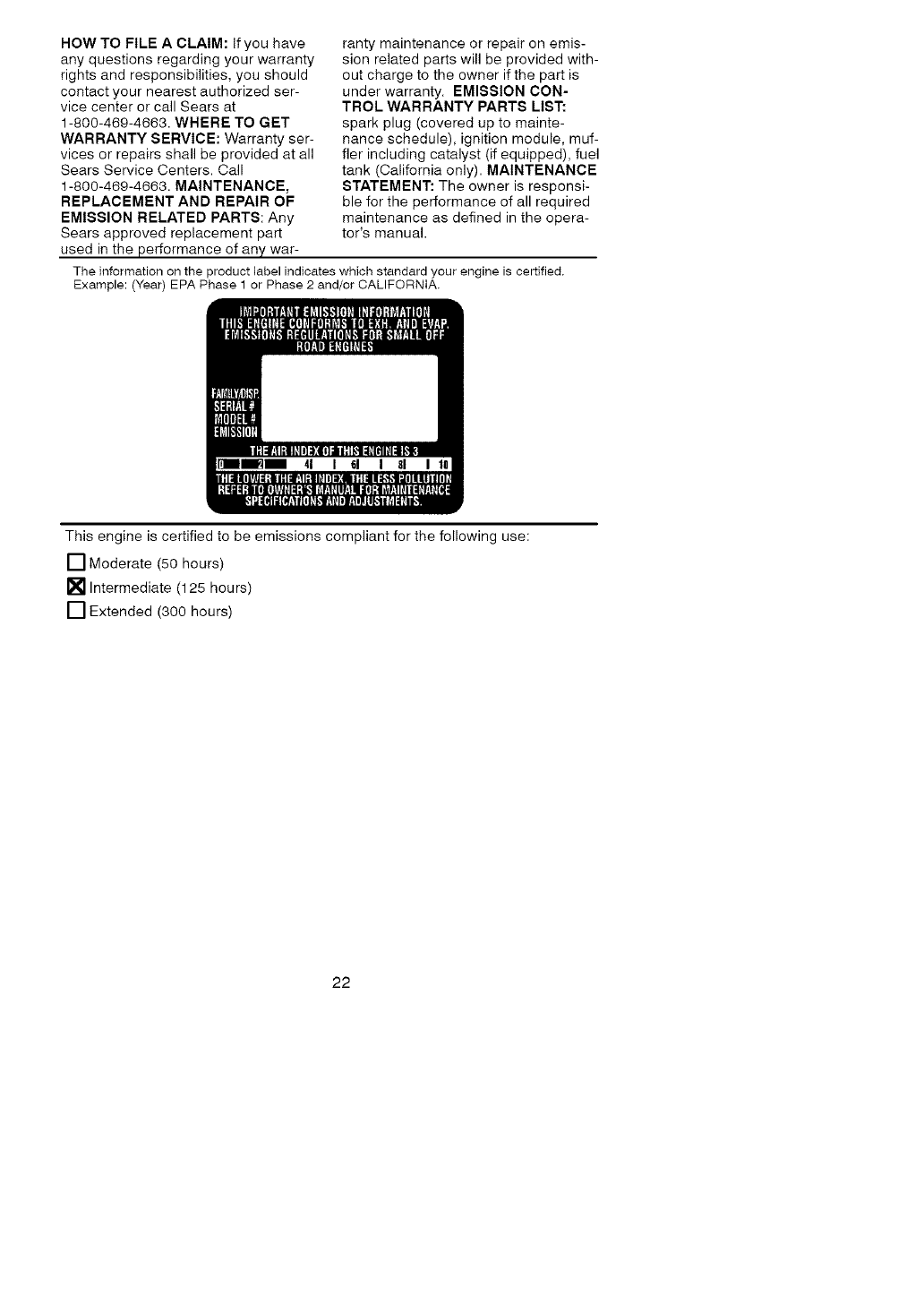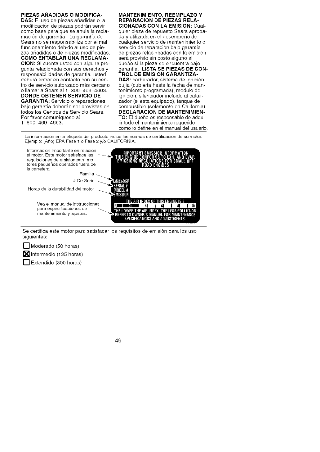 La informaci6n en ia etiqueta del producto indica 1as normas de certificaci6n de su motor.