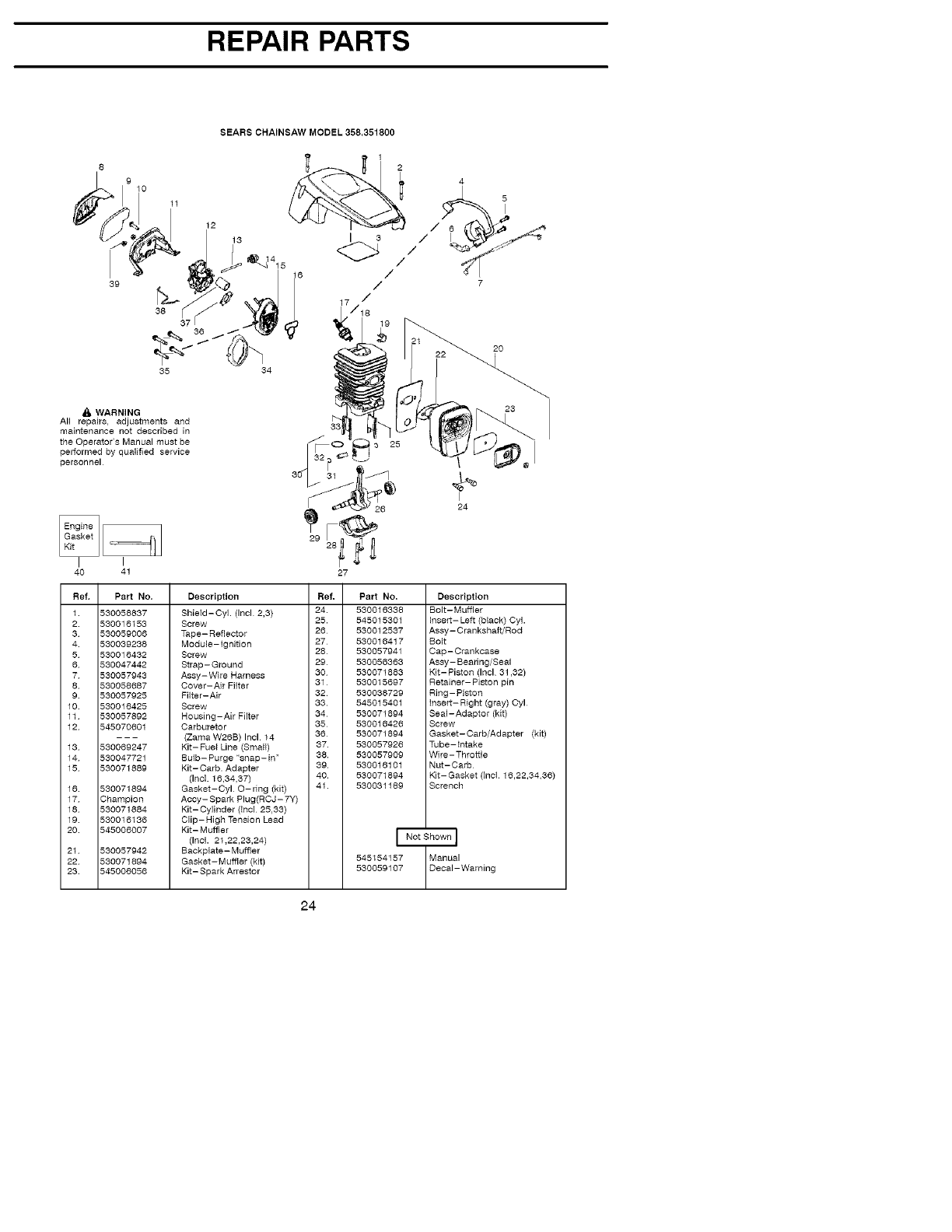 User Manual: Craftsman 358351800 358351800 CRAFTSMAN CHAIN SAW - Manuals and Guides View the owners manual for your CRAFTSMAN CHAIN SAW #358351800. Home:Lawn & Garden Parts:Craftsman Parts:Craftsman CHAIN SAW Manual
