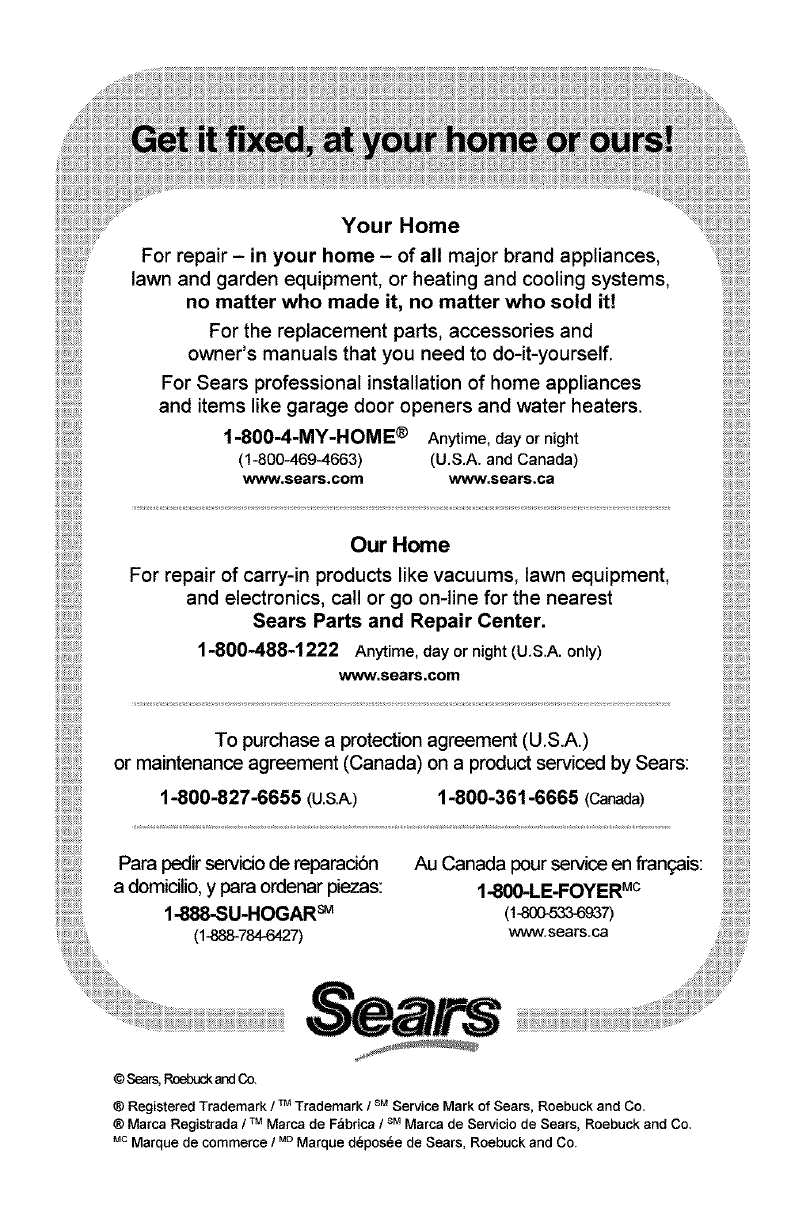 ®Registered Trademark /T_ Trademark /SMService Mark of Sears, Roebuck and Co.