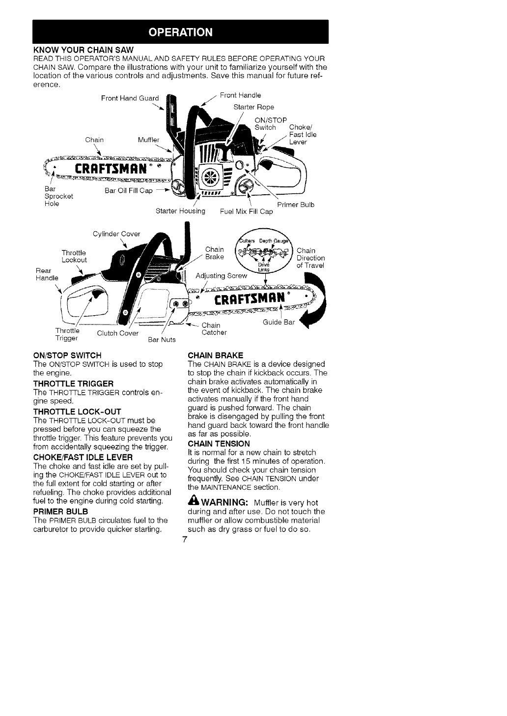 ONE YEAR FULL WARRANTY ON CRAFTSMAN CHAIN SAW