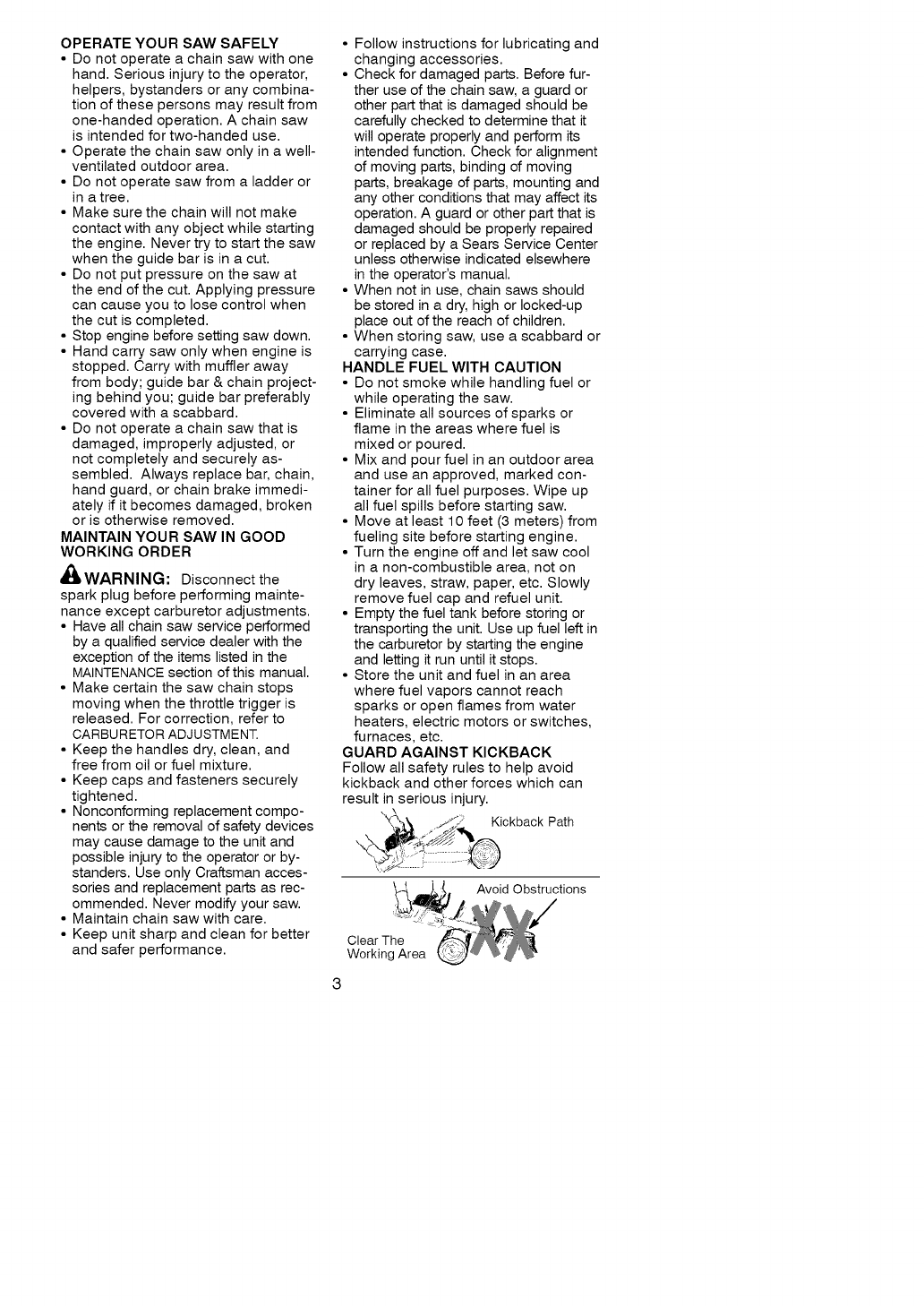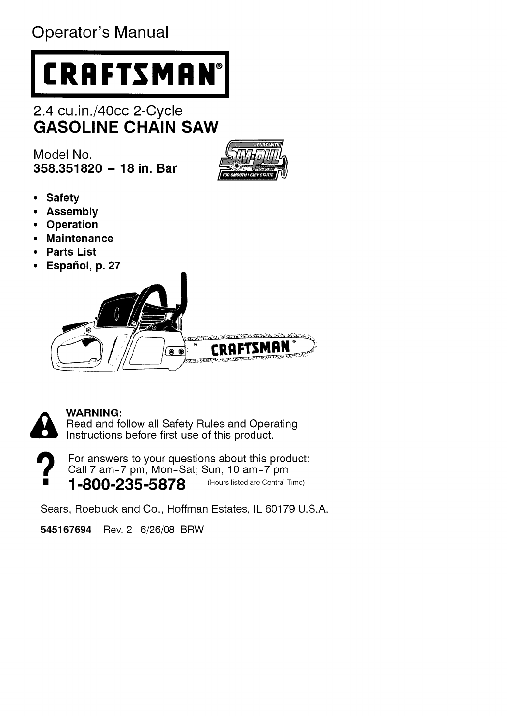 Craftsman 358351820 User Manual CHAIN SAW Manuals And Guides L0809456