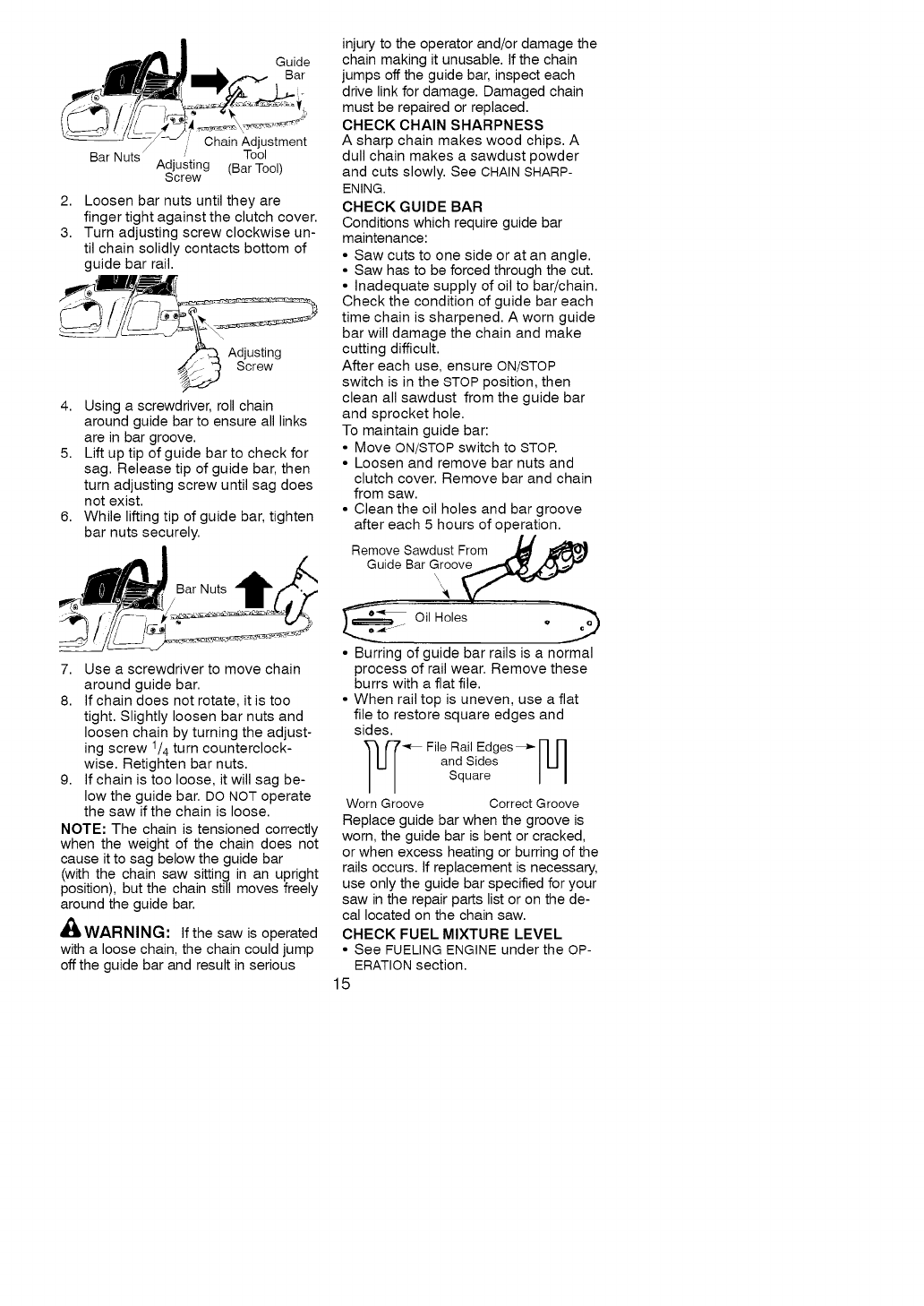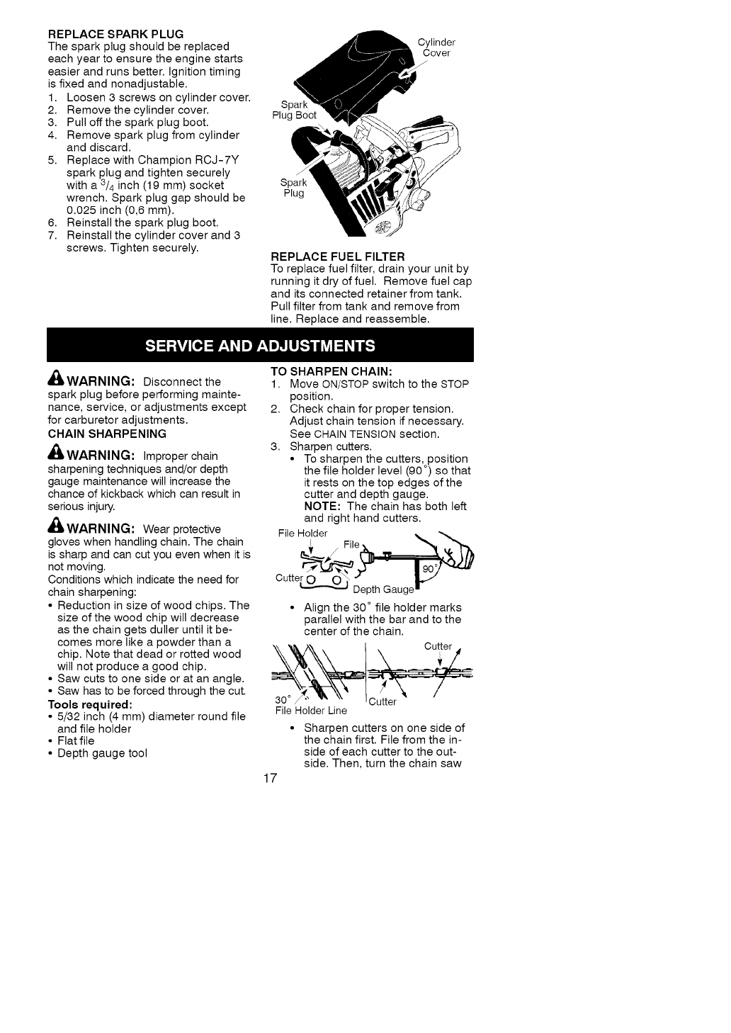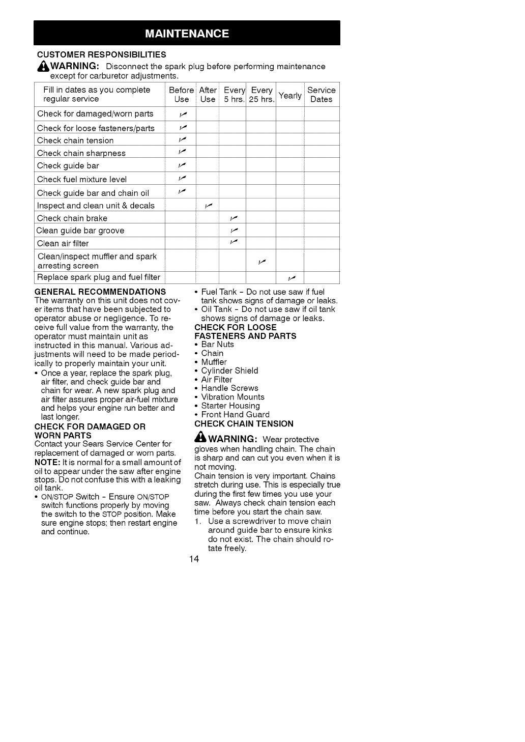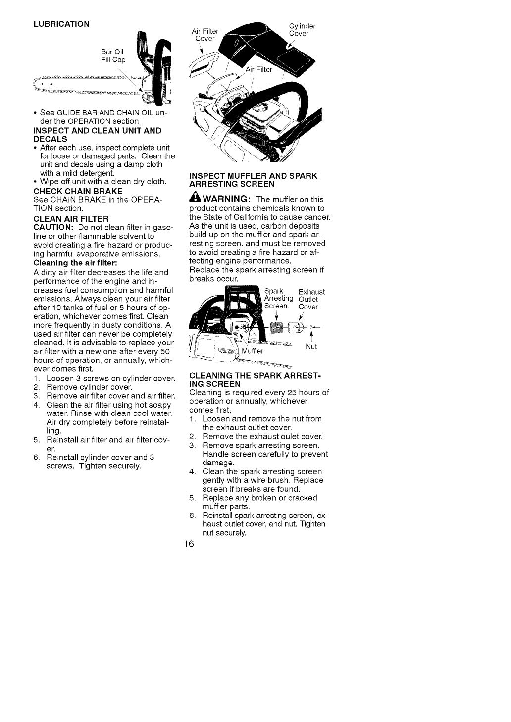 This warranty excludes the bar, chain, spark plug and air filter, which are expend-
