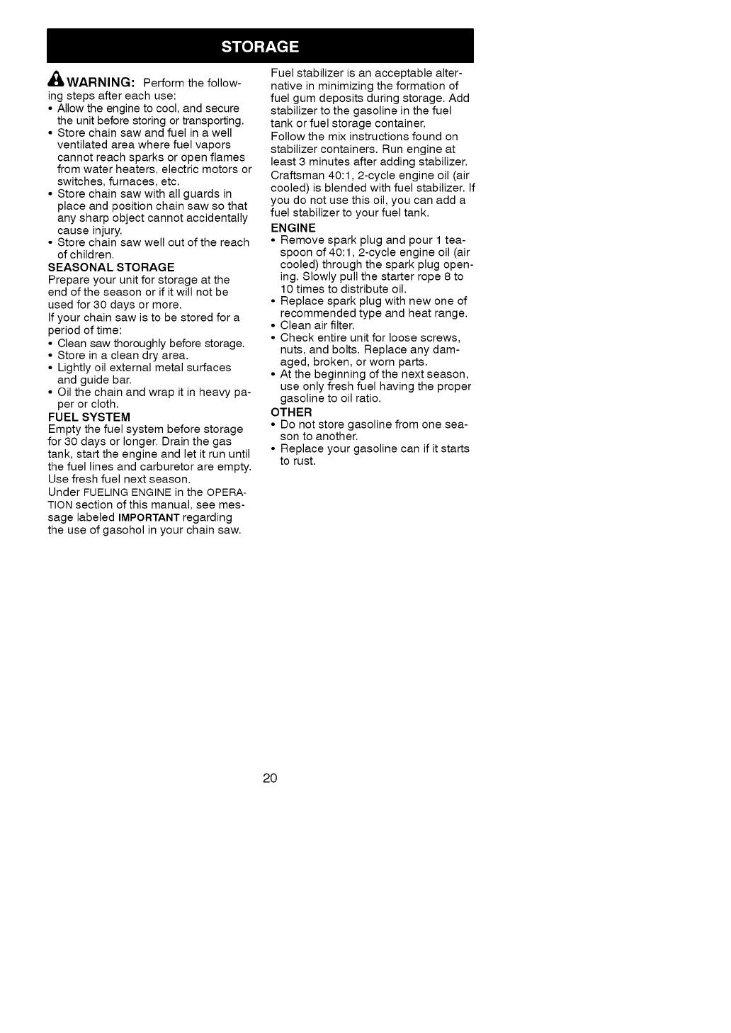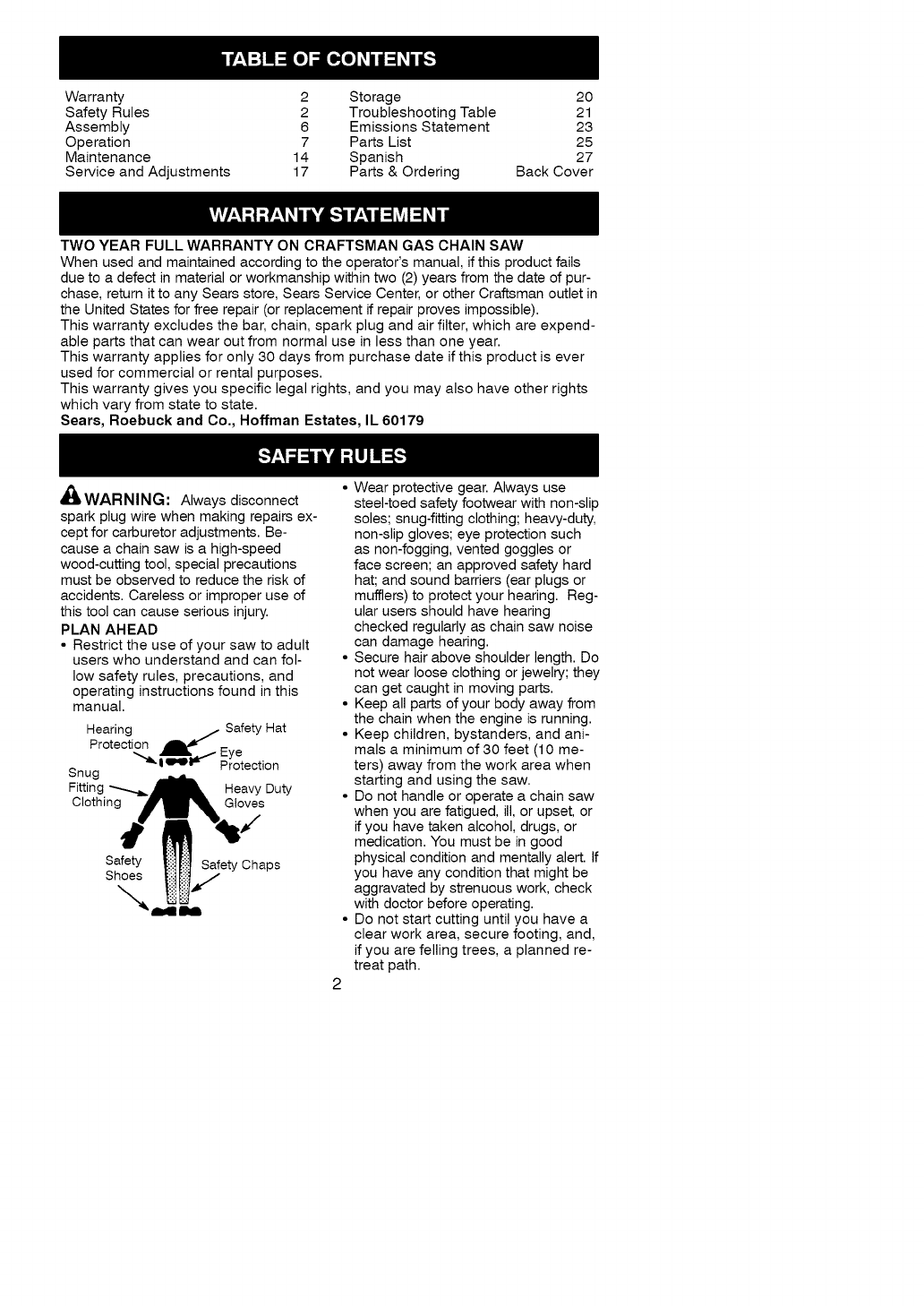 TWO YEAR FULL WARRANTY ON CRAFTSMAN GAS CHAIN SAW