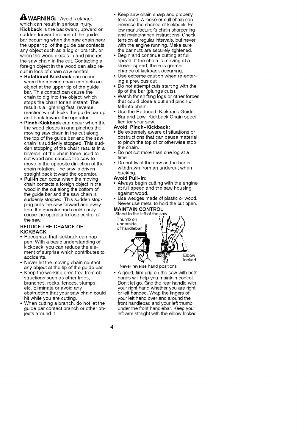 • Do not handle or operate a chain saw