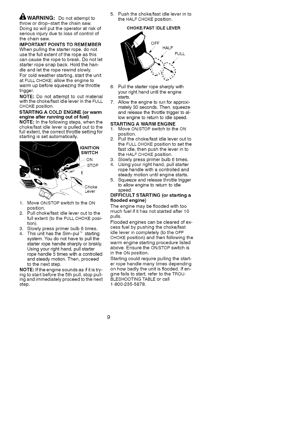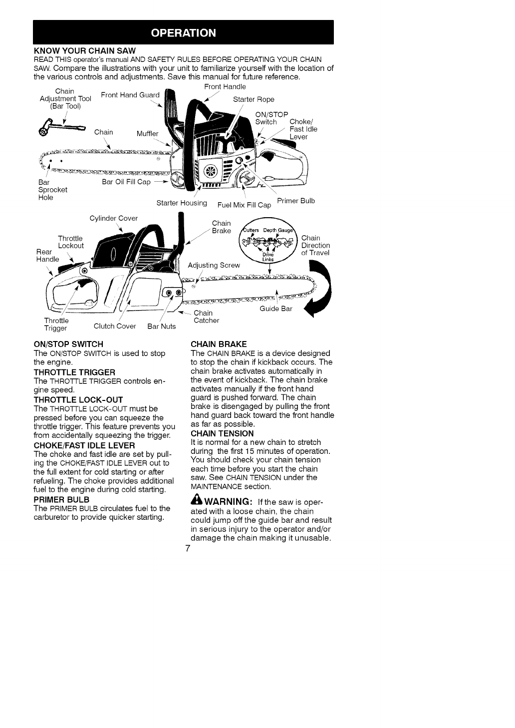 starting and using the saw.