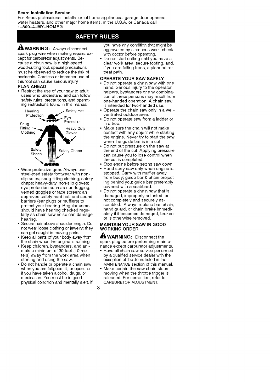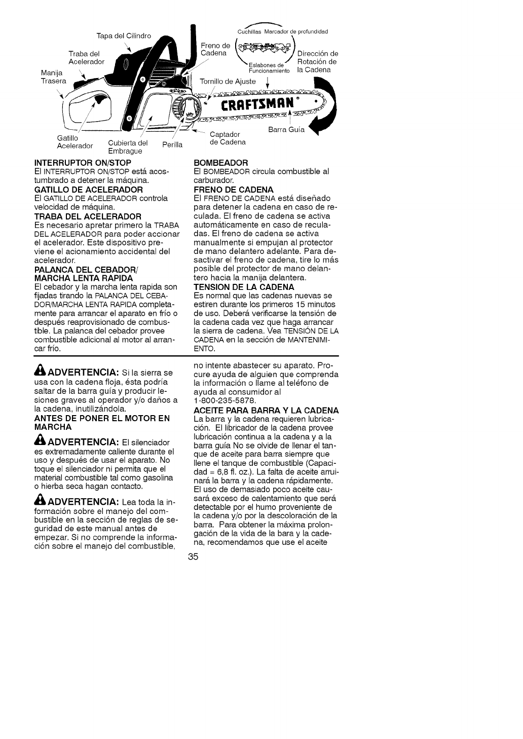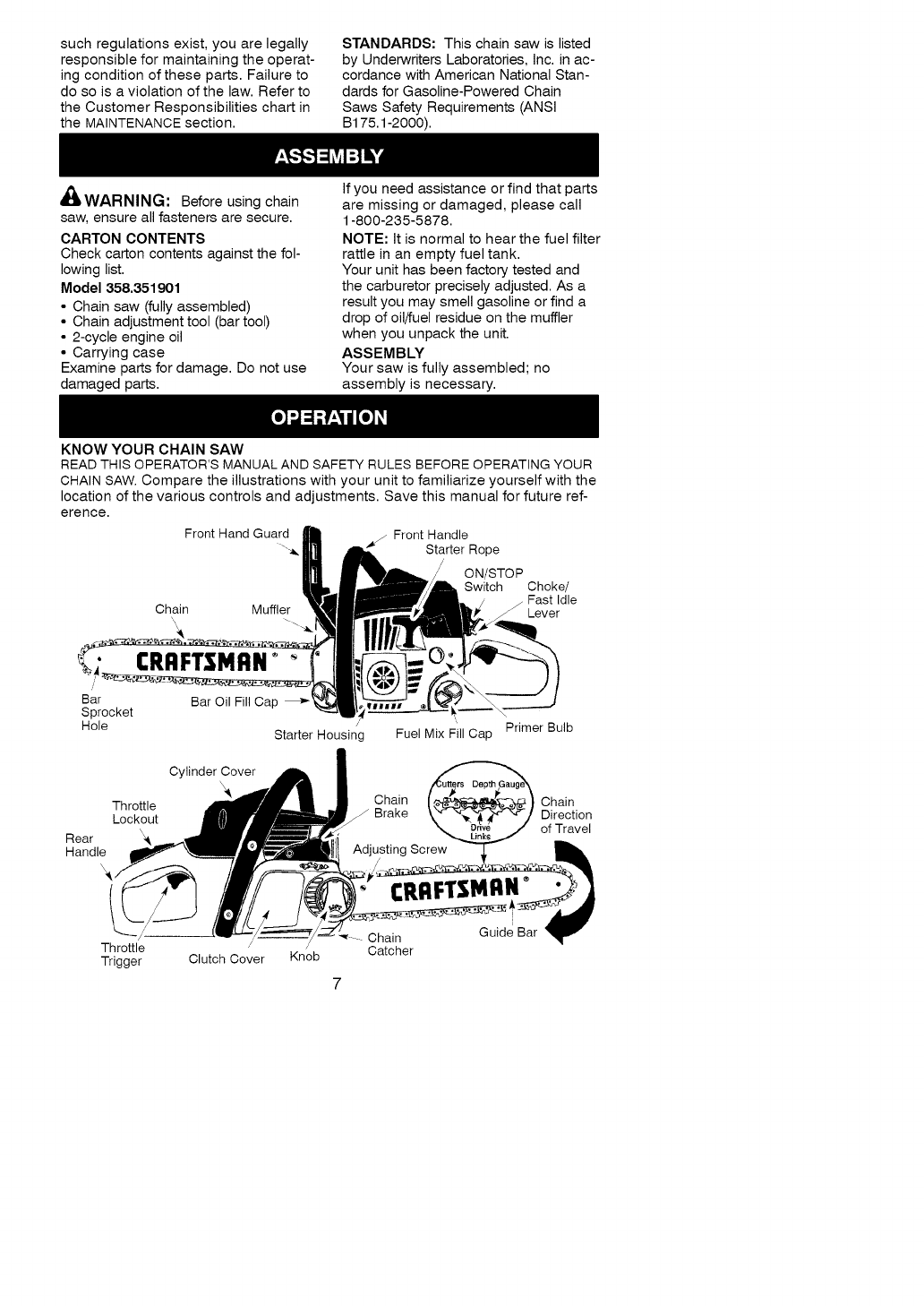 Craftsman 358351901 User Manual CHAIN SAW Manuals And Guides L1004256