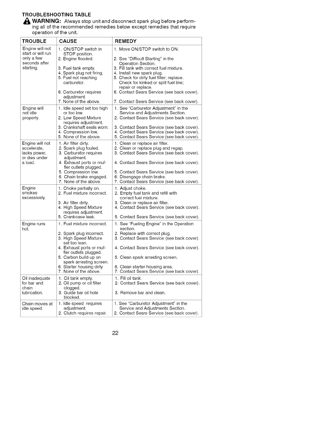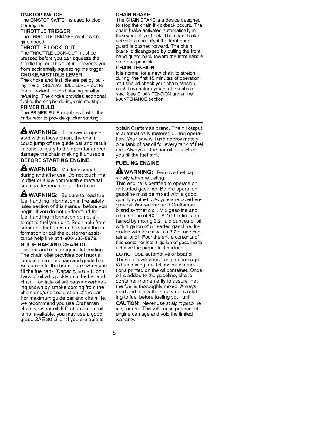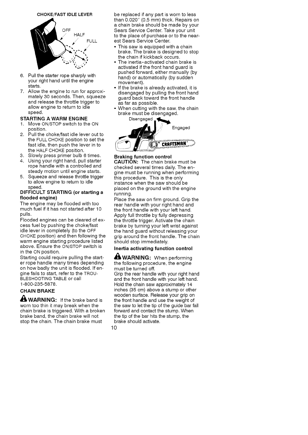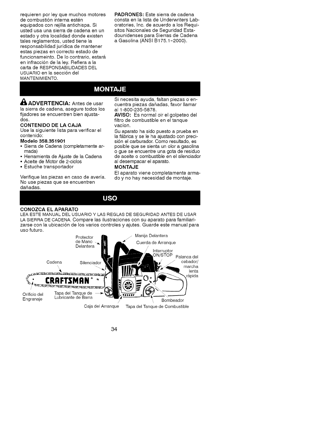 Craftsman 358351901 User Manual CHAIN SAW Manuals And Guides L1004256