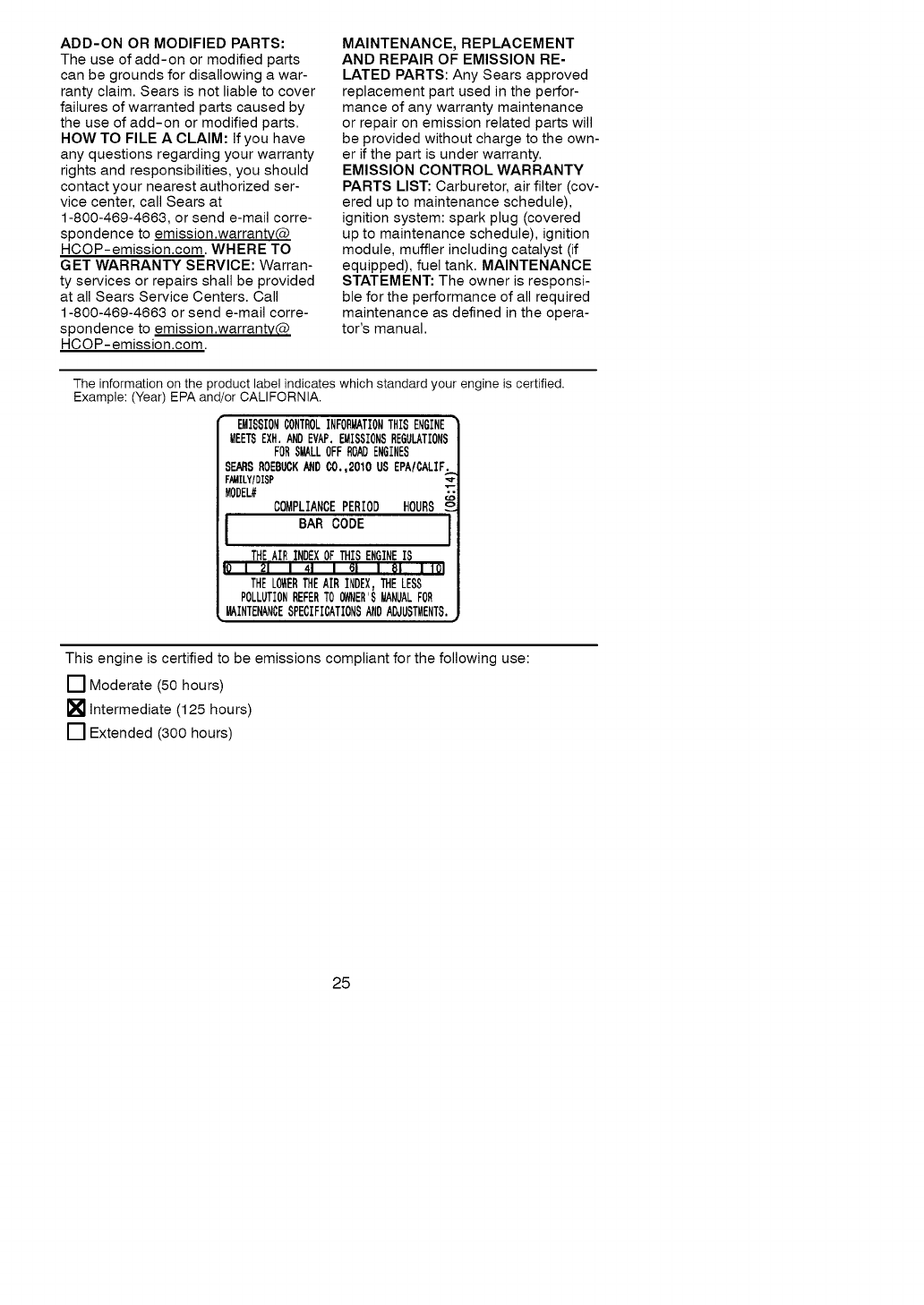 regulaciones de emision para mo- --_ EMISSIONCONTROLINFORMATIONTHIS ENGINE