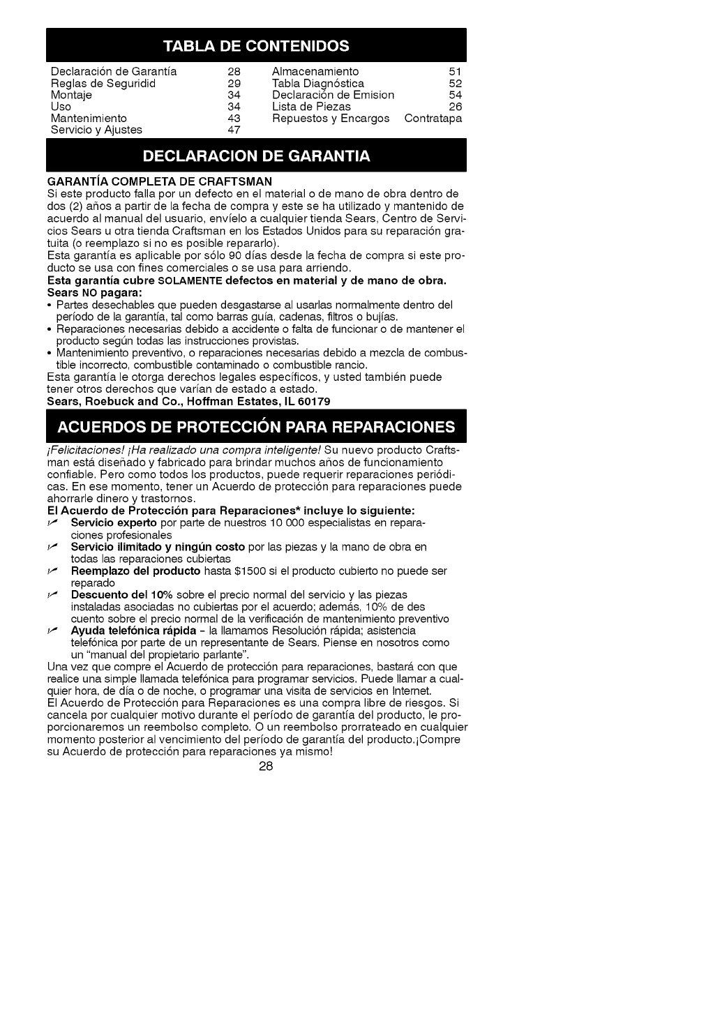 chase, return it to any Sears store, Sears Service Center, or other Craftsman outlet in