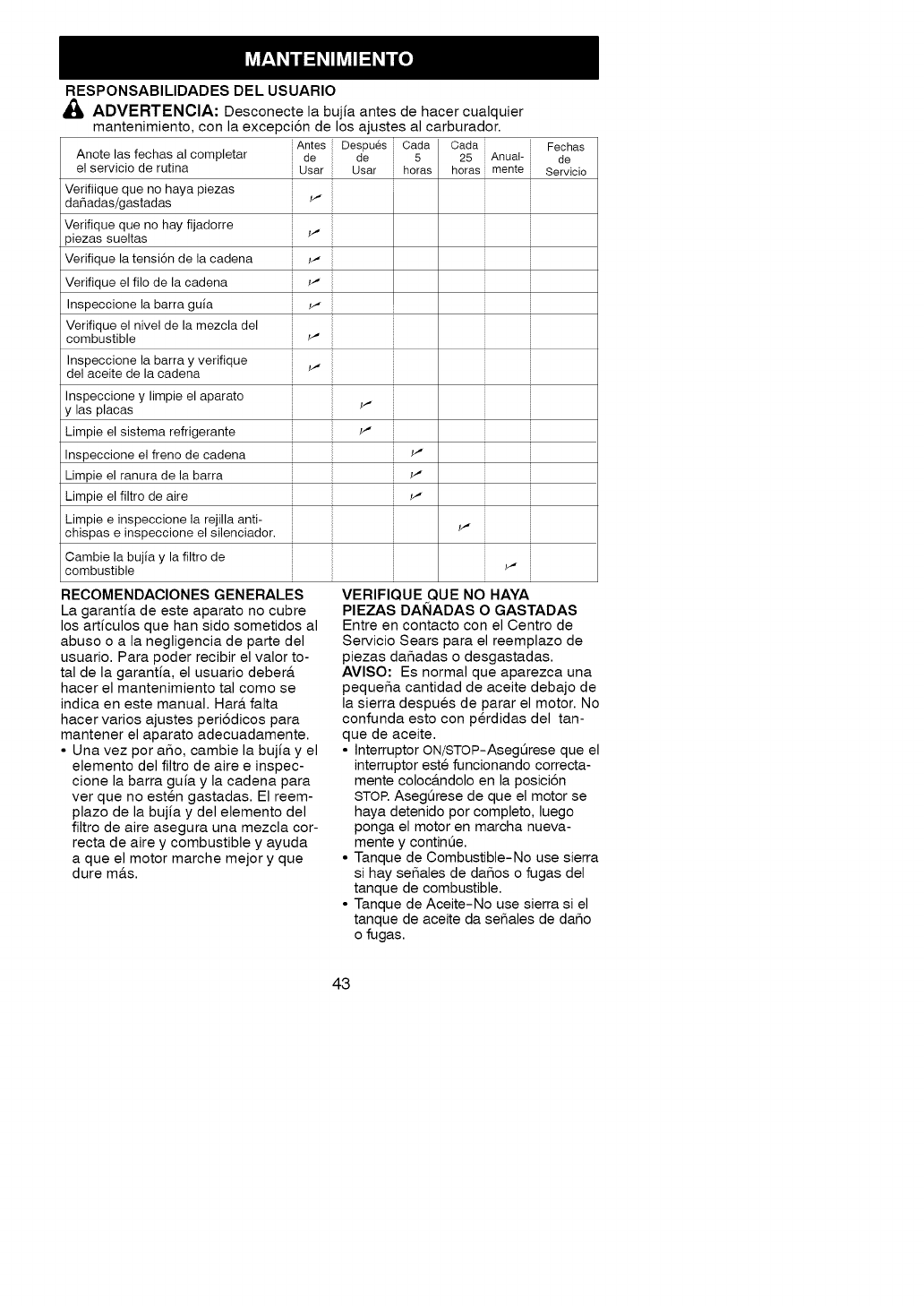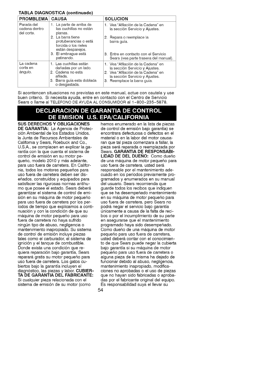 mantenlmlento y ajustes. POLLUTIONREFERTOOWNER'SMANUALFOR