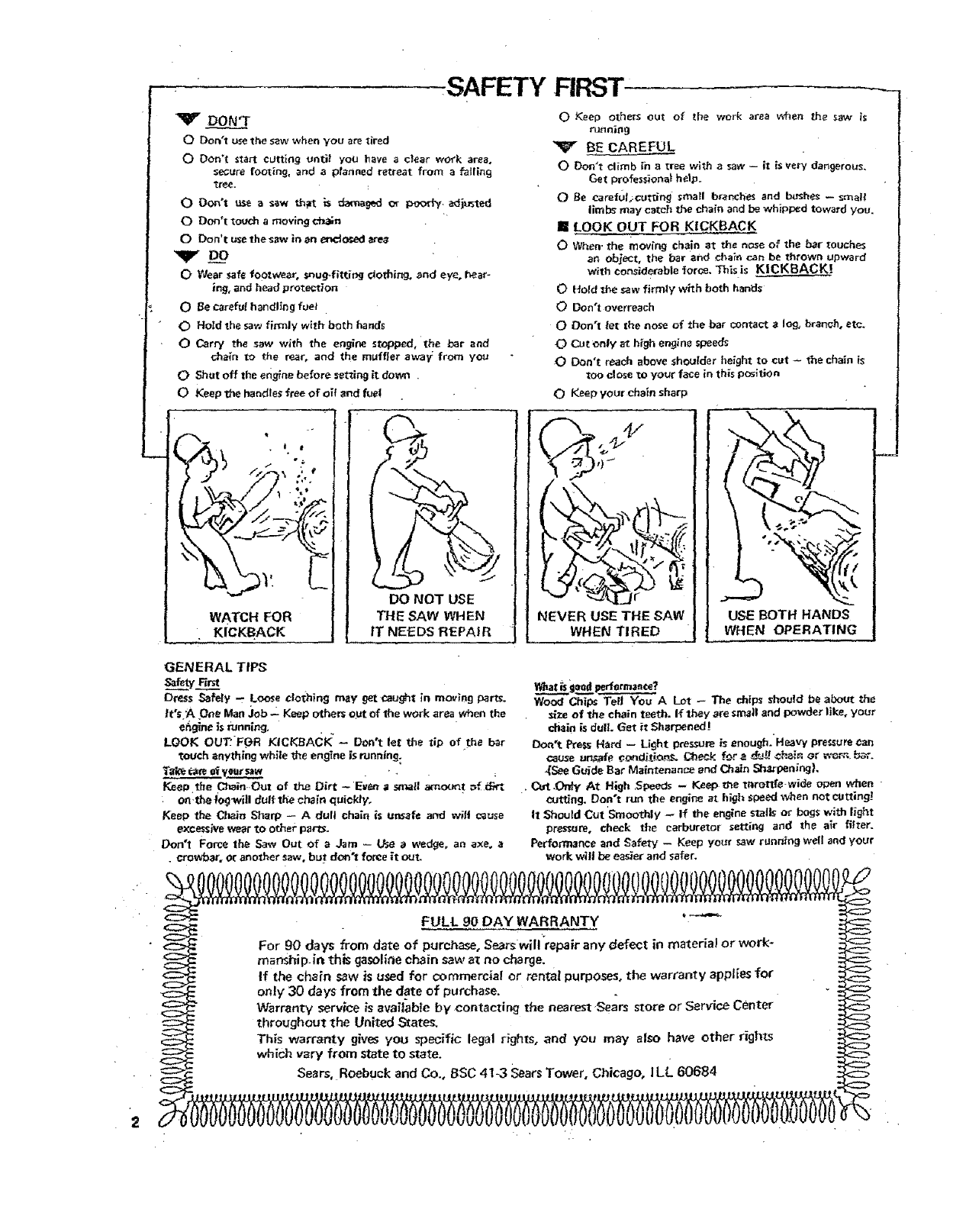 _ For 90 days from date of purchase, Se,ars will "repair any defect in material or work-