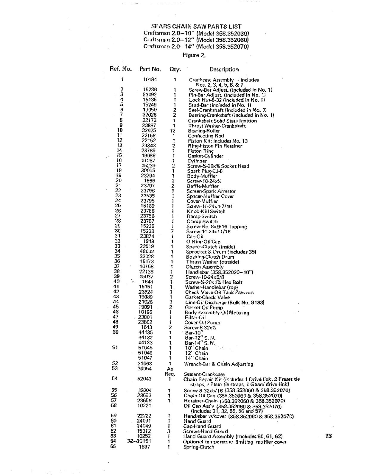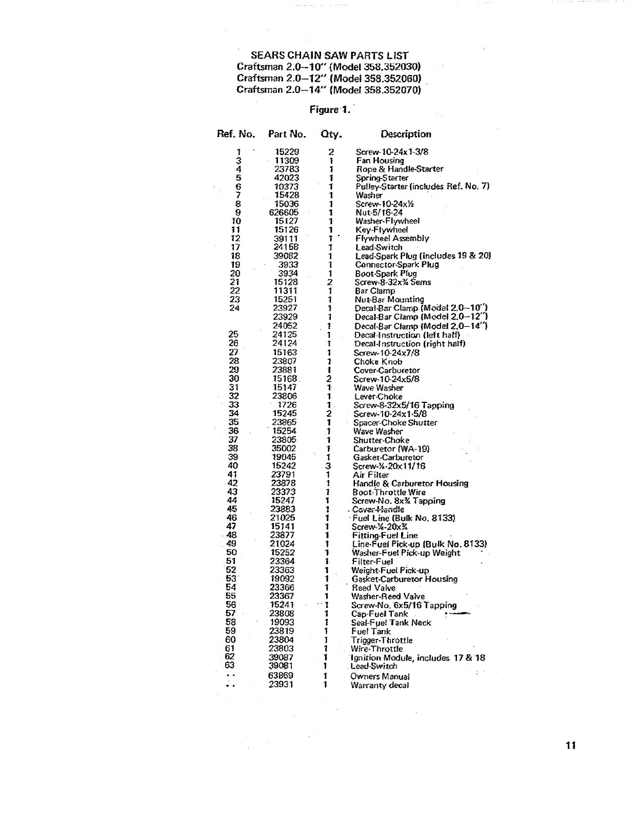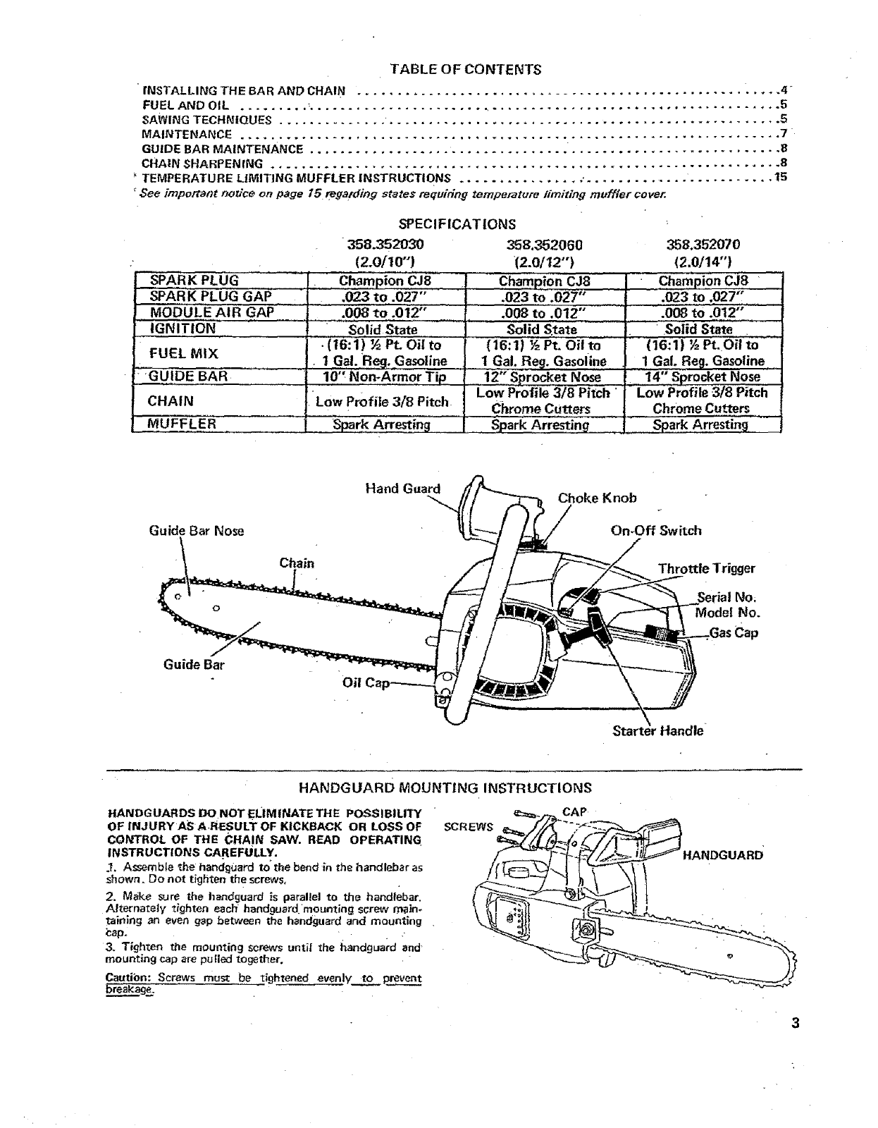 User Manual: Craftsman 358352030 358352030 CRAFTSMAN CHAIN SAW - Manuals and Guides View the owners manual for your CRAFTSMAN CHAIN SAW #358352030. Home:Lawn & Garden Parts:Craftsman Parts:Craftsman CHAIN SAW Manual