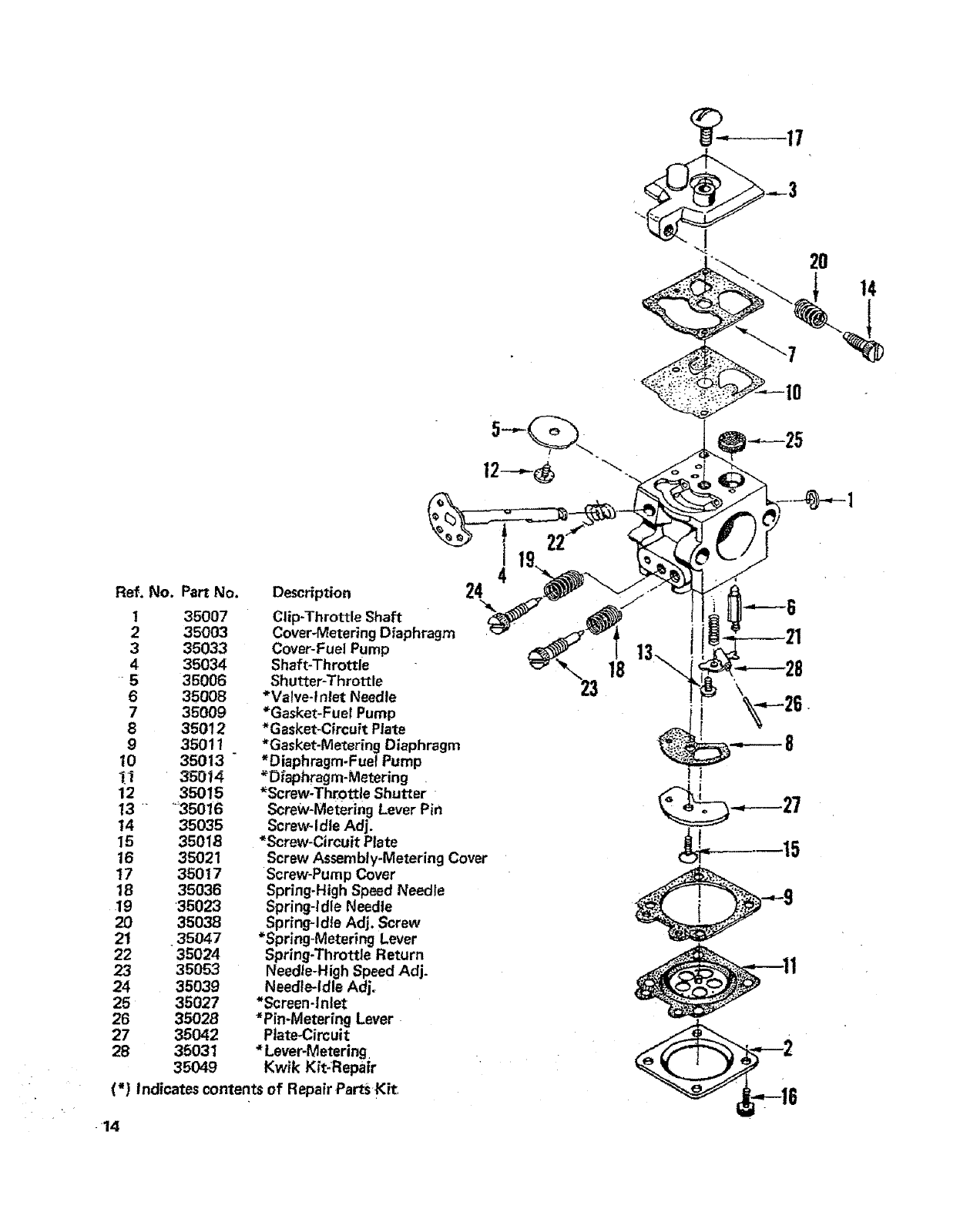 Indicates contents of Repair PartsKit,