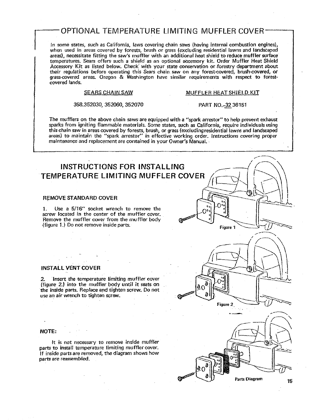temperatures. Sears offers such ashietd as an optional aCcessory kit. Order Muffler Heat Shield