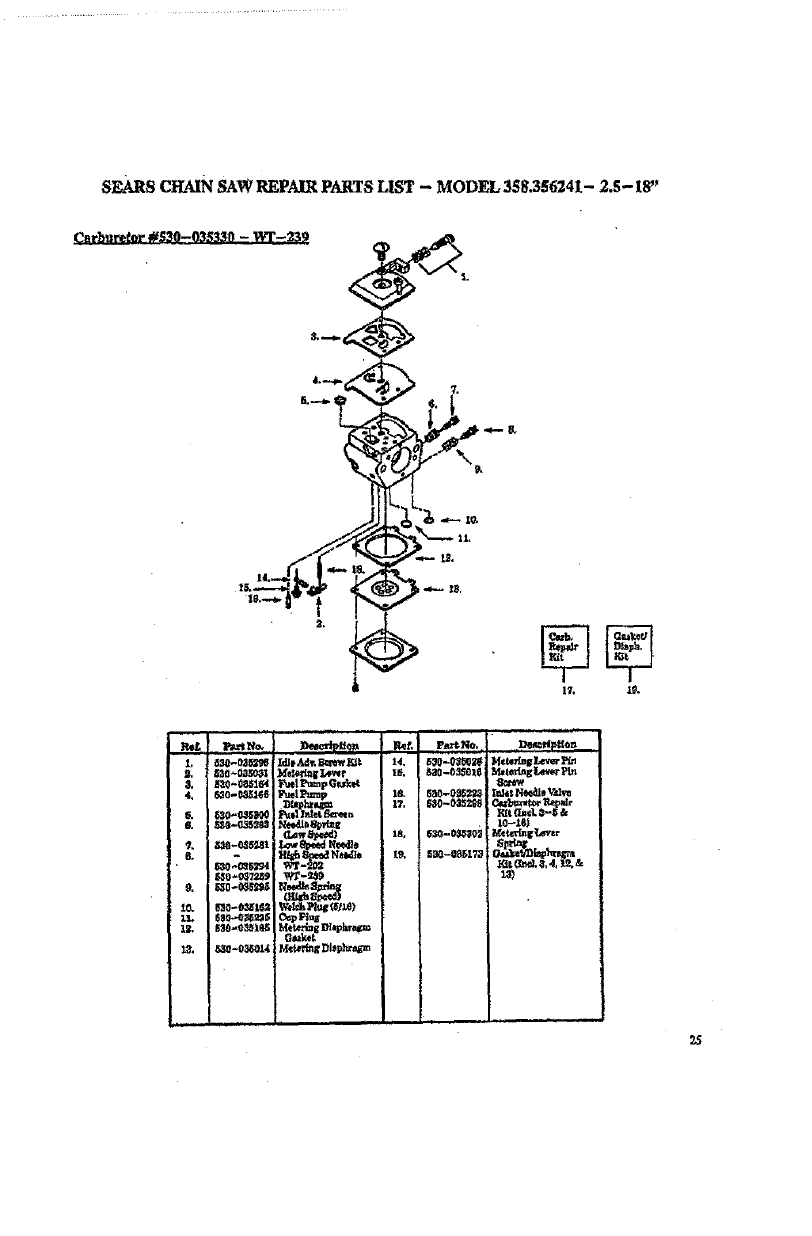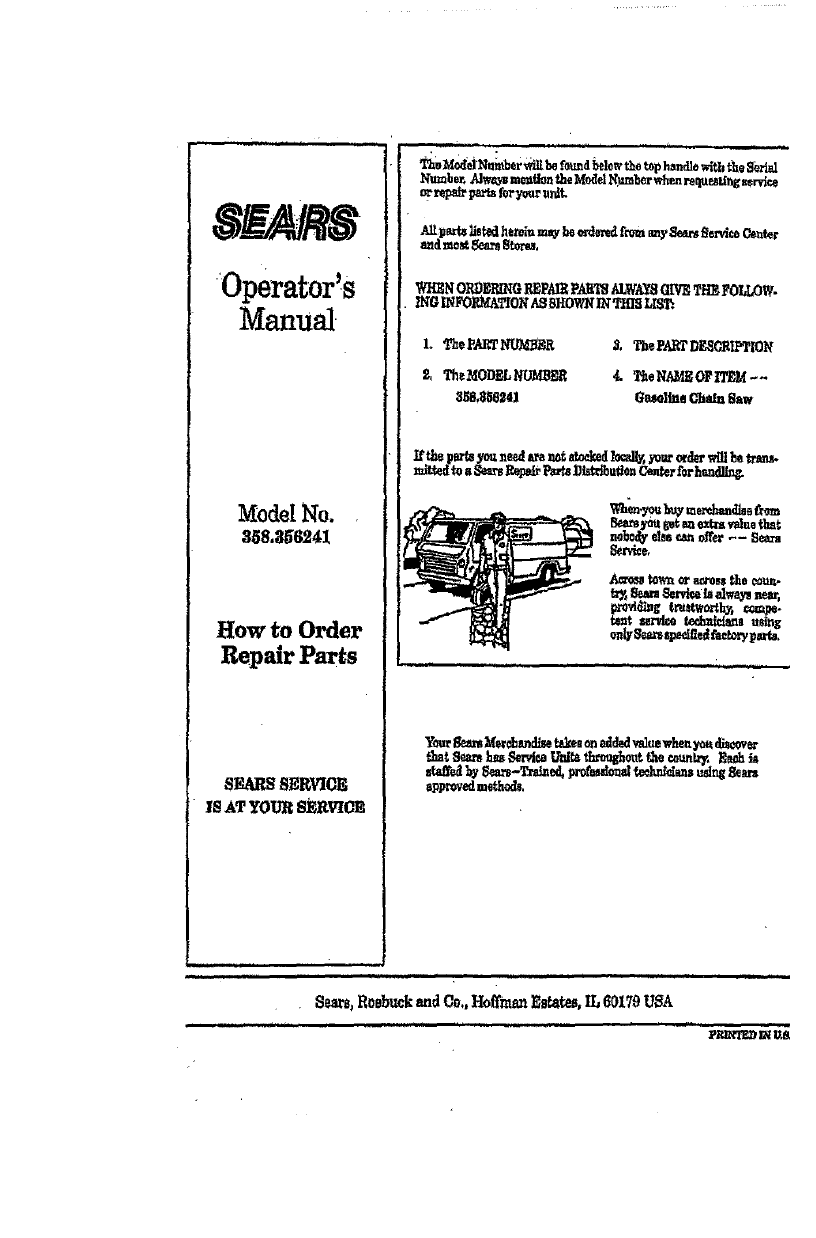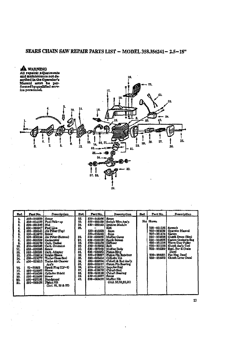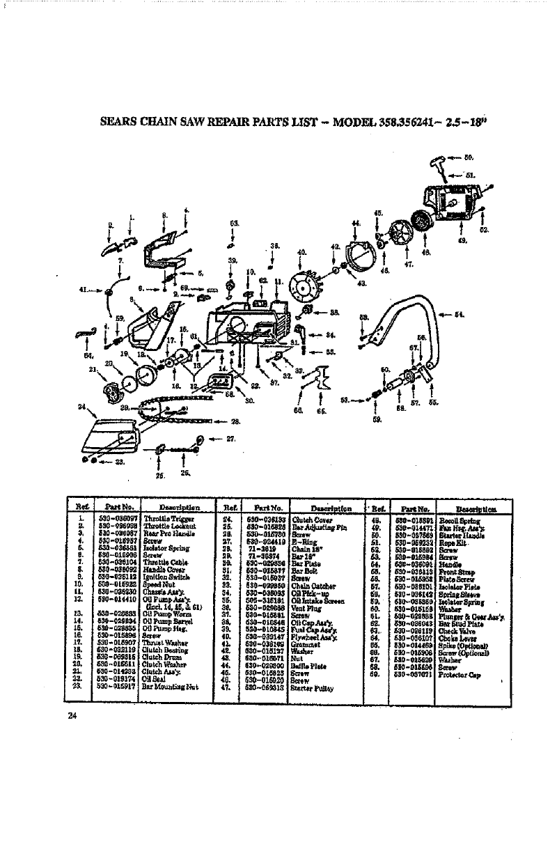 SEARS CHAIN SAW REPAIR PARTS LIST - MODEL 358.356241- 2.5-18 _;