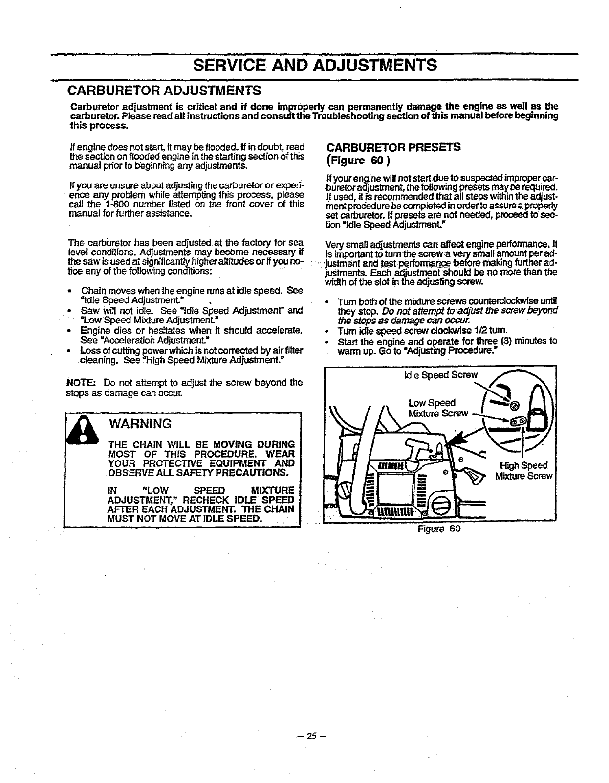 Carburetor Adjustments ........................ 25