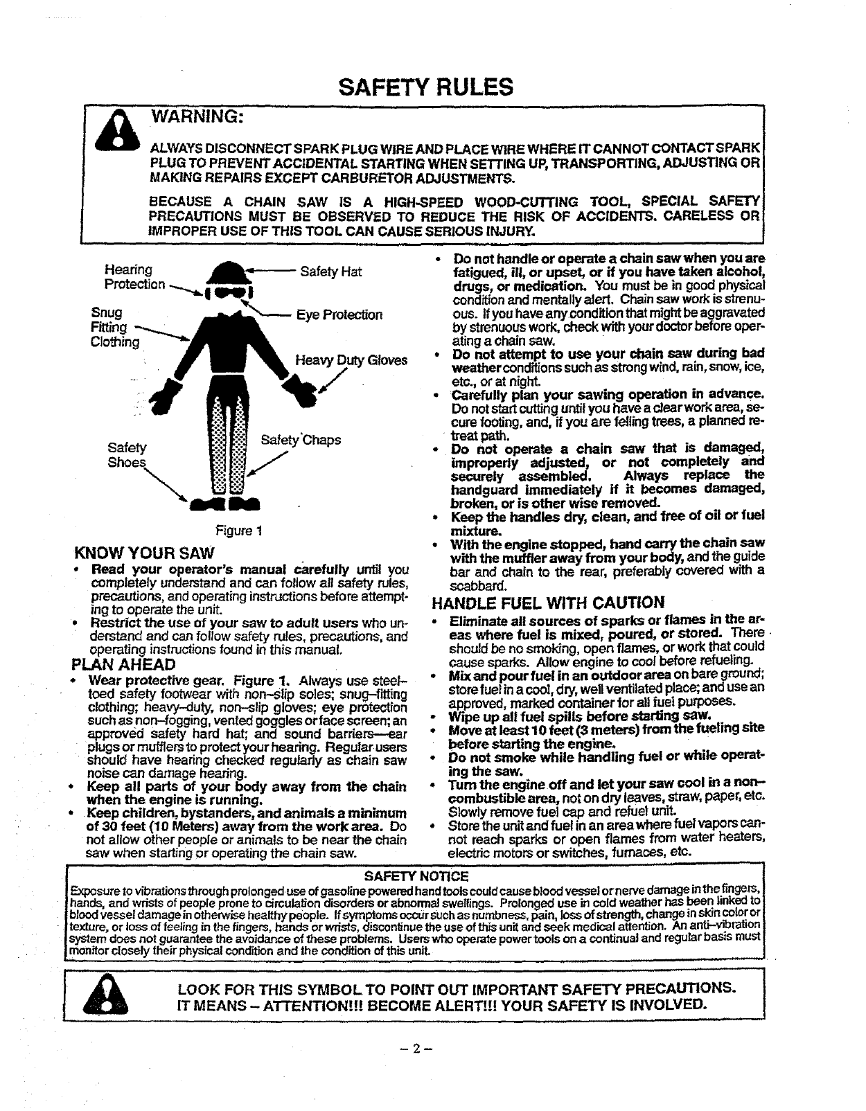 BECAUSE A CHAIN SAW 1S A HIGH-SPEED WOOD-CUTTING TOOL, SPECIAL SAFETY