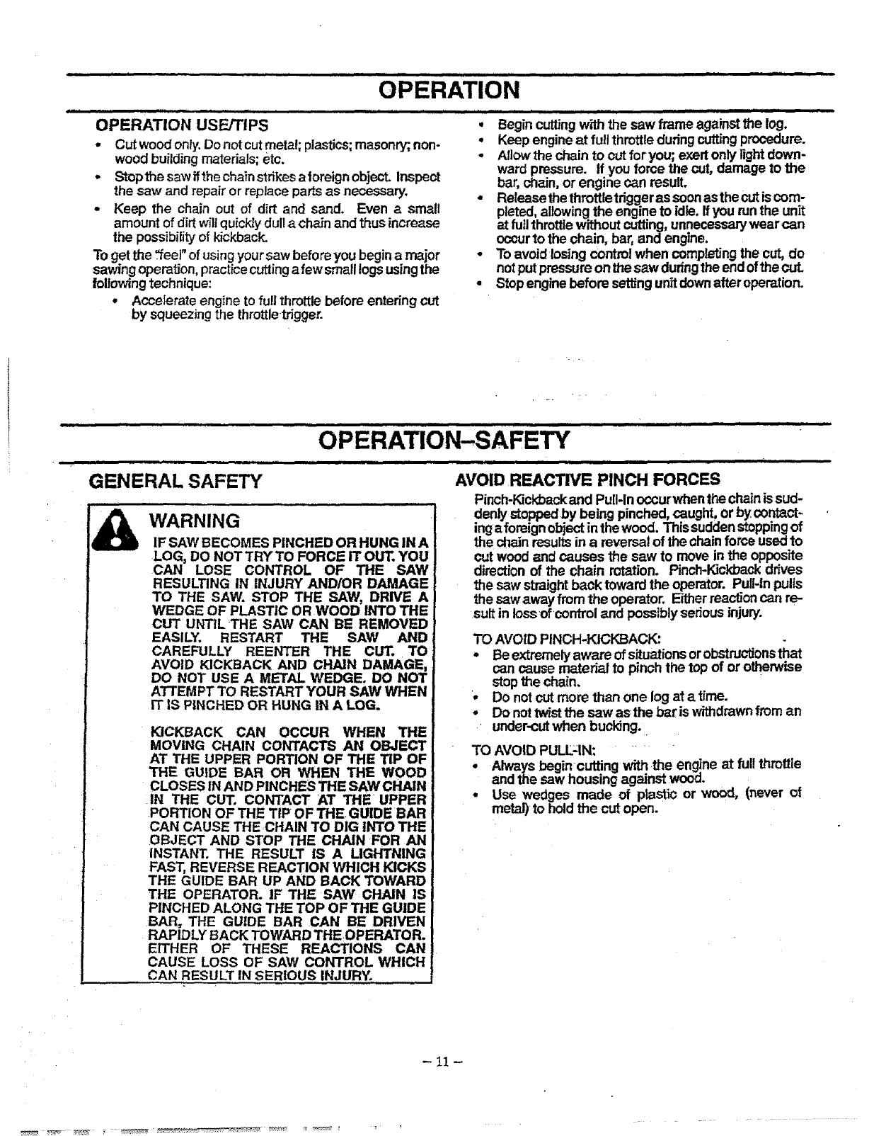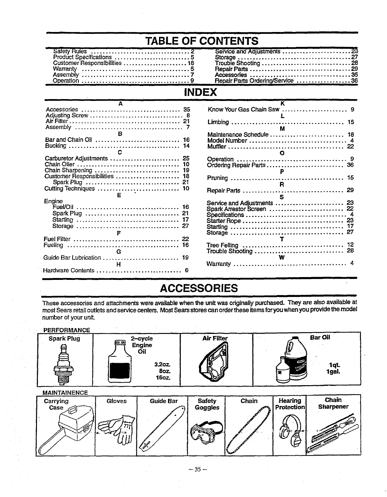 Know Your Gas Chain Saw ...................... 9