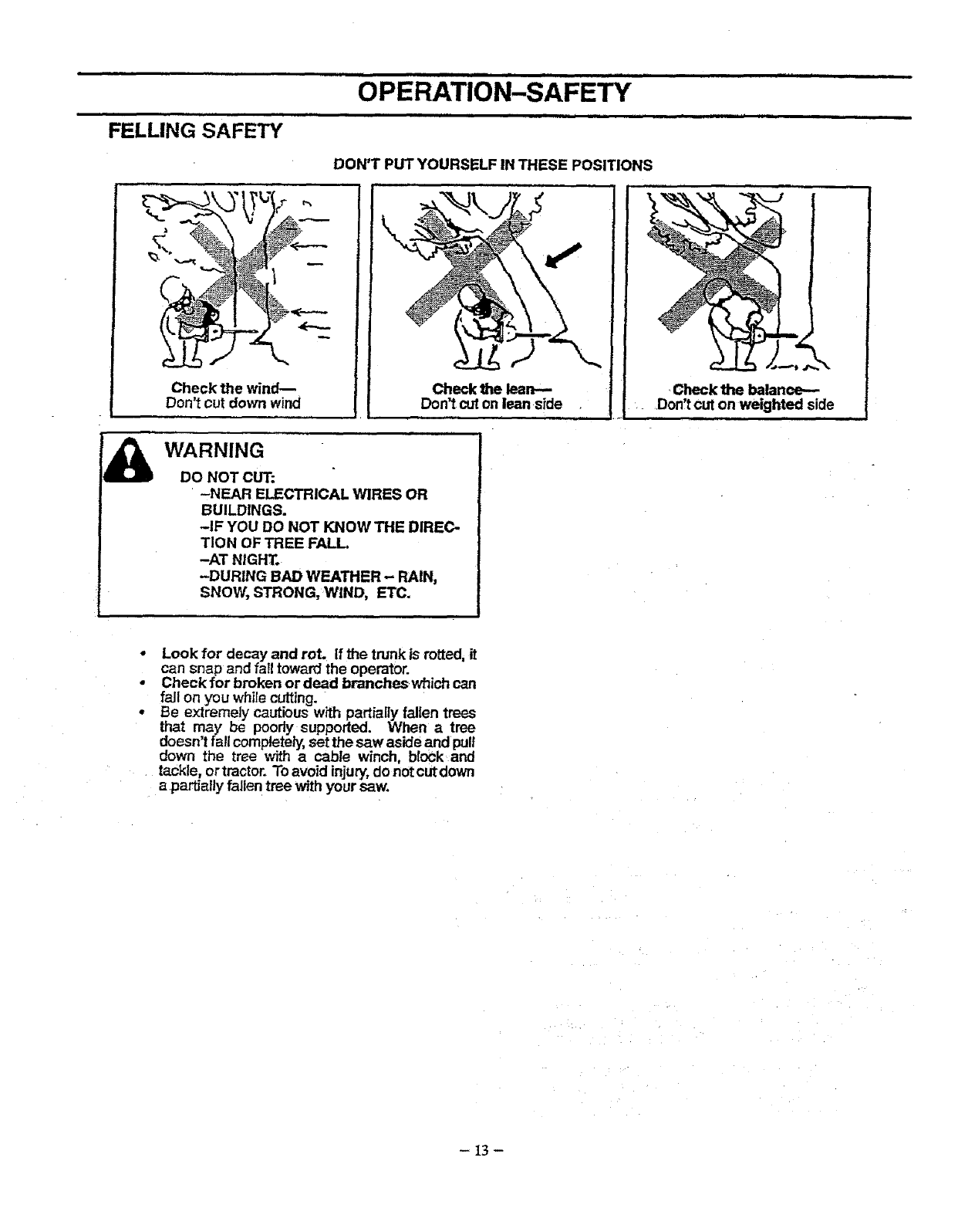 • Do not attempt to use your chain saw during bad