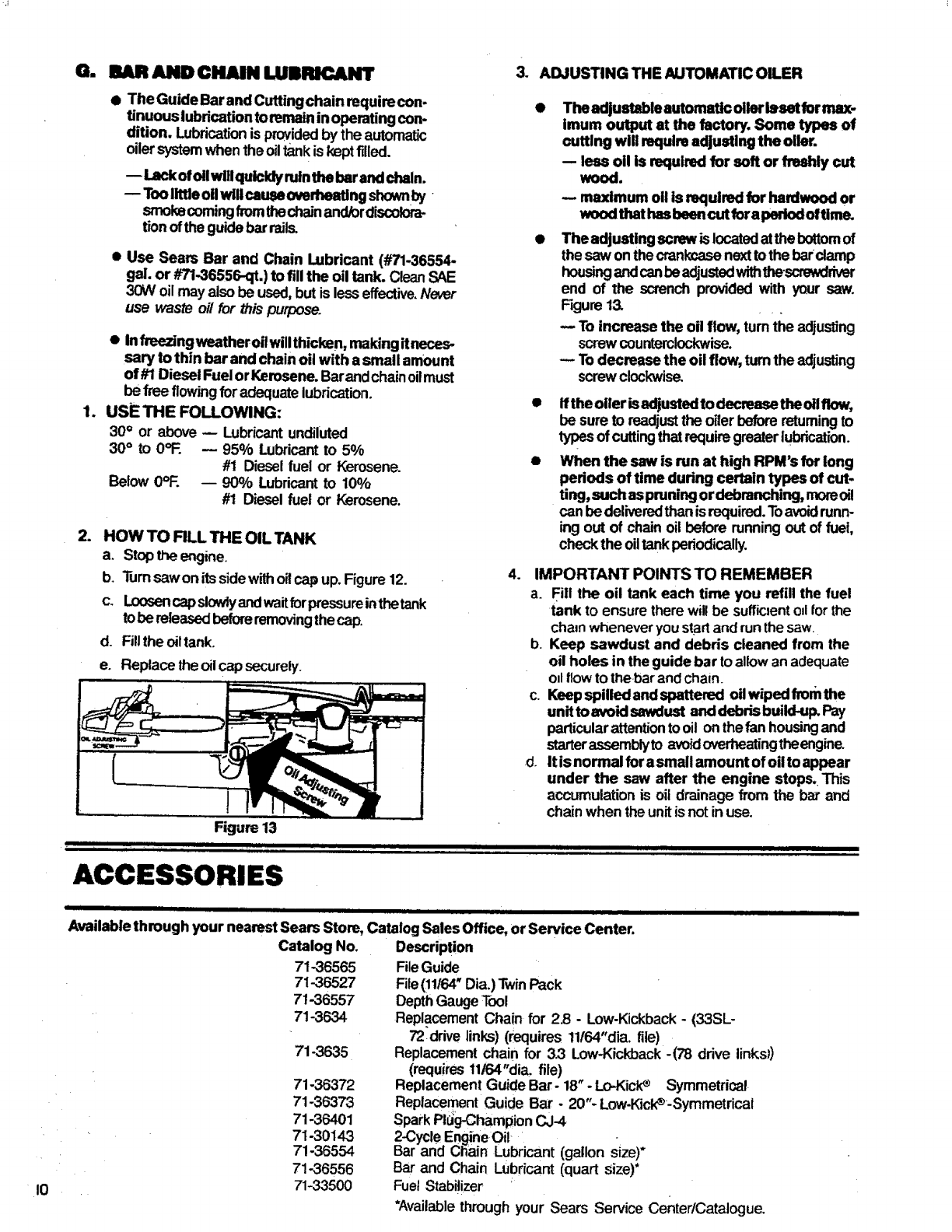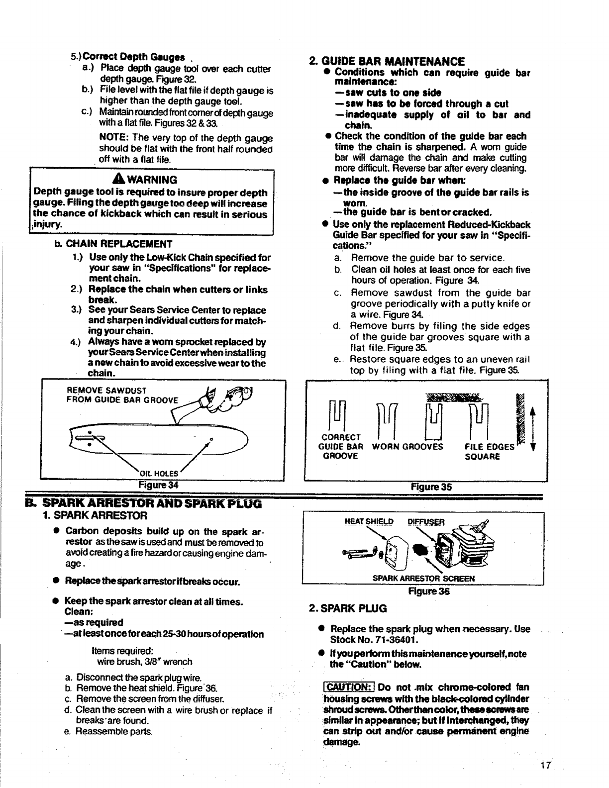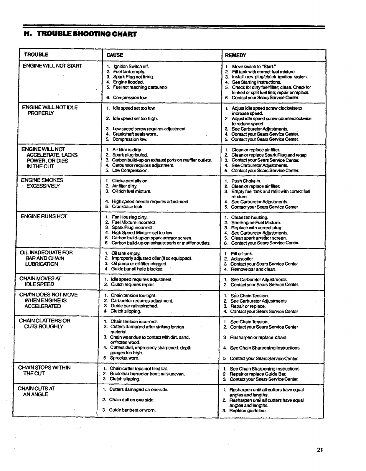 _nance instructions in the o.pe.ra,tor's, manual, Sears wifl repair defects in material or workmanship in this gasoline chain saw at no
