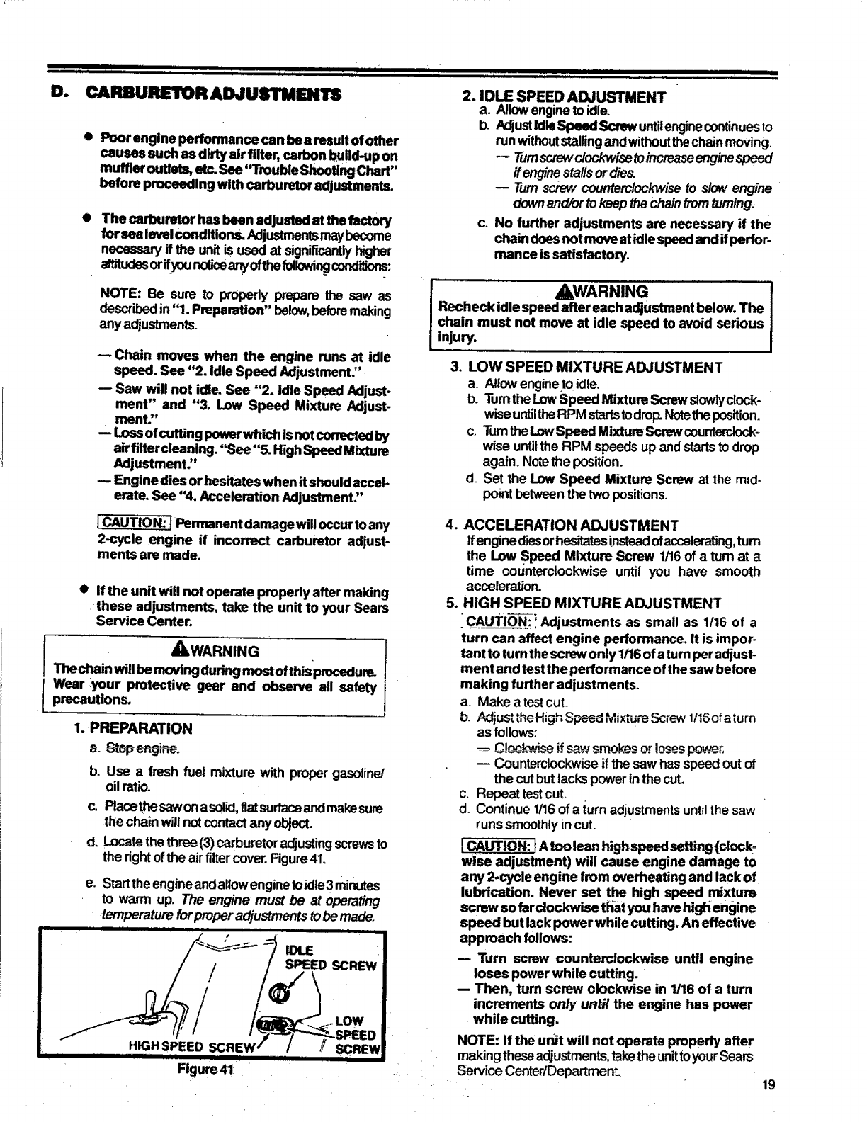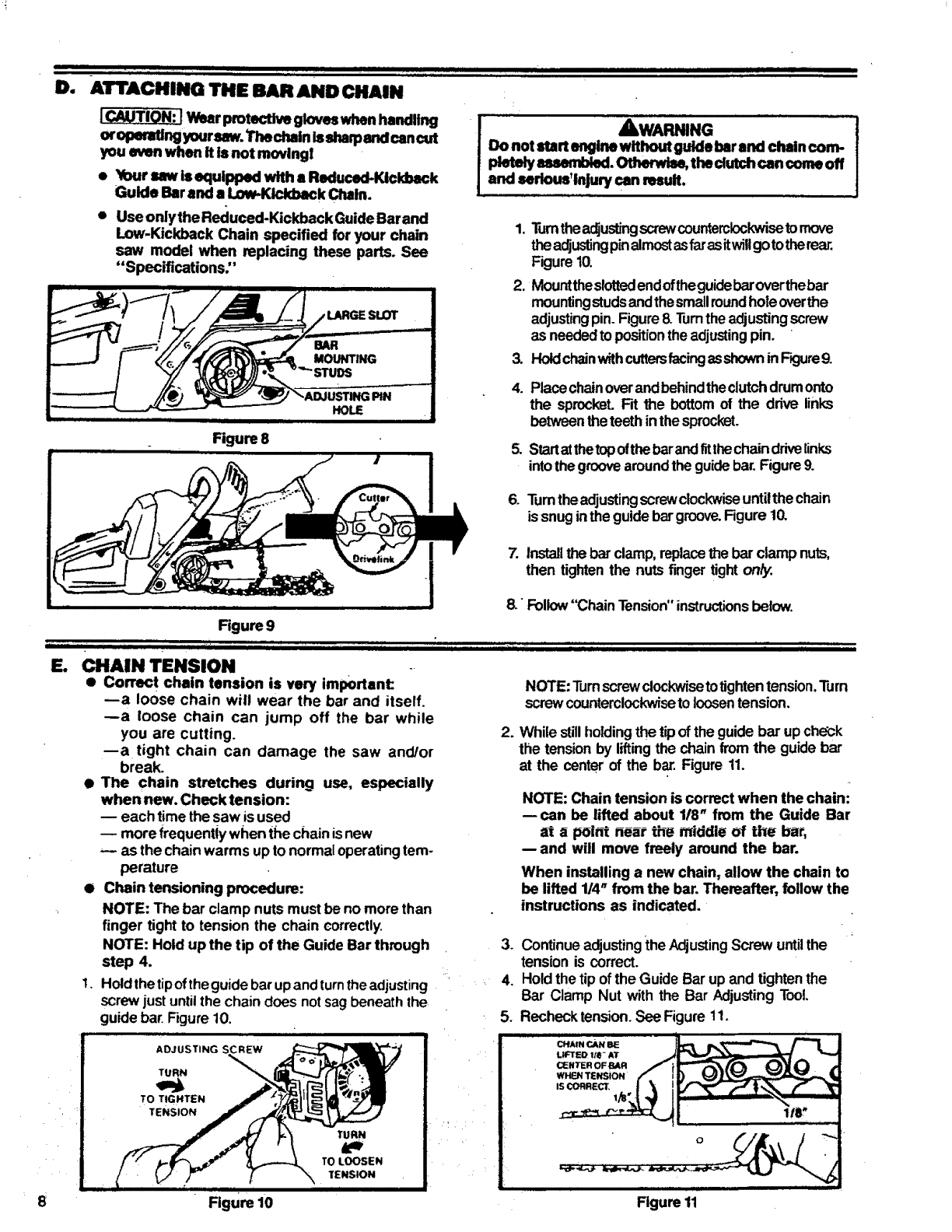 I. Adjust or have the carburetor adjusted if the chain moves when the engine idies.