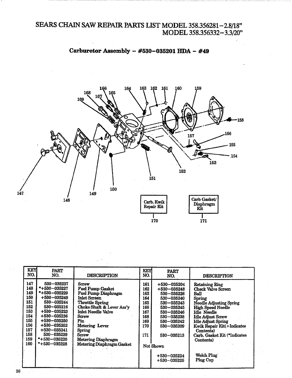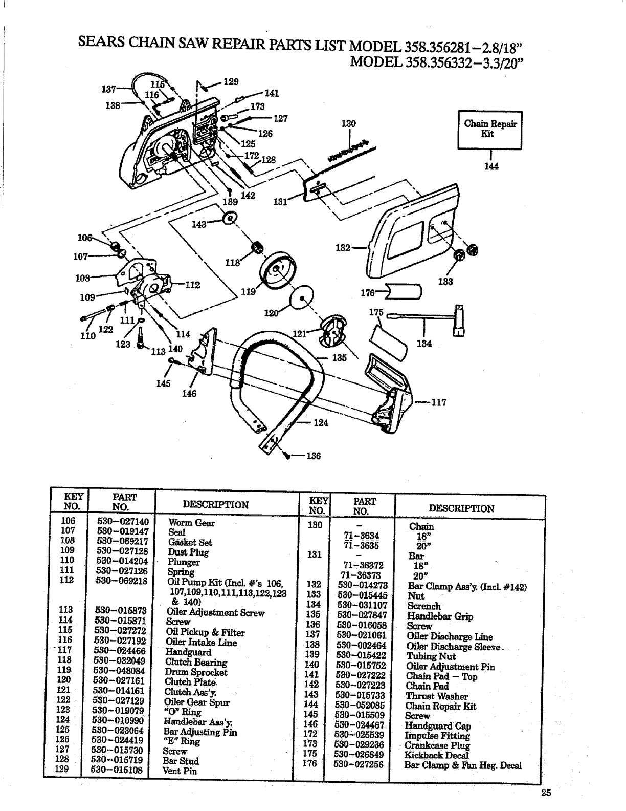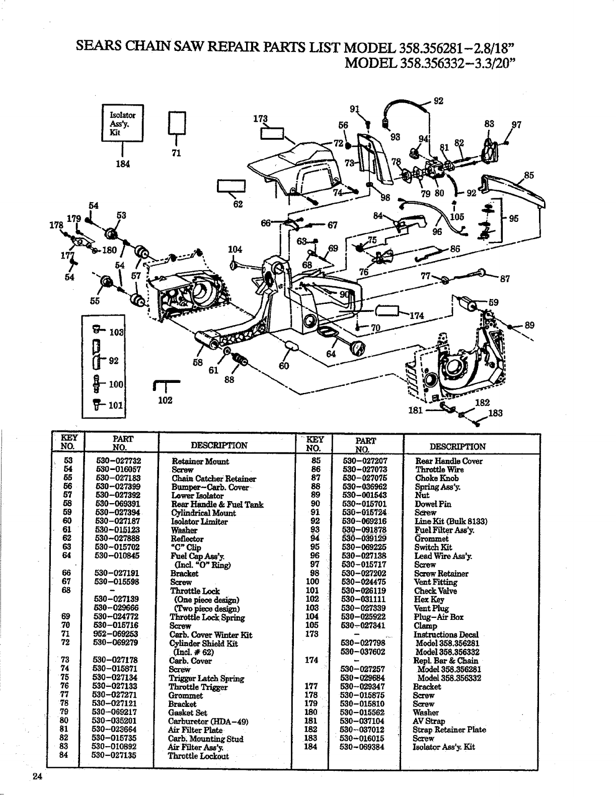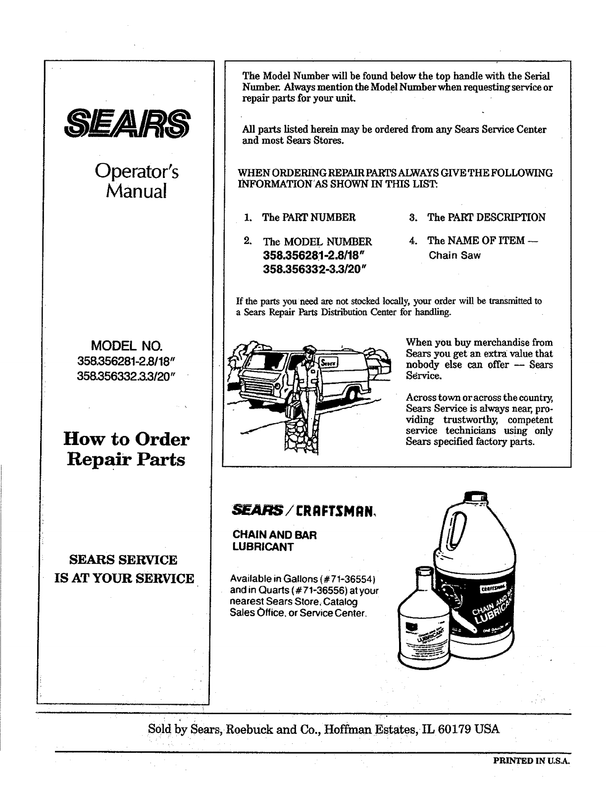 User Manual: Craftsman 358356281 358356281 CRAFTSMAN GASOLINE CHAIN SAW - Manuals and Guides View the owners manual for your CRAFTSMAN GASOLINE CHAIN SAW #358356281. Home:Lawn & Garden Parts:Craftsman Parts:Craftsman GASOLINE CHAIN SAW Manual