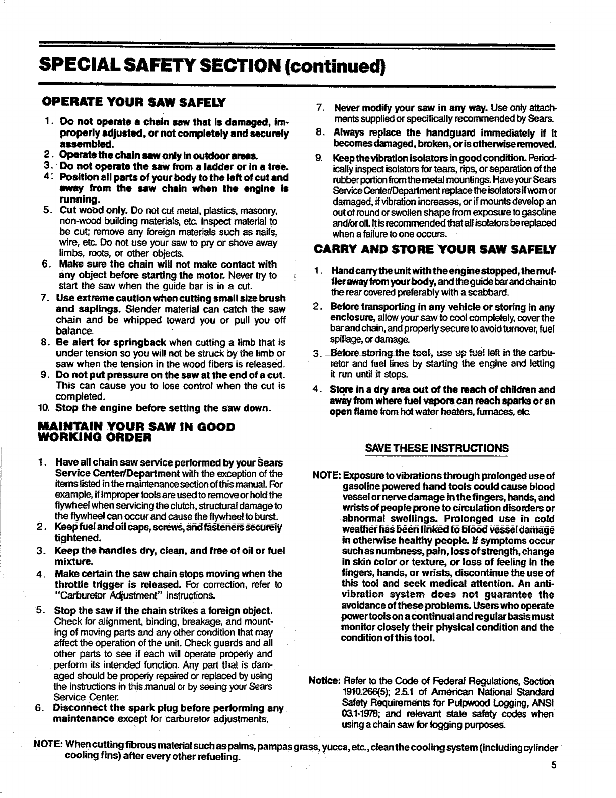 6. Take the saw to your Sears Service CentedDepartment for ful clutch inspectionafter each 100 hours