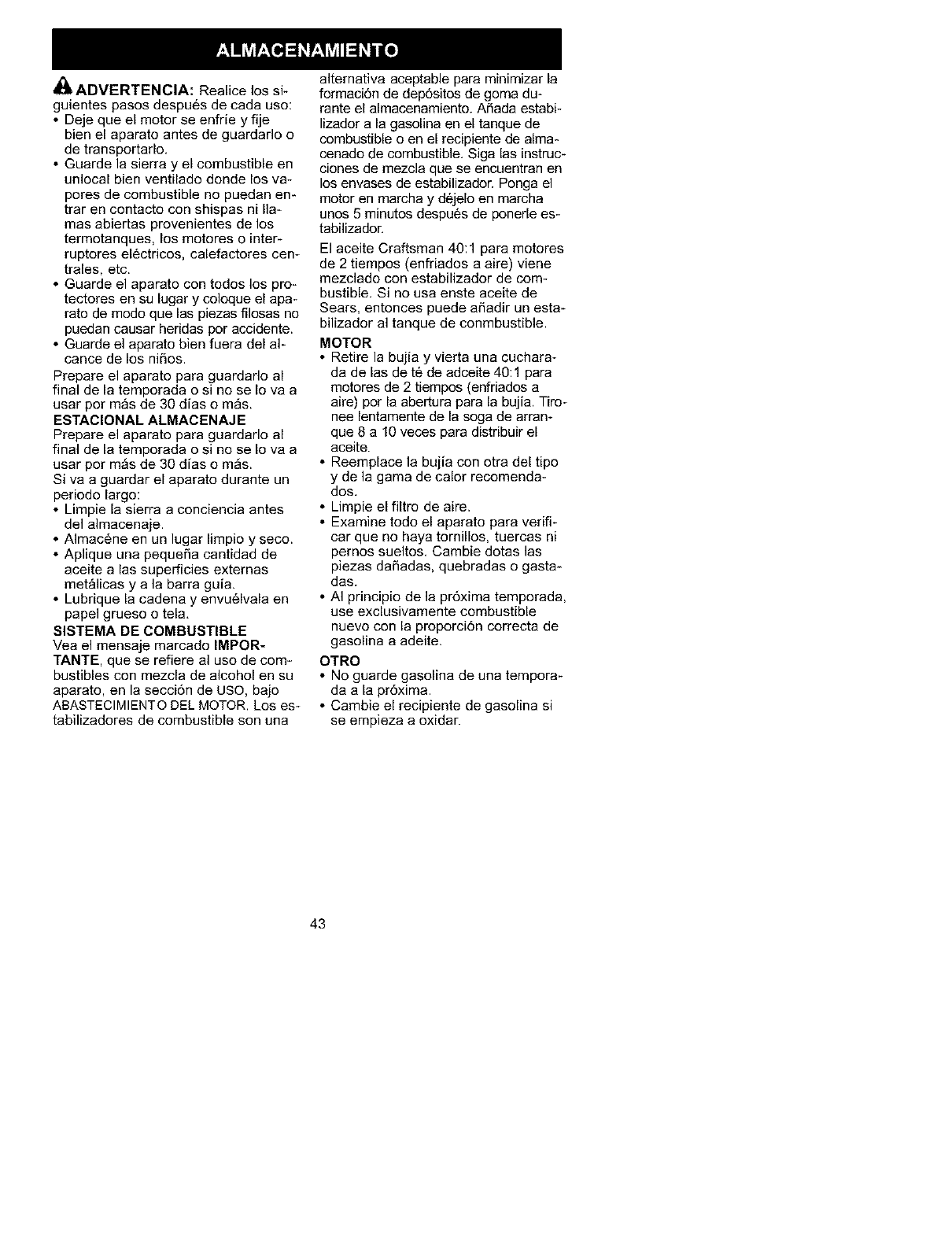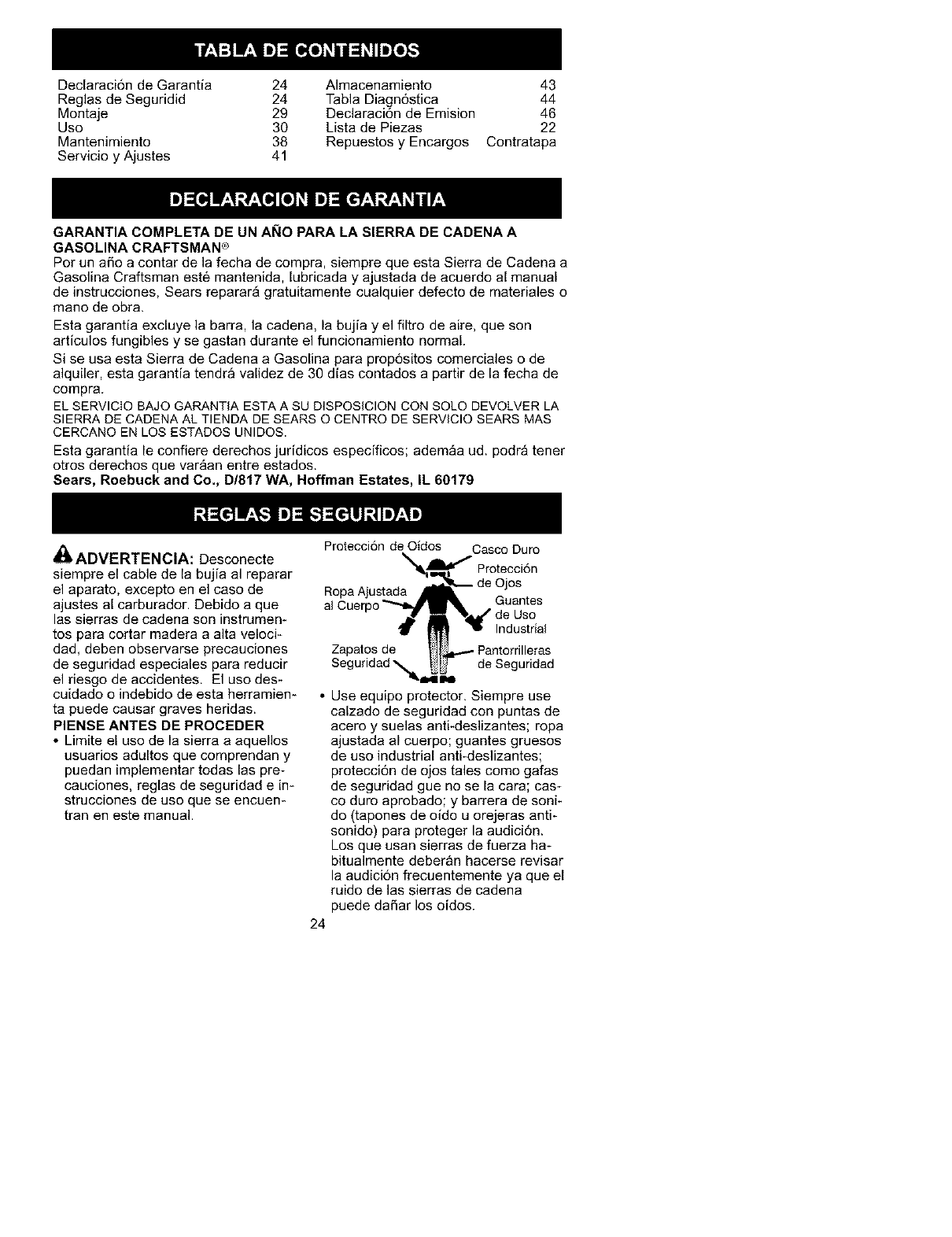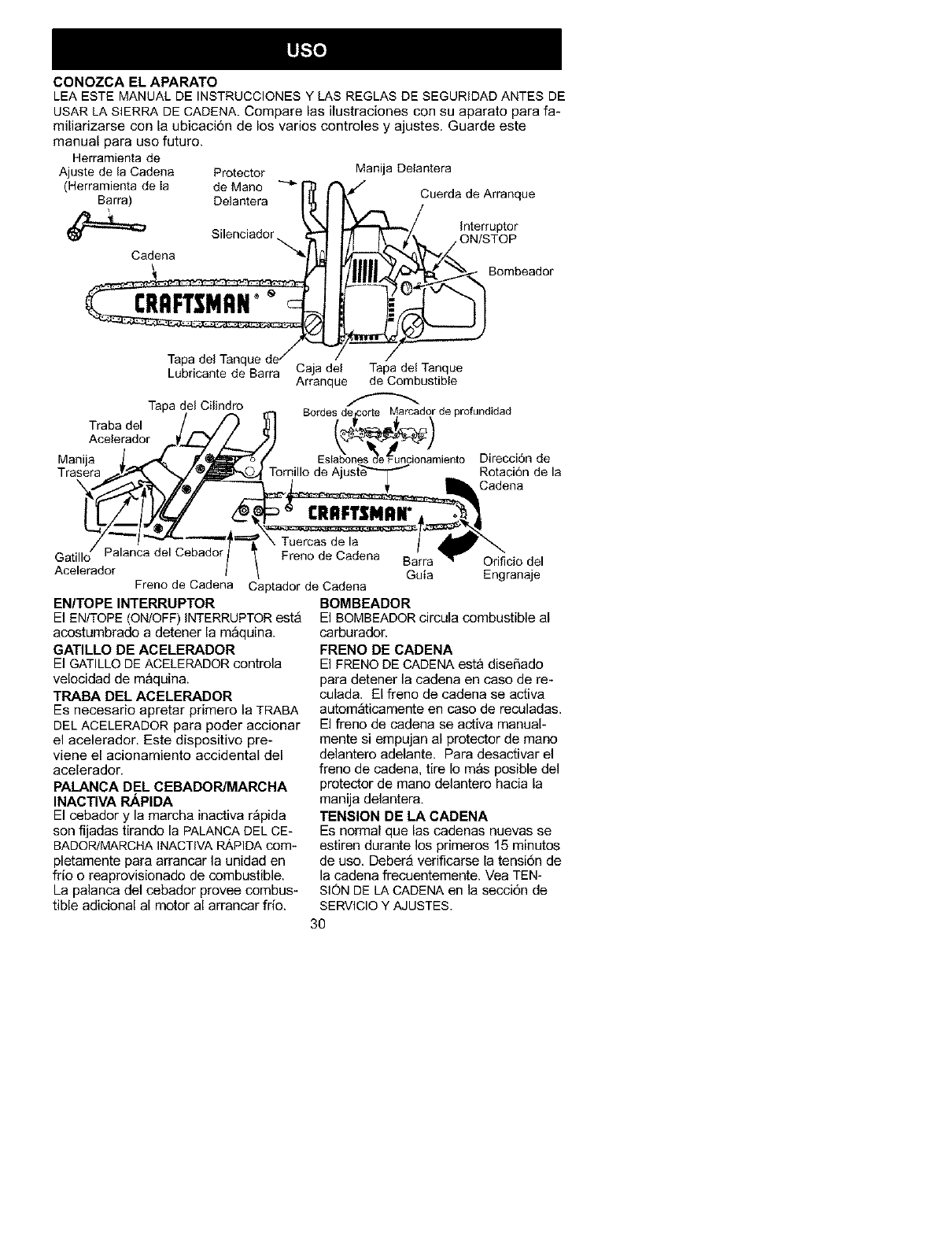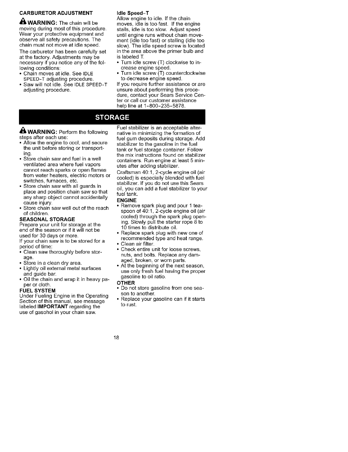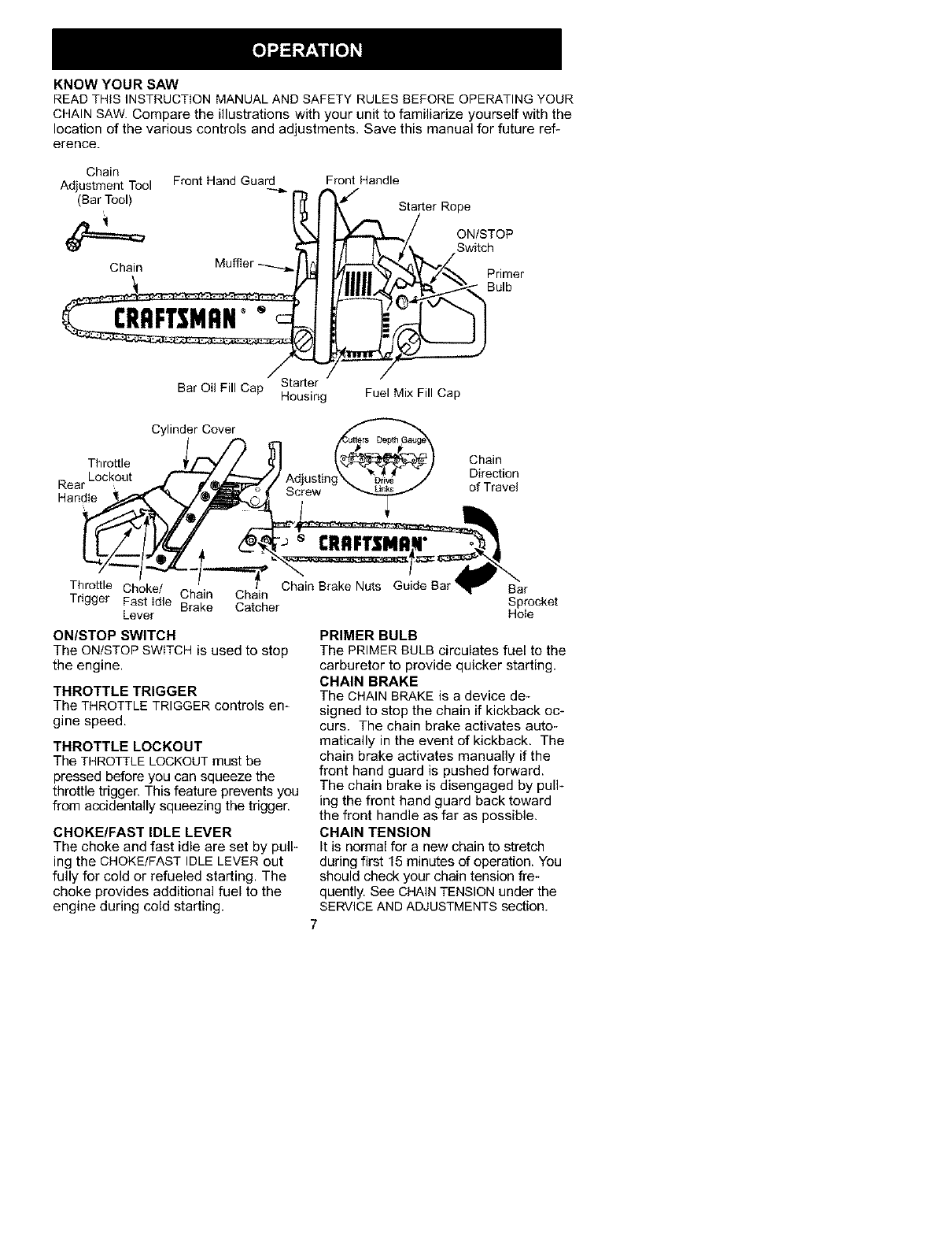 FULL ONE YEAR WARRANTY ON CRAFTSMAN ® GAS CHAIN SAW