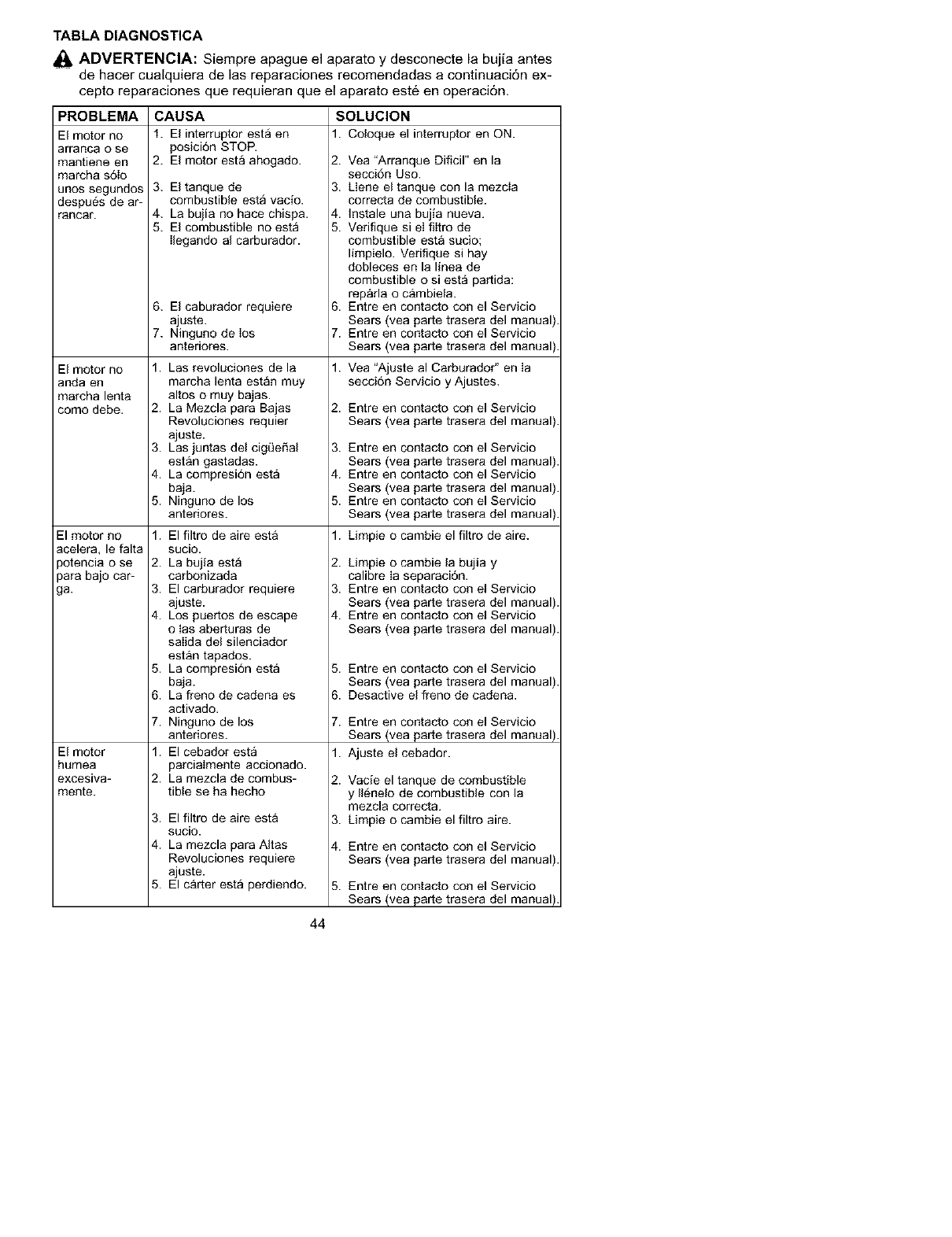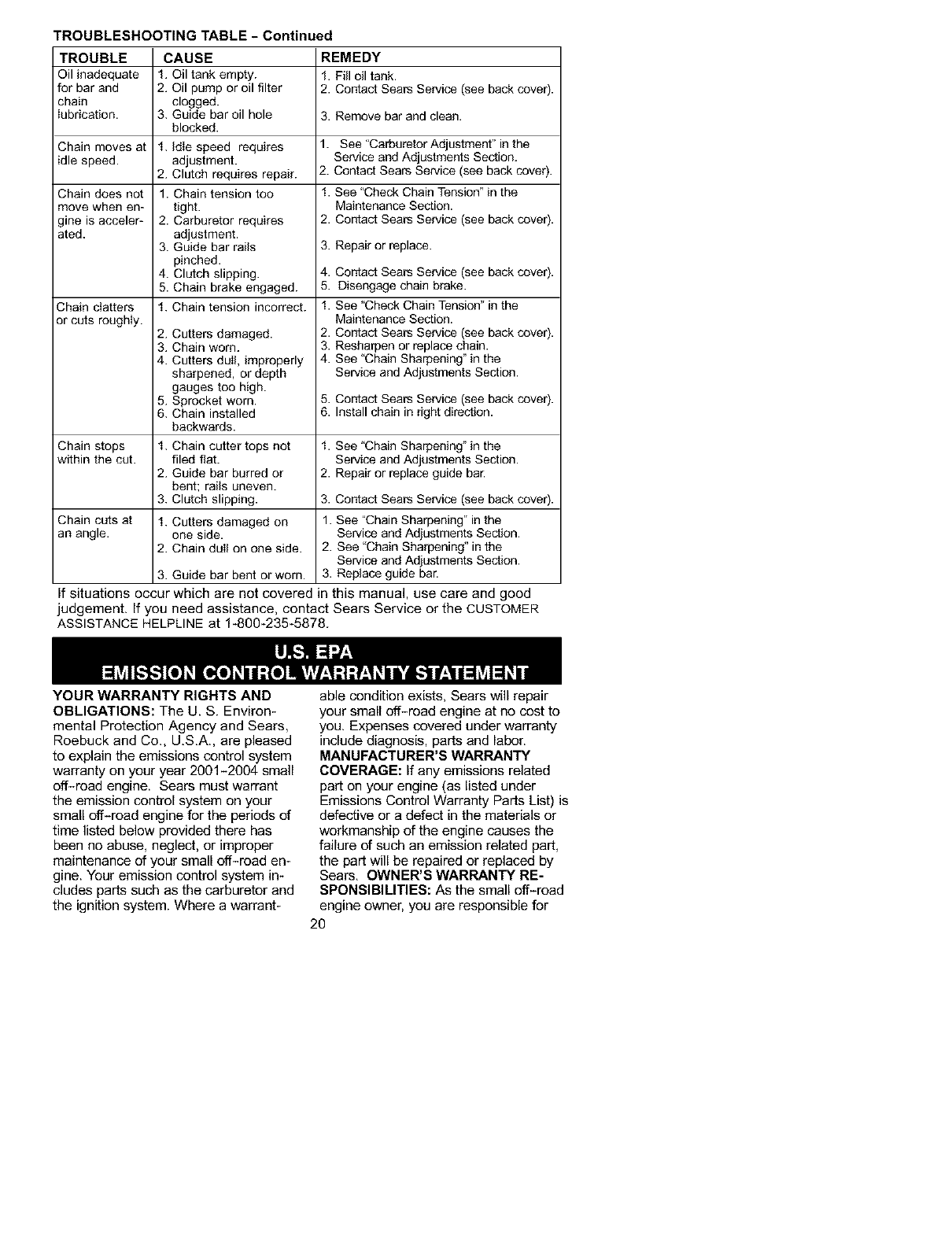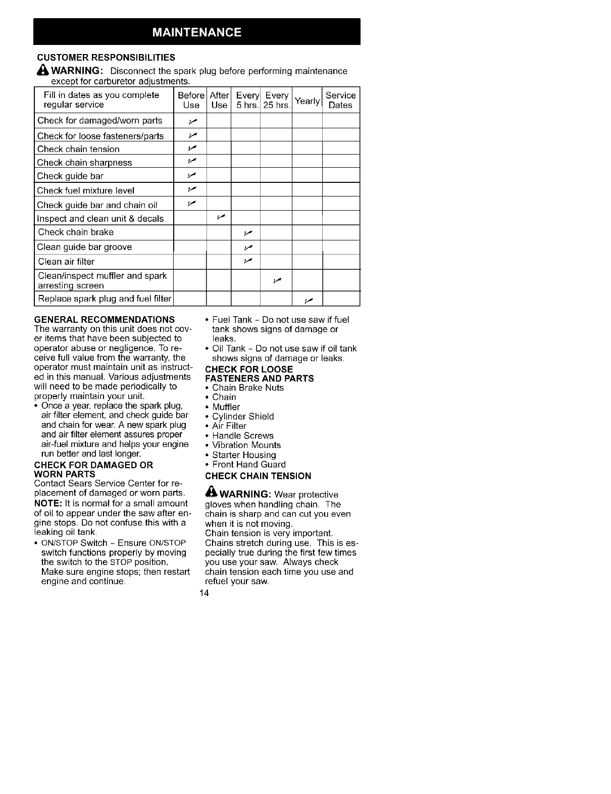maintained, lubricated and tuned up according to the instruction manual, Sears