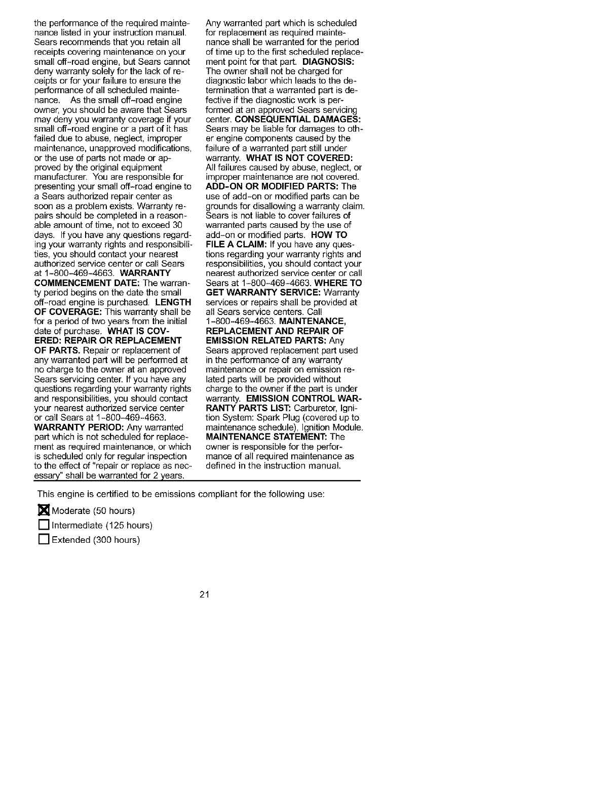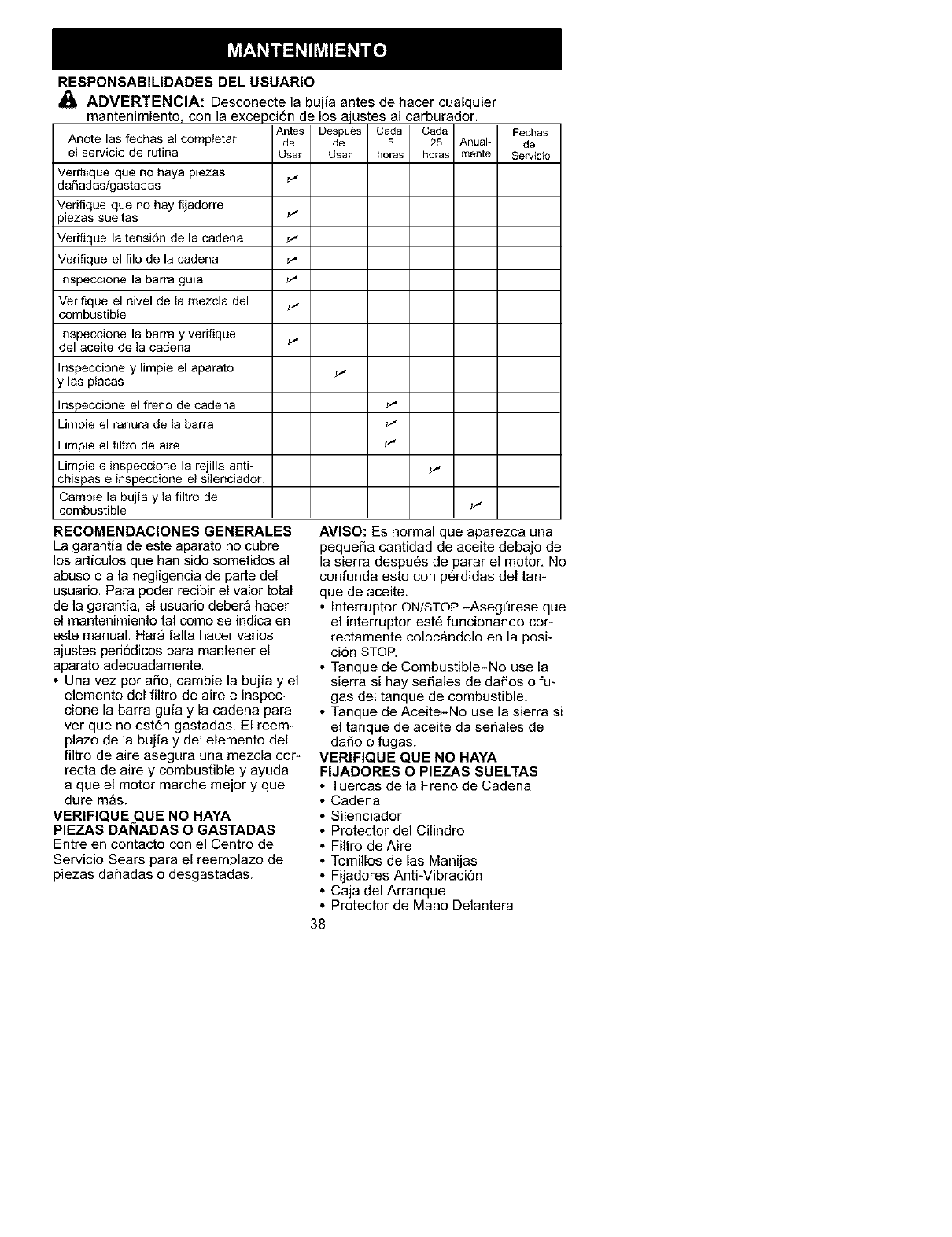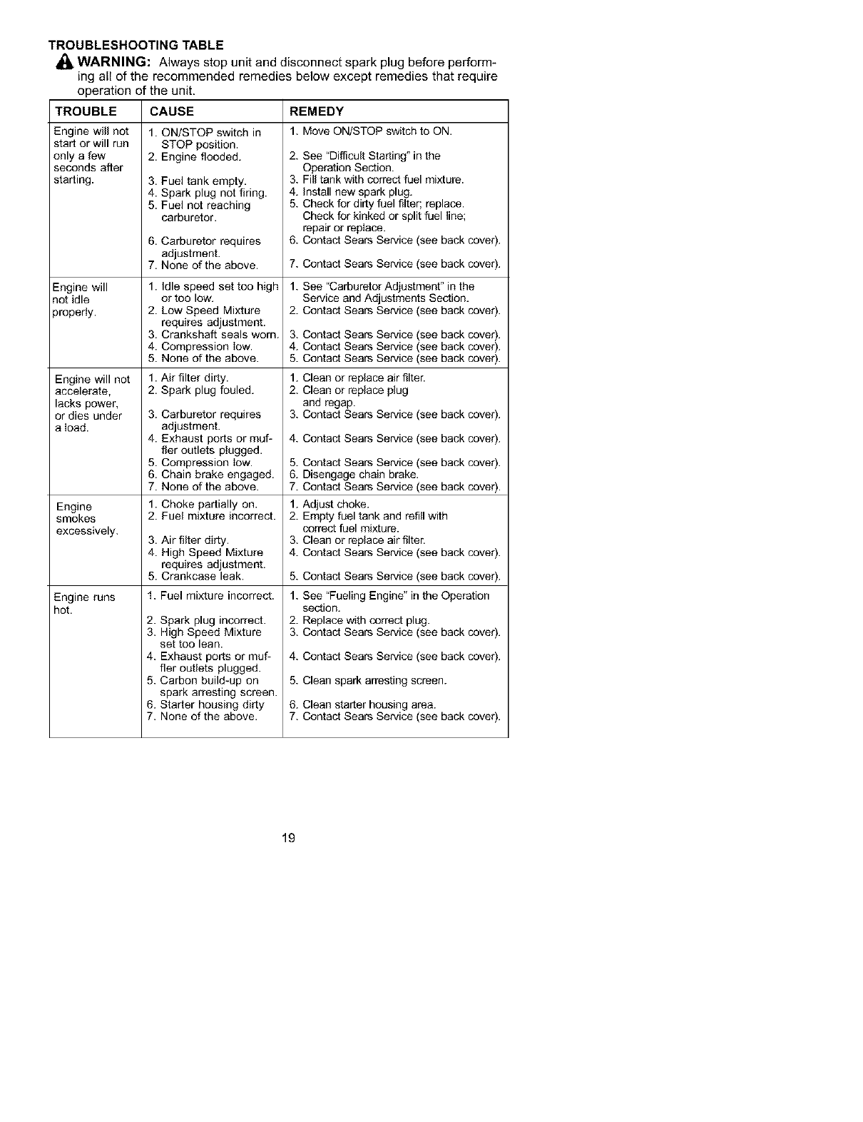 maintained, lubricated and tuned up according to the instruction manual, Sears