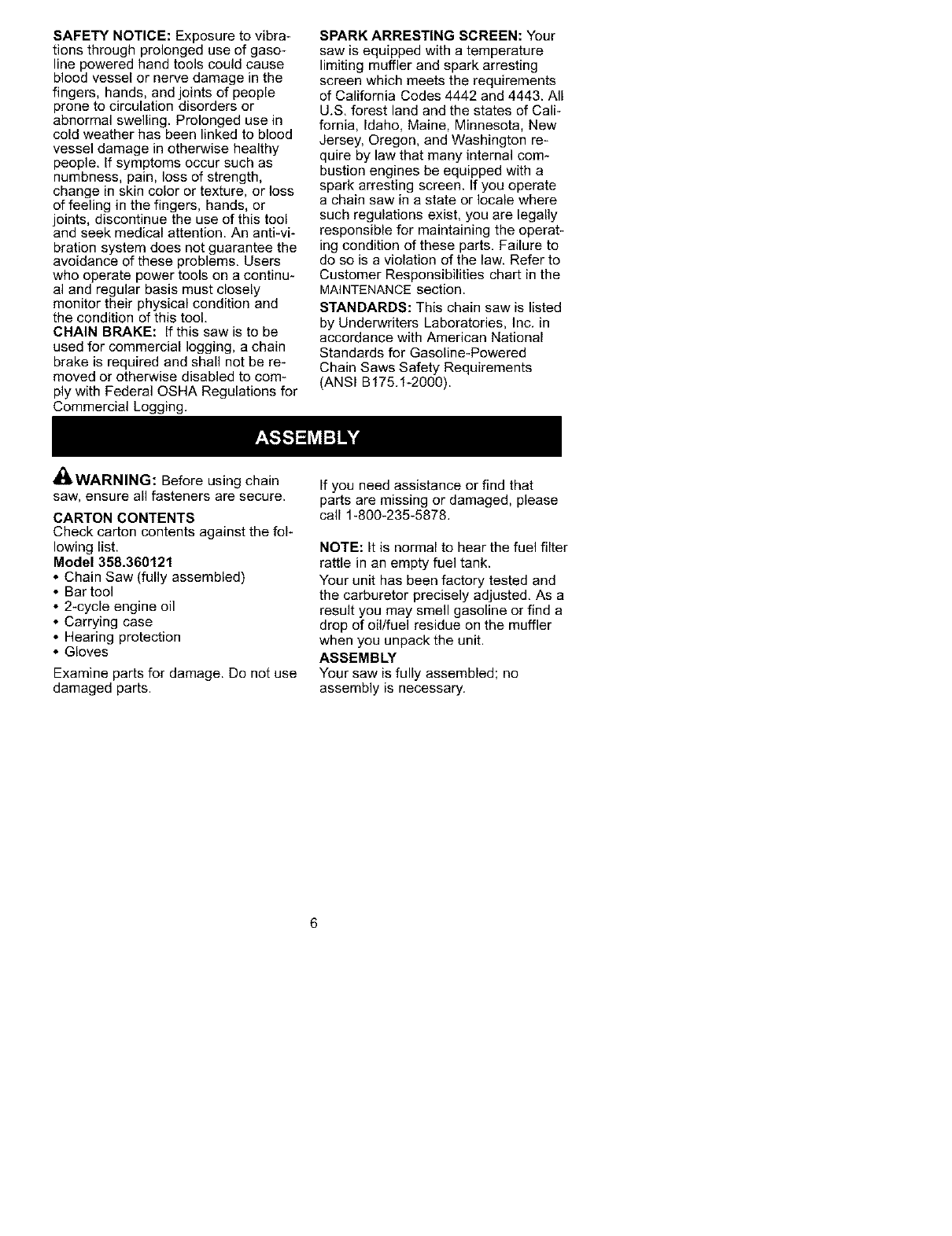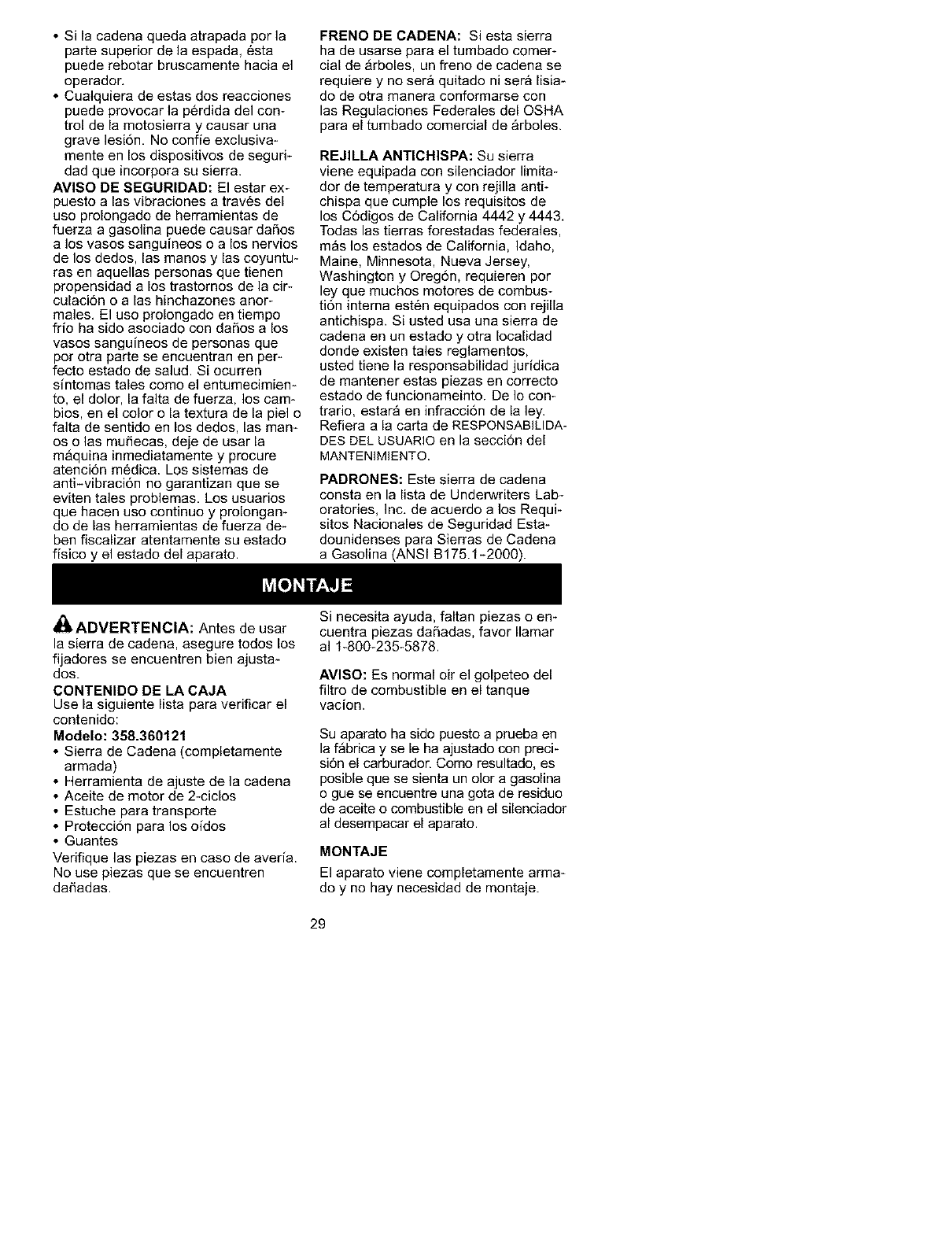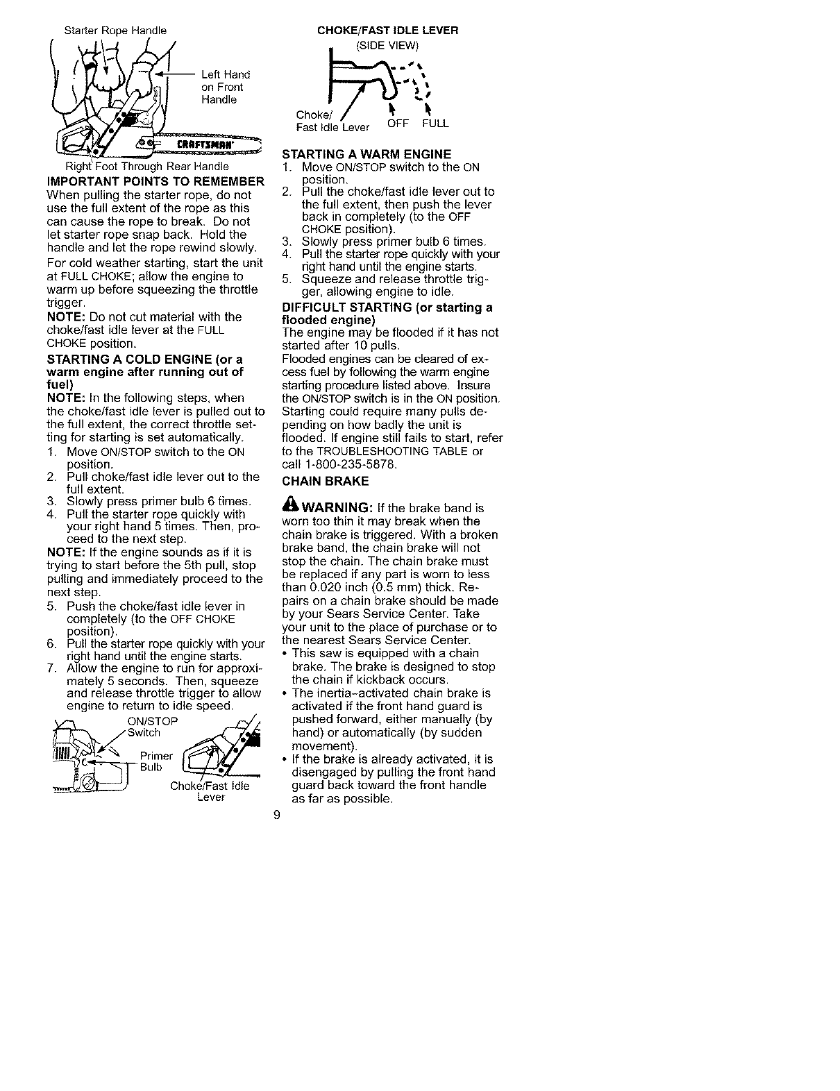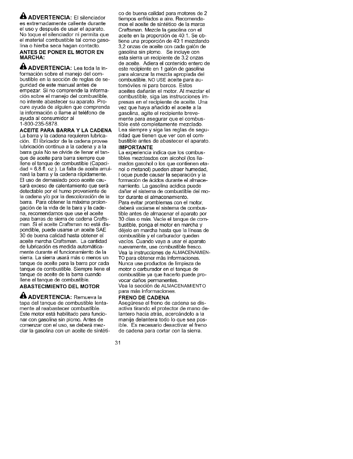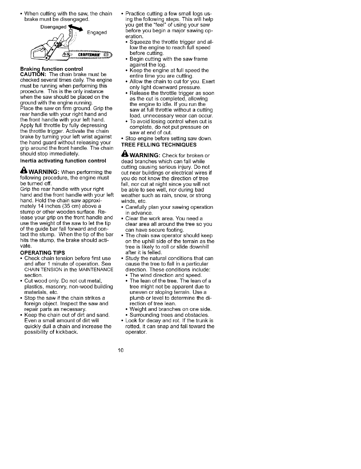 Craftsman 358360121 User Manual CHAIN SAW Manuals And Guides L0212052