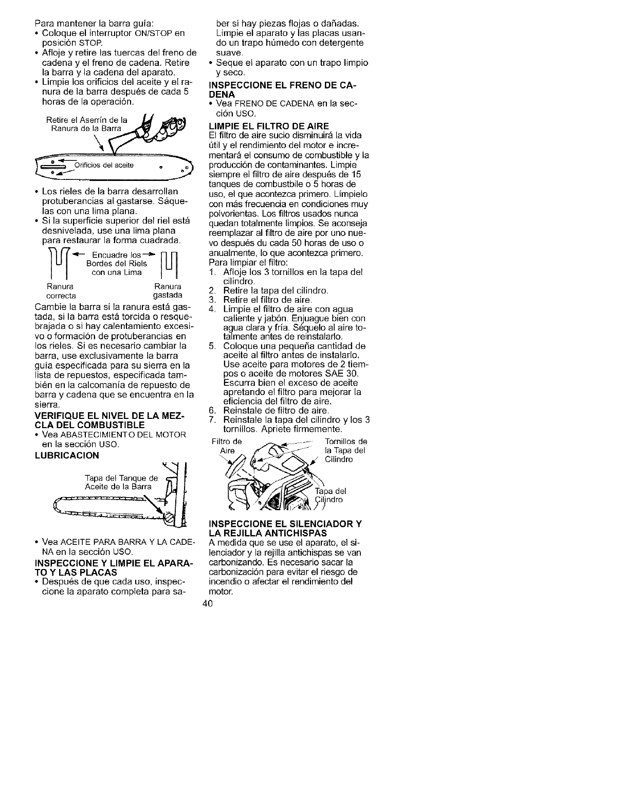 This warranty excludes the bar, chain, spark plug and air filter, which are