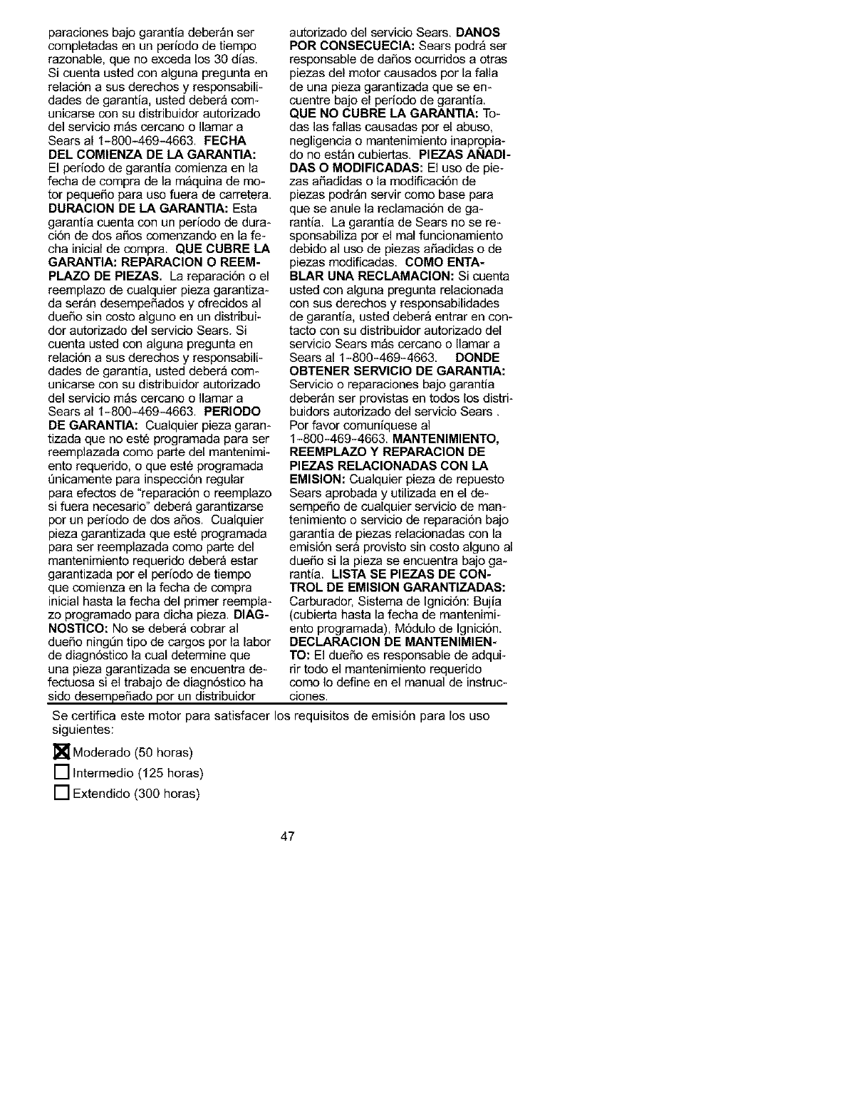 Se certifica este motor para satisfacer los requisites de emisi6n para los usa