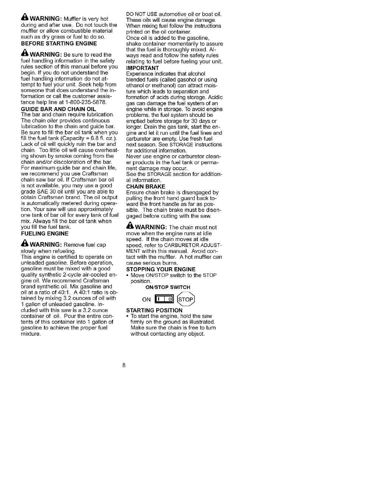 CRAFTSMAN Chainsaw, Gas Manual L0212052 CRAFTSMAN Chainsaw, Gas Owner's Manual, CRAFTSMAN Chainsaw, Gas installation guides