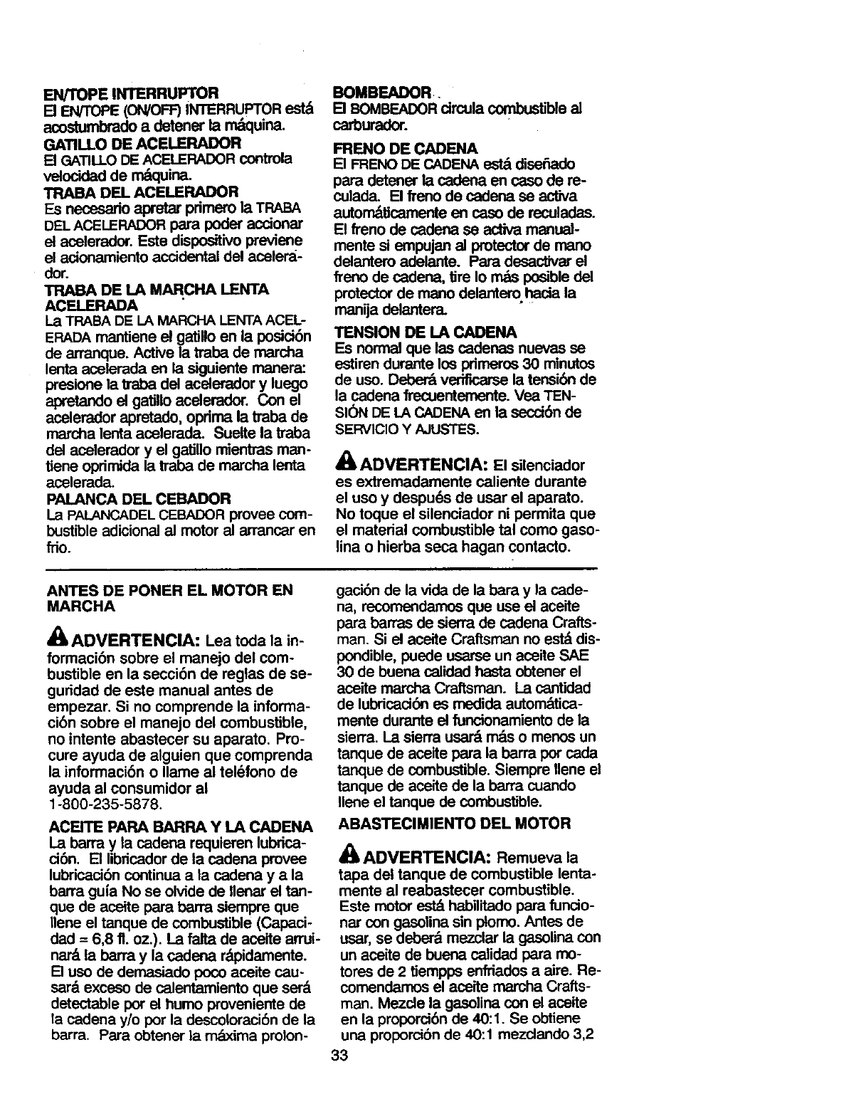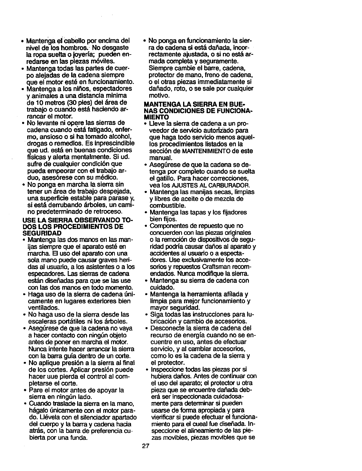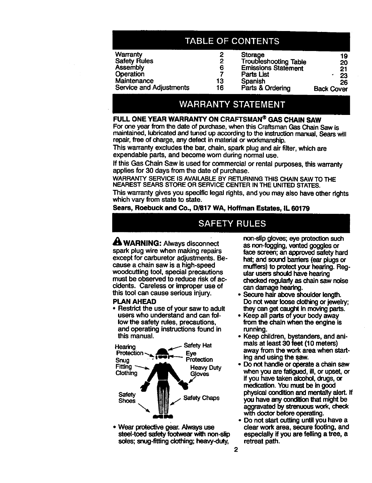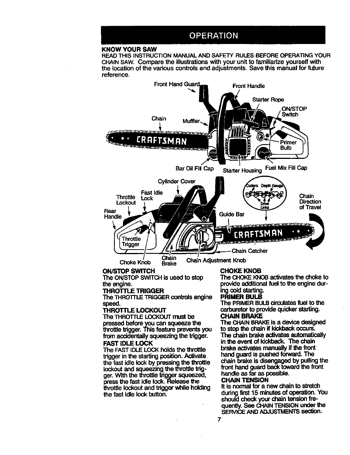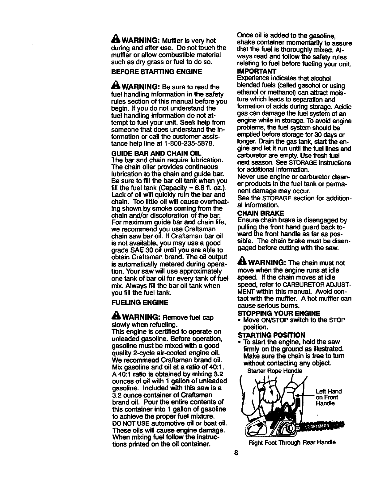 FULL ONE YEAR WARRANTY ON CRAFTSMAN ®GAS CHAIN SAW