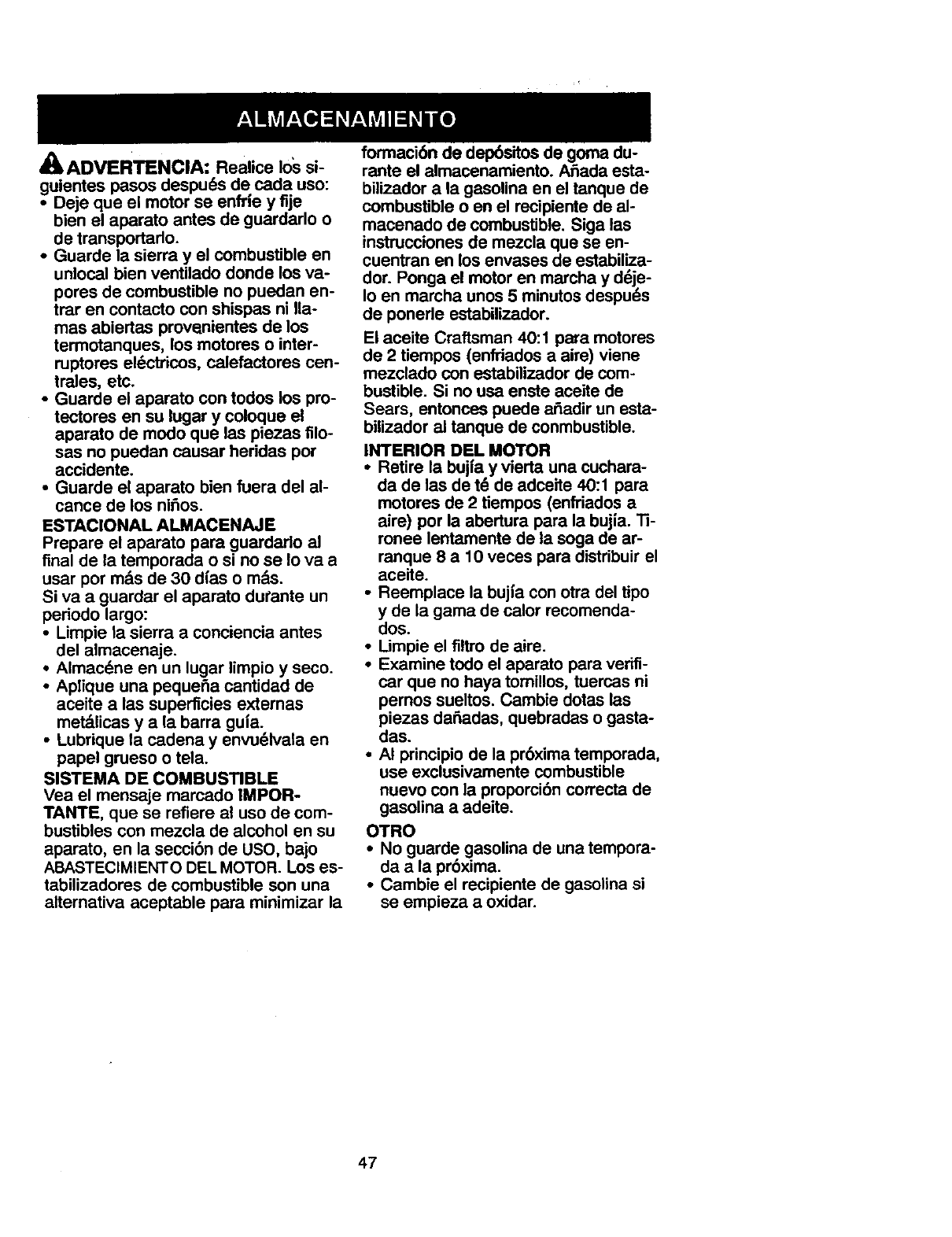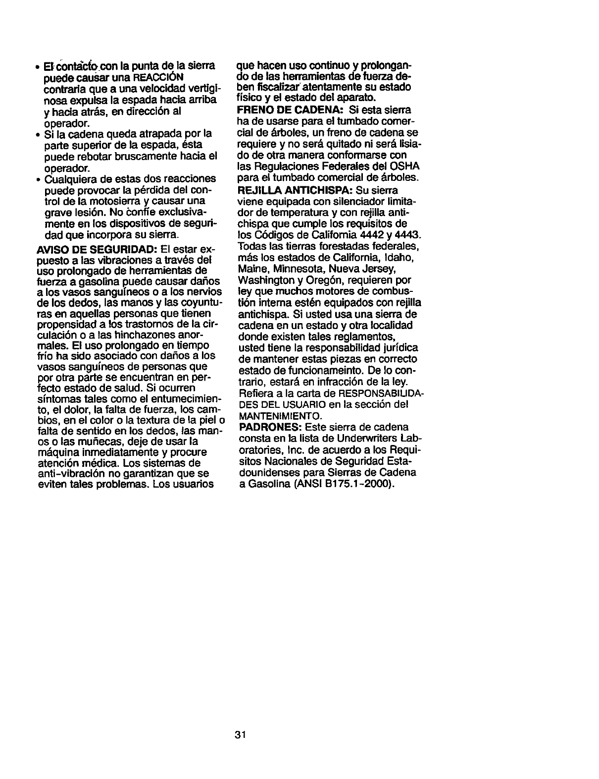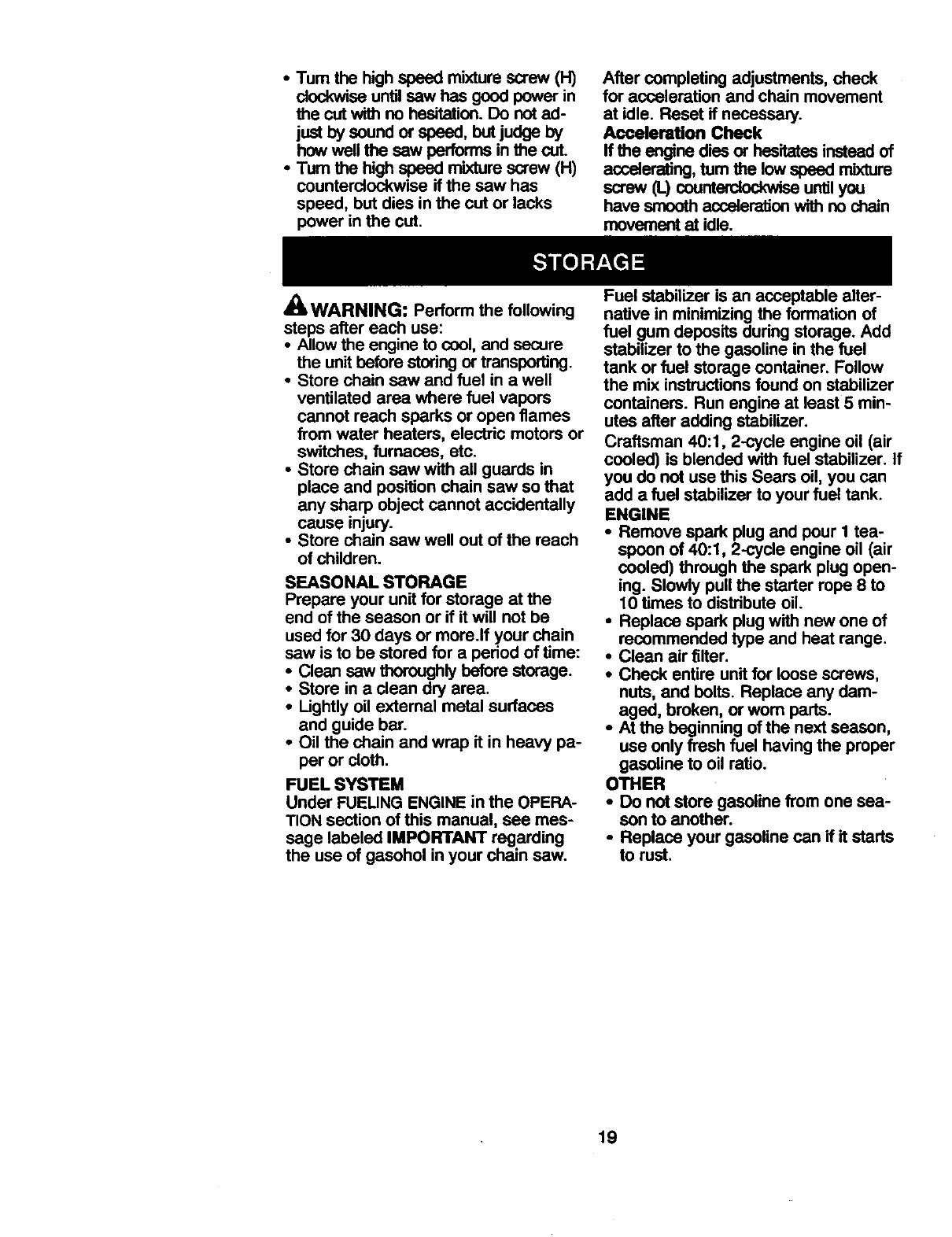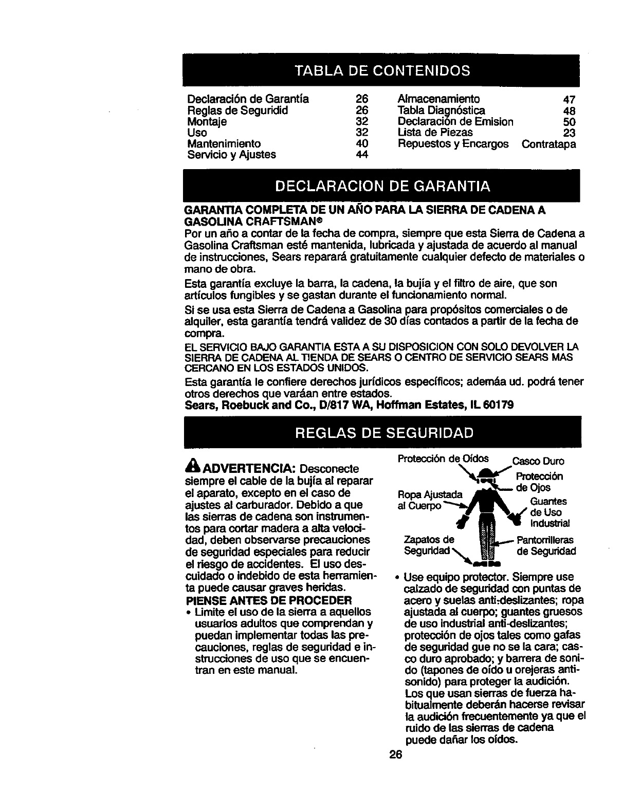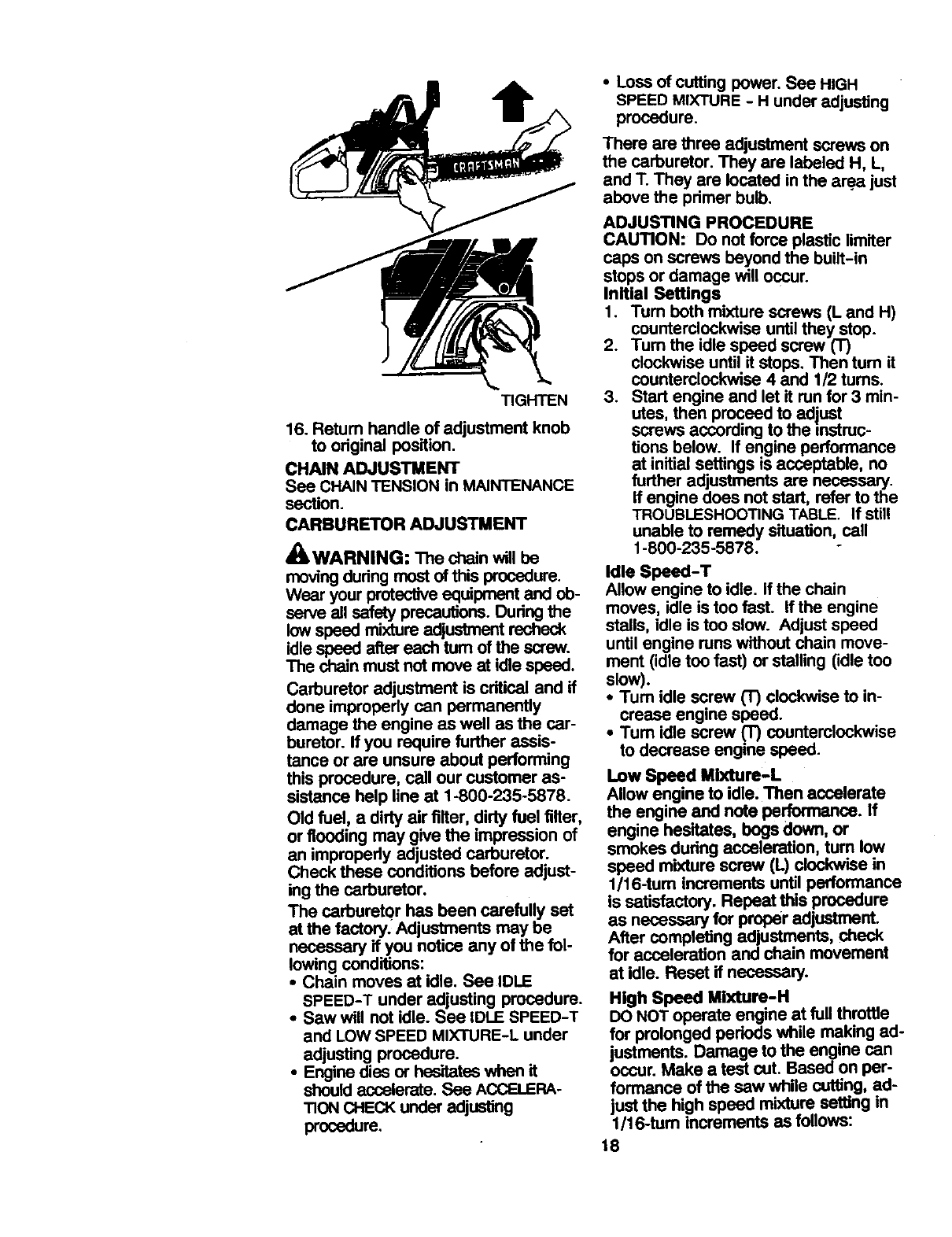FULL ONE YEAR WARRANTY ON CRAFTSMAN ®GAS CHAIN SAW
