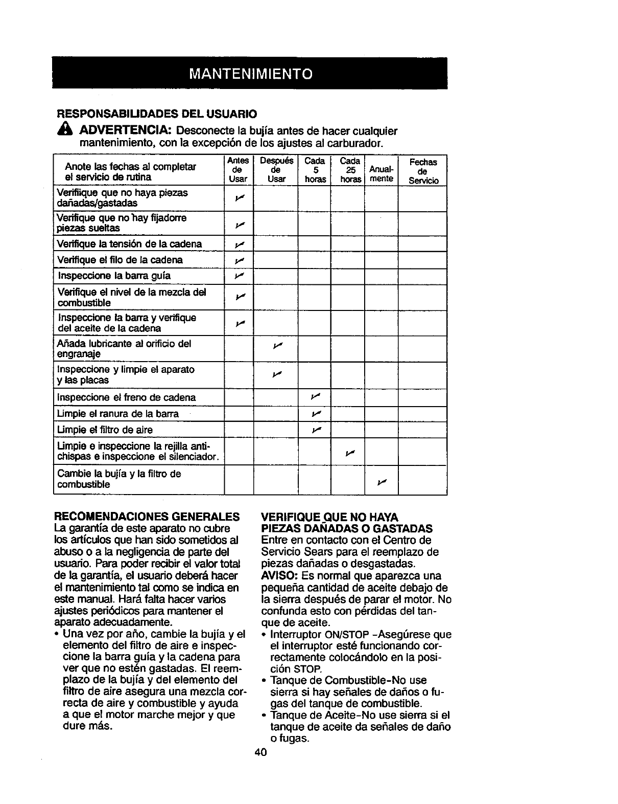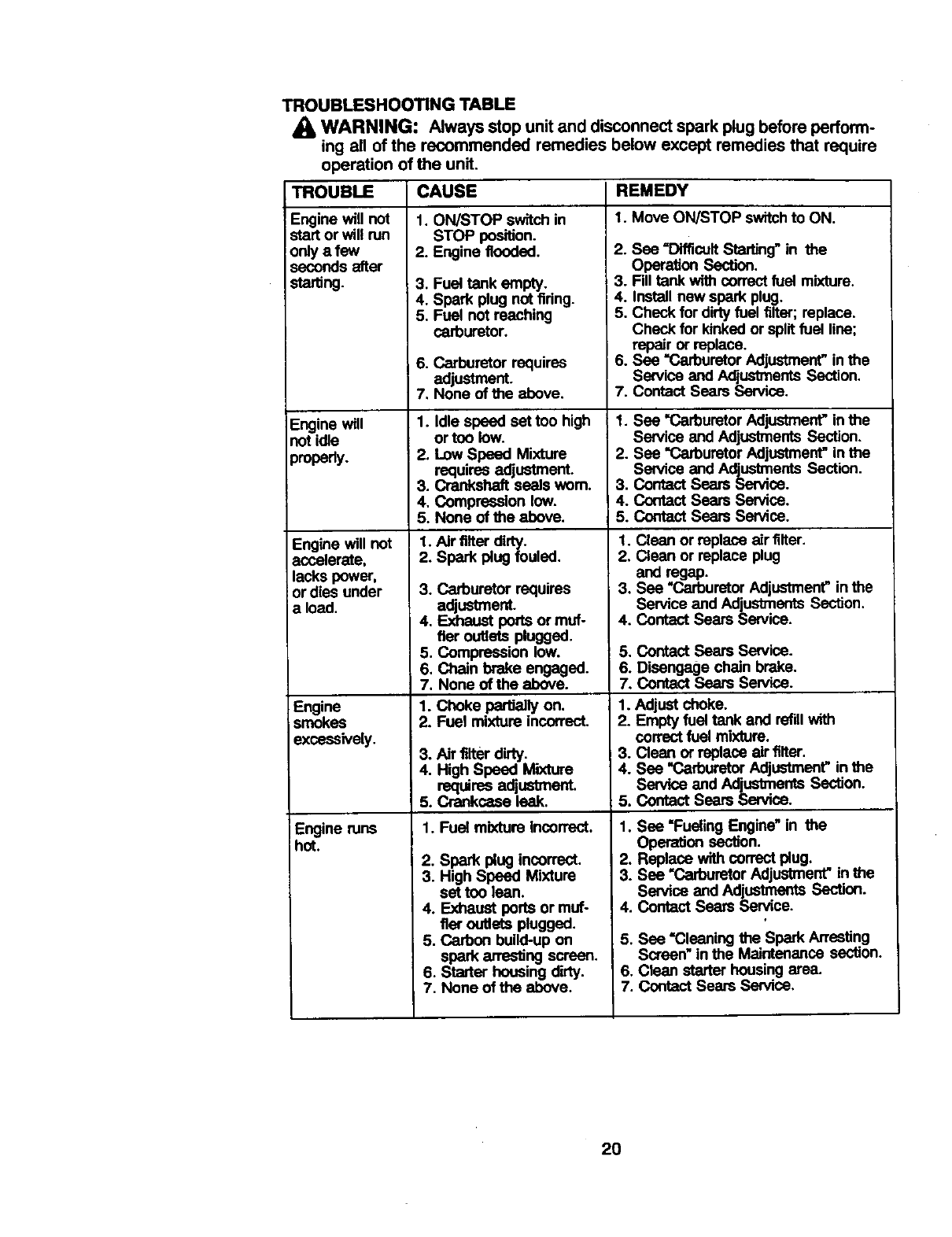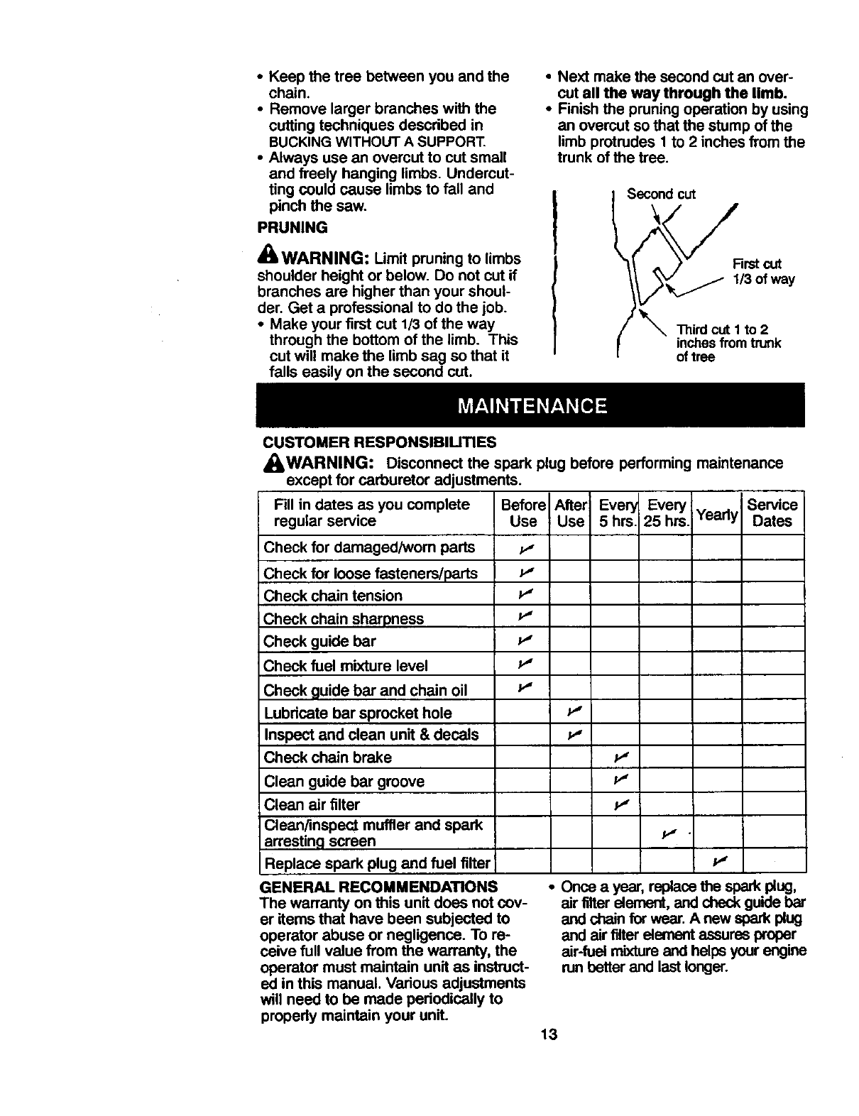 maintained, lubdceted and tuned up according to the instruc_n manual, Sears will