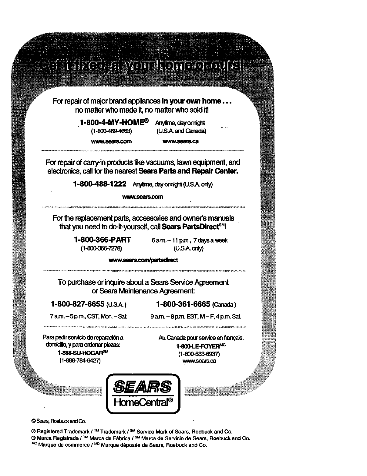 ®Registered Trademark /_MTrademark /sa Service Mark of Sears, Roebuck and Co.