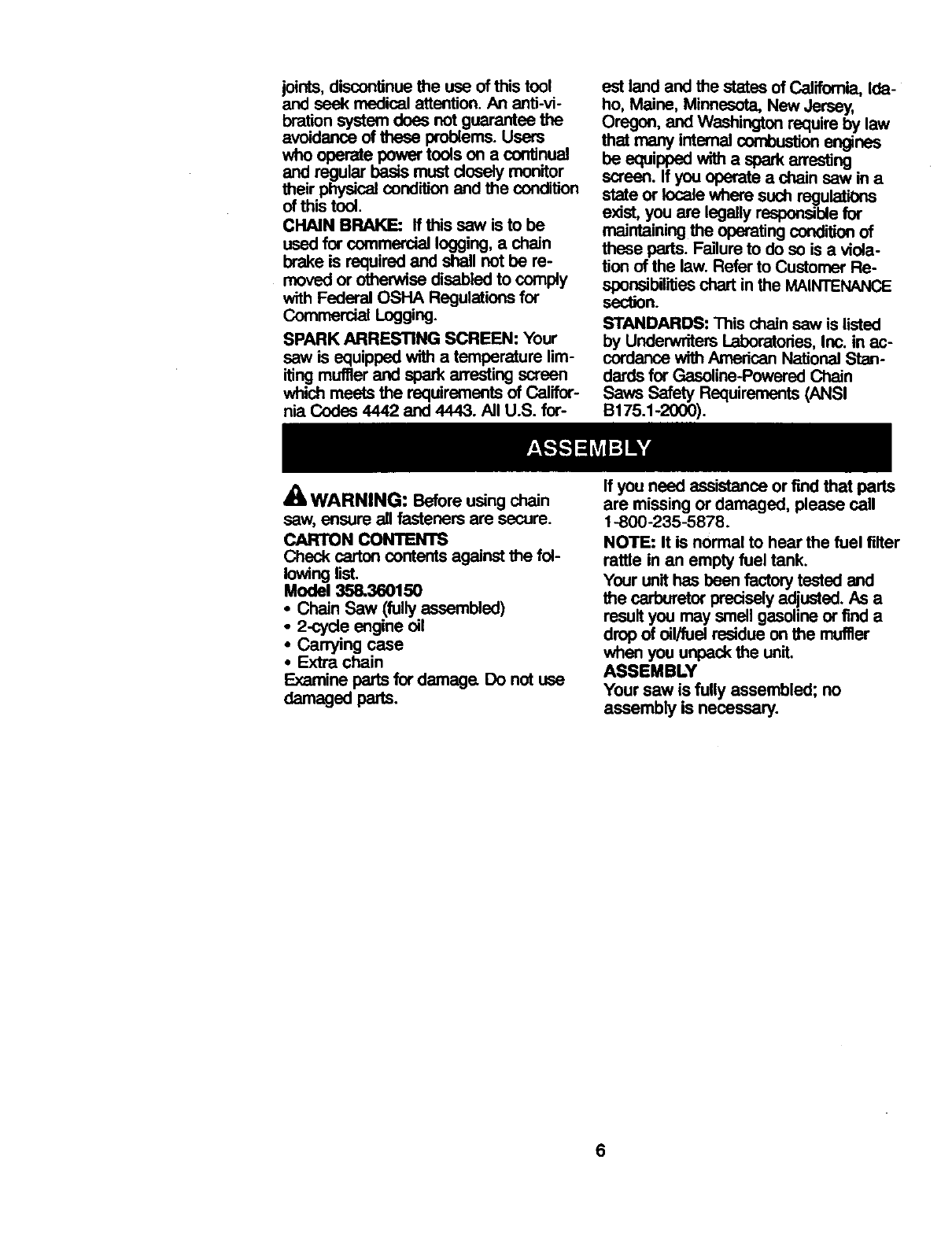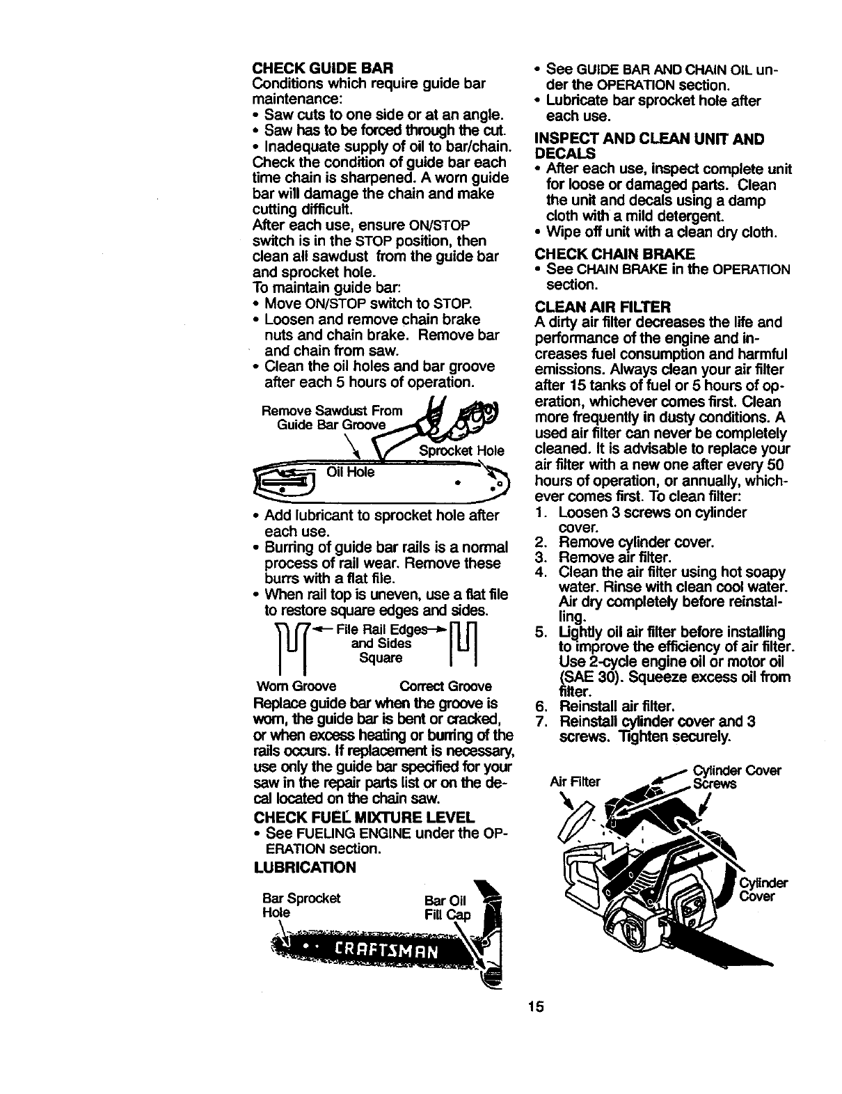 Craftsman 358360150 User Manual CHAIN SAW Manuals And Guides L0112040