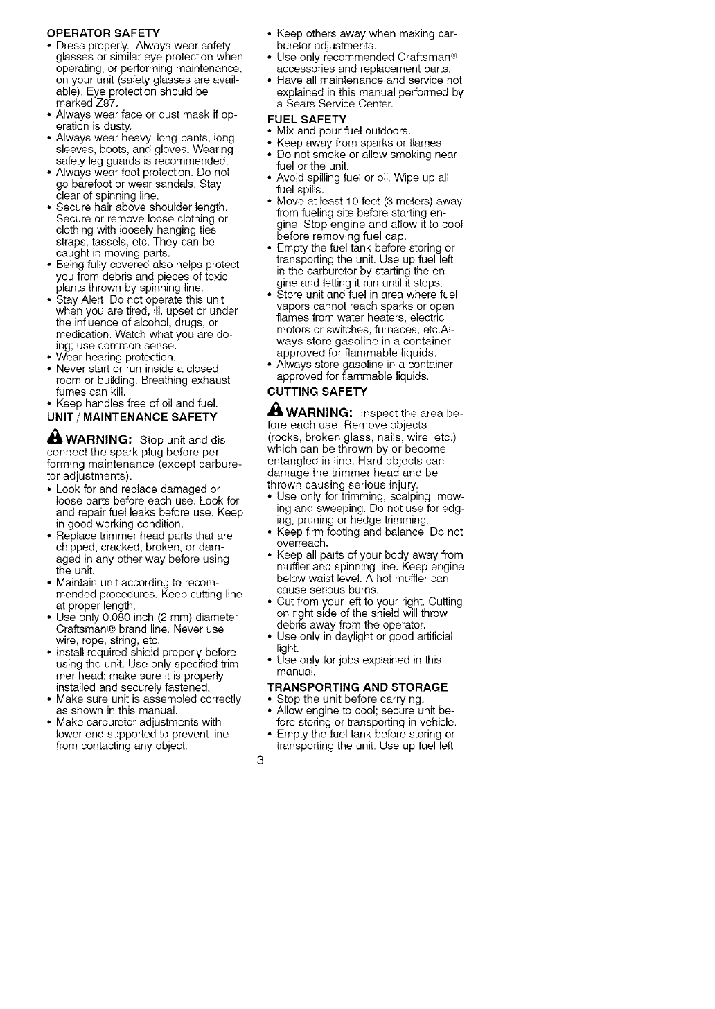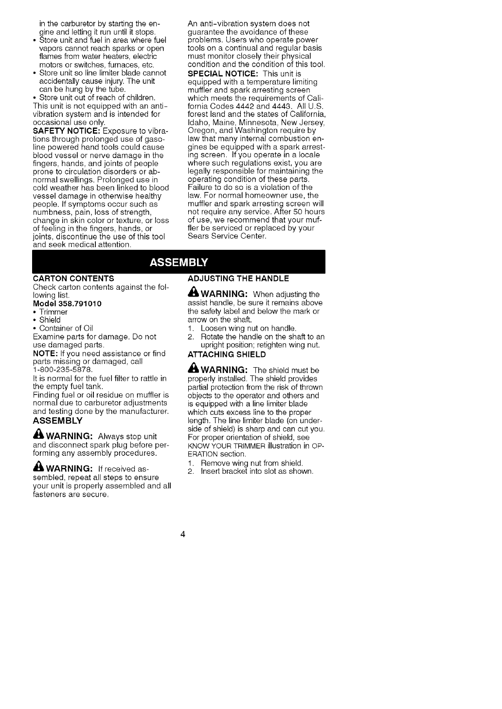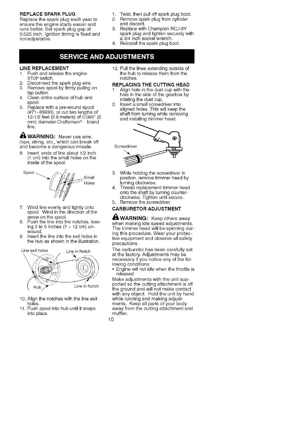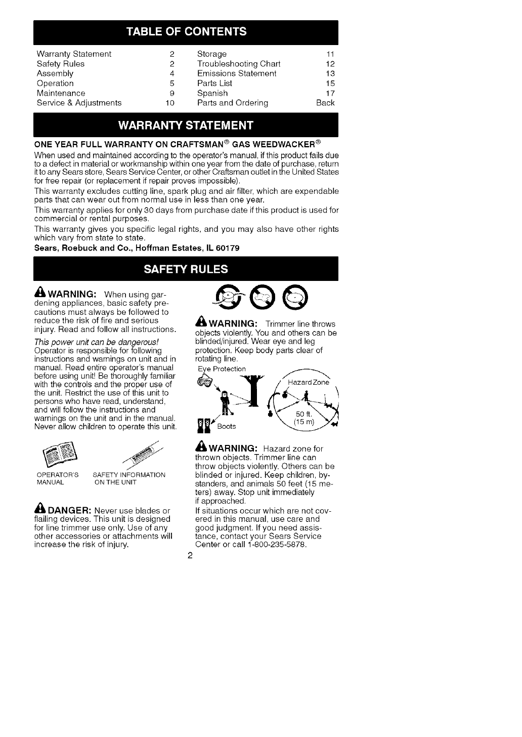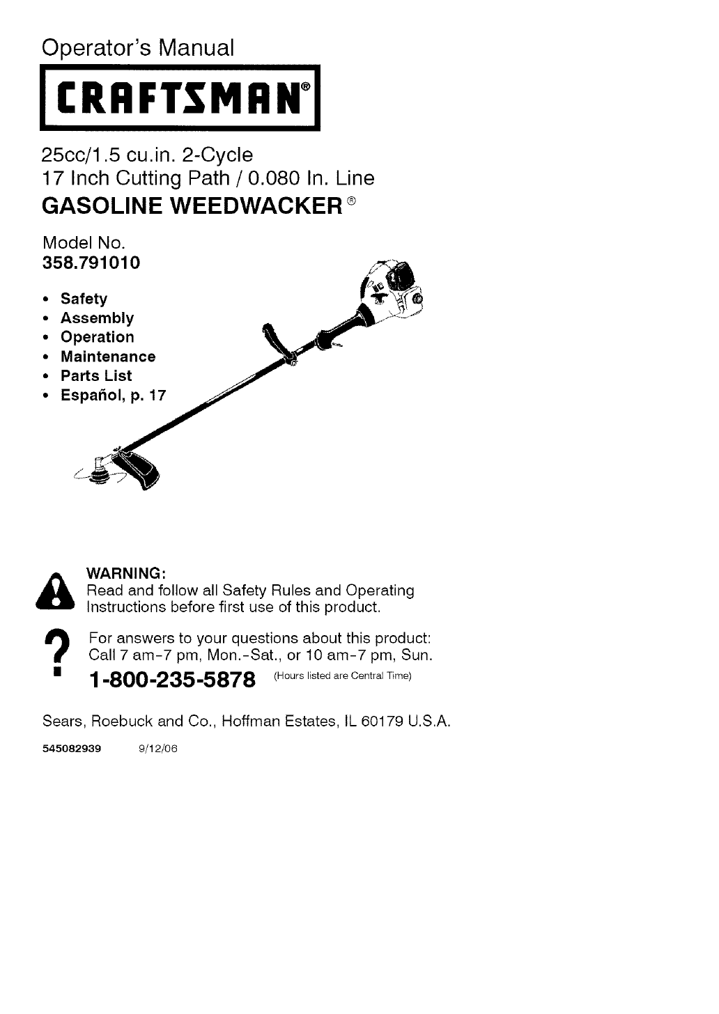 Craftsman 358791010 User Manual WEEDWACKER Manuals And Guides L0609791