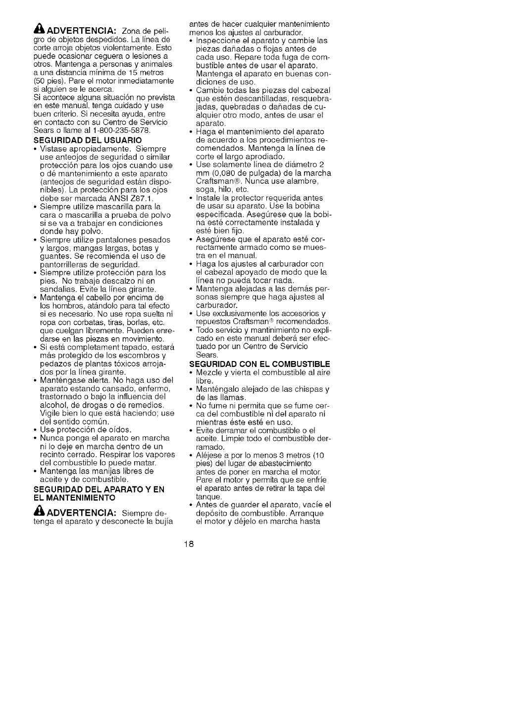 ONE YEAR FULL WARRANTY ON CRAFTSMAN ® GAS WEEDWACKER ®