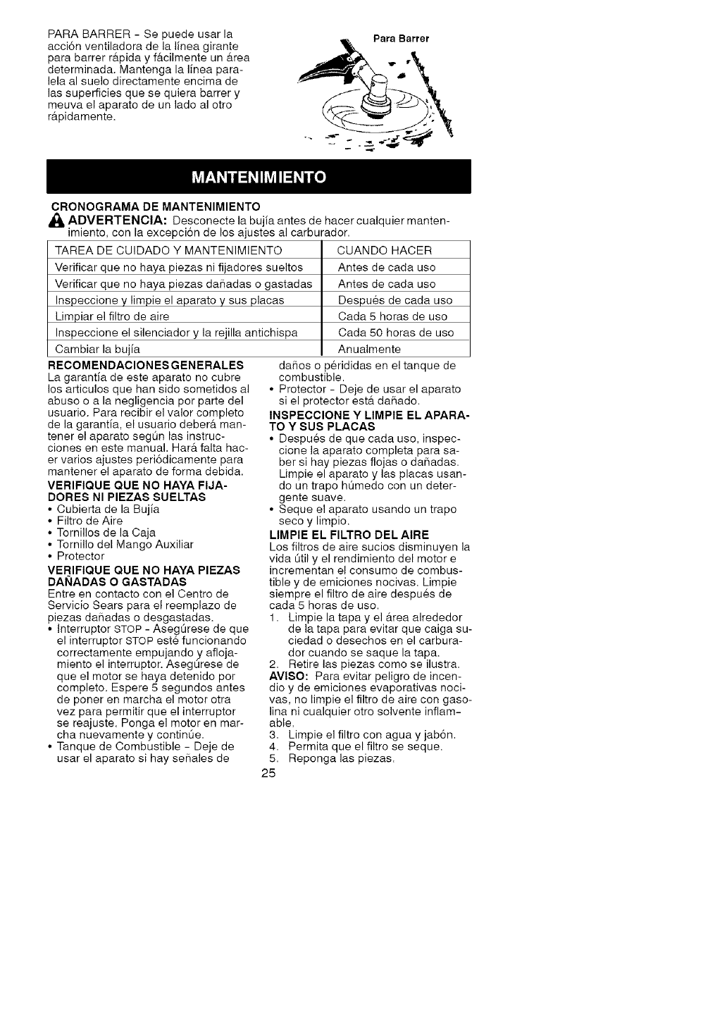 especificaciones de mantenimiento-"----