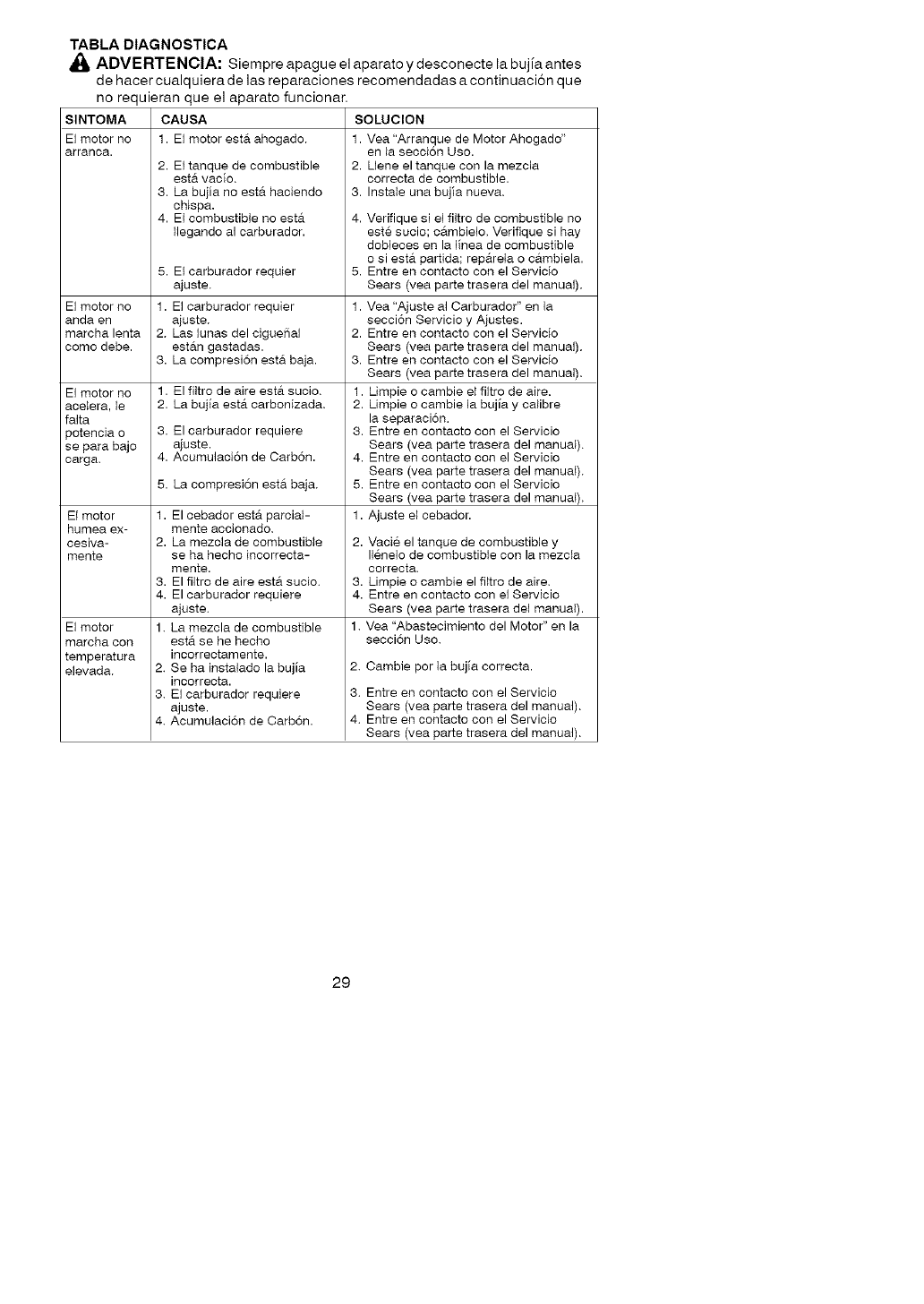 Servicio Sears. Por favor comun-