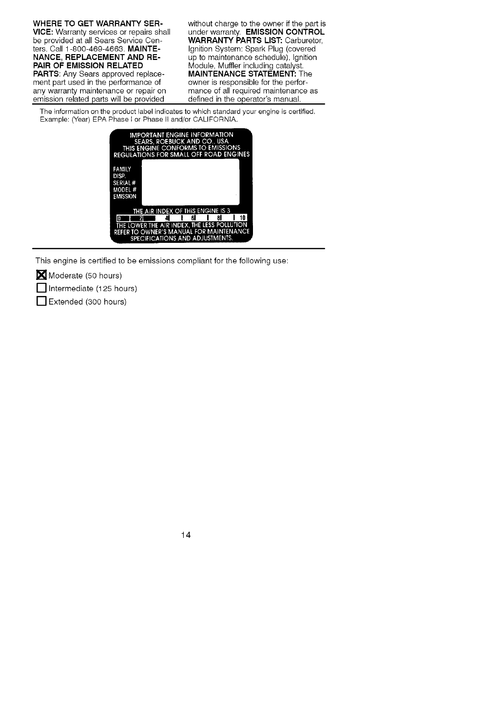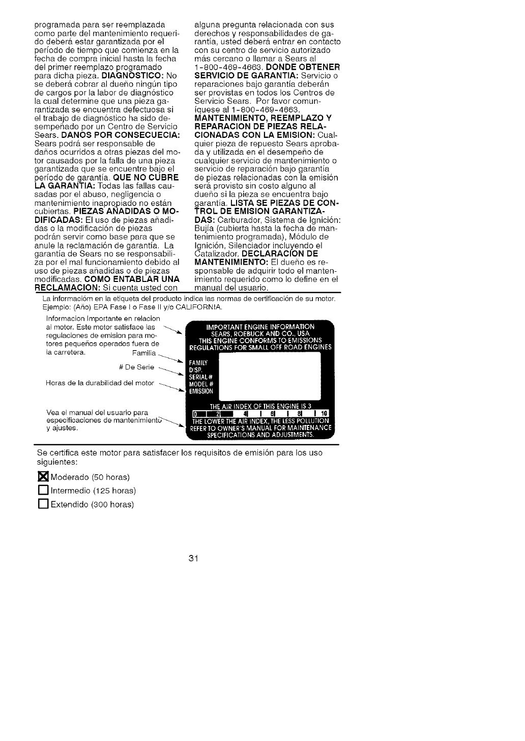 La informaciom en la etiqueta del producto indica tas normas de certificaci6n de su motor.
