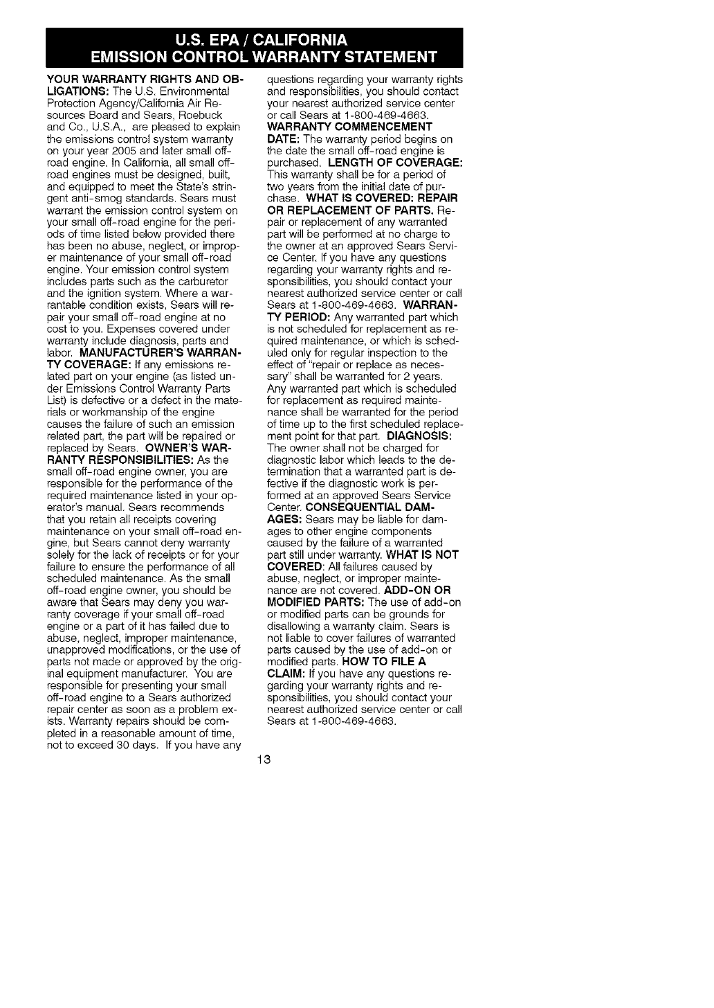 tance, contact your Sears Service