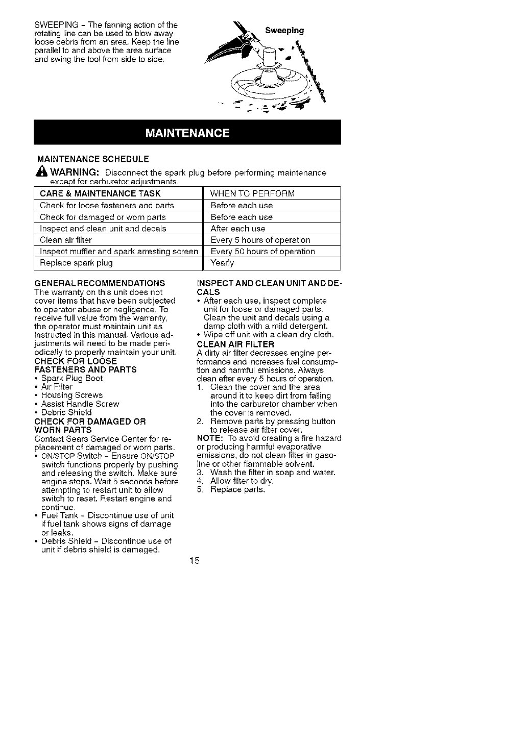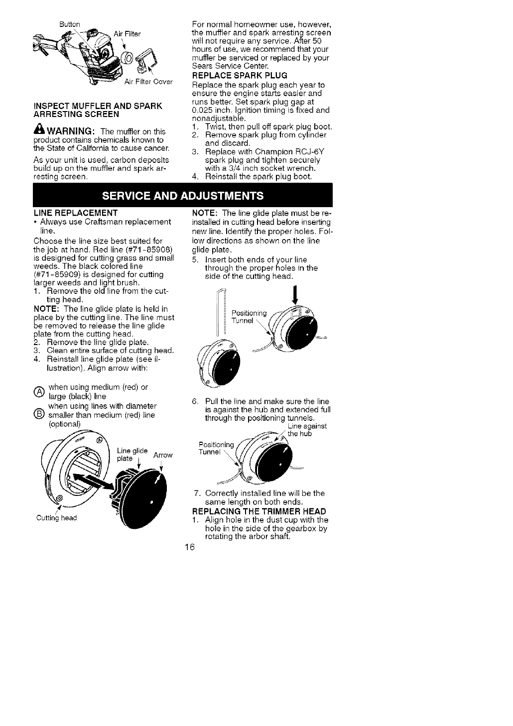 This warranty excludes cutting line, spark plug and air filter, which are expendable