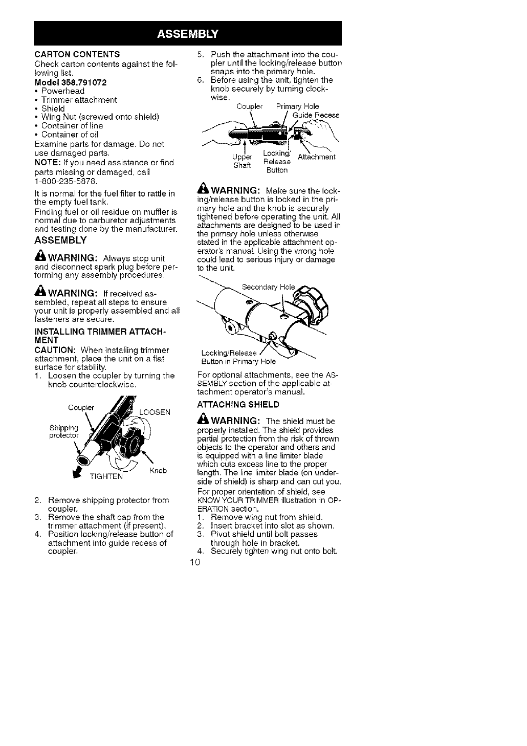Craftsman 358791072 User Manual TRIMMER Manuals And Guides L0808008