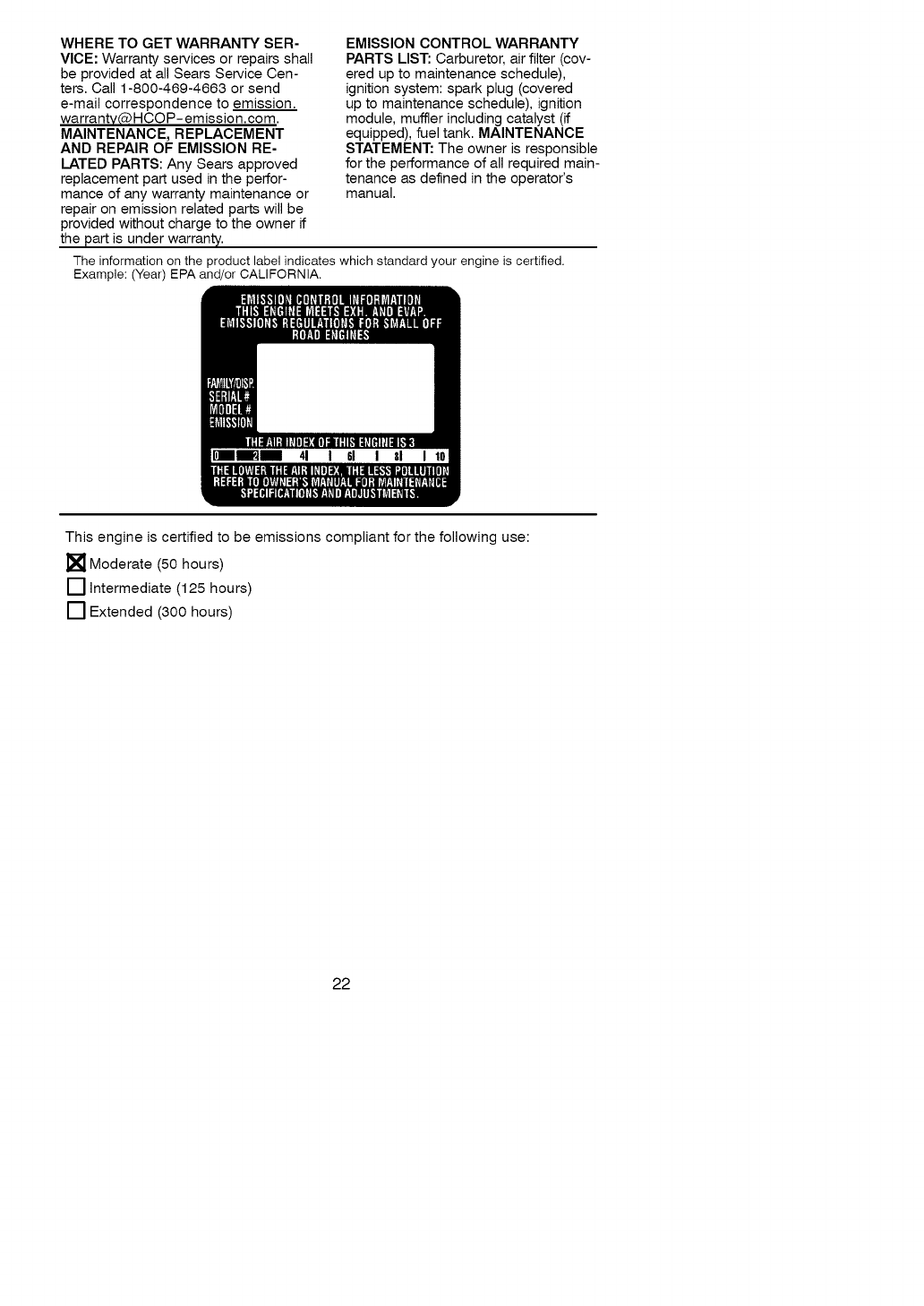 Se certifica este motor para satisfacer los requisitos de emisi6n para los uso