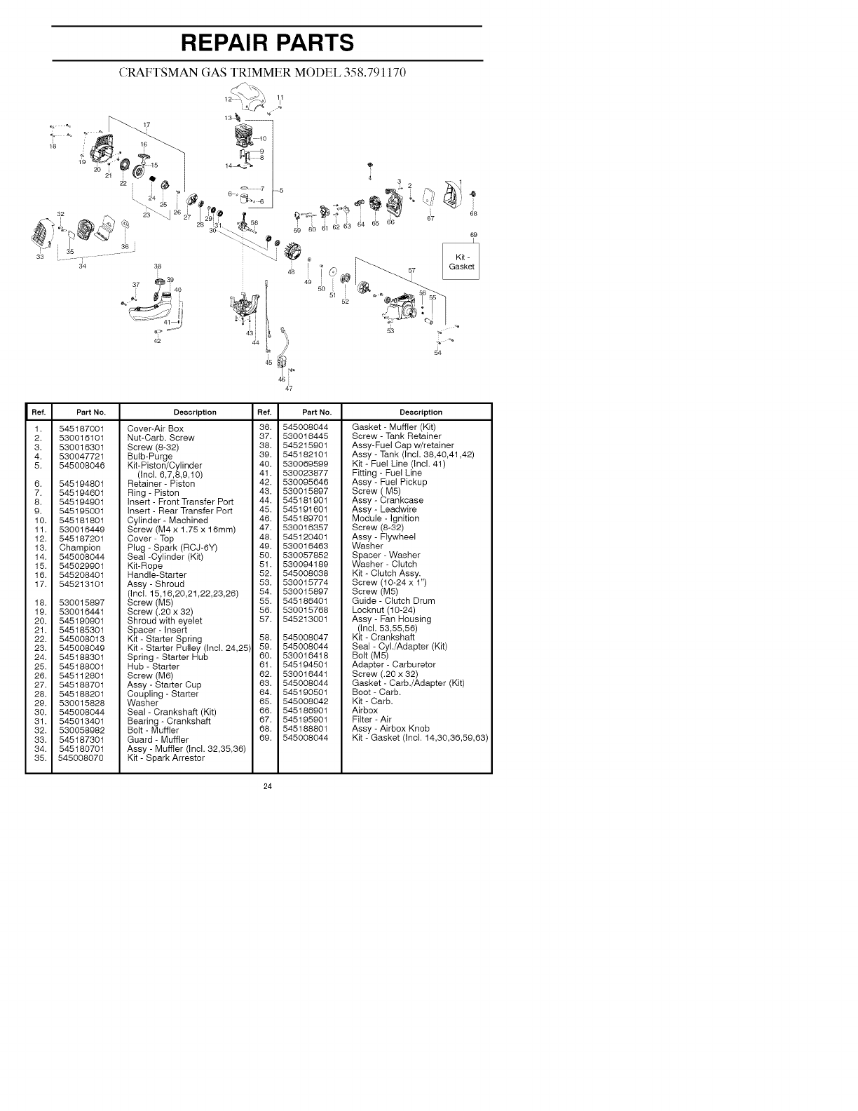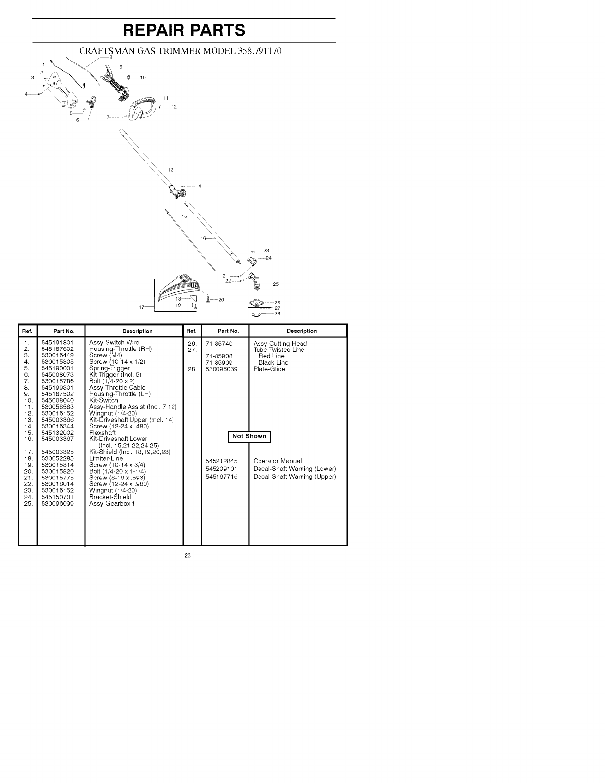 User Manual: Craftsman 358791170 358791170 CRAFTSMAN GAS TRIMMER - Manuals and Guides View the owners manual for your CRAFTSMAN GAS TRIMMER #358791170. Home:Lawn & Garden Parts:Craftsman Parts:358791170 Craftsman Grass trimmer (weed wacker) Manual