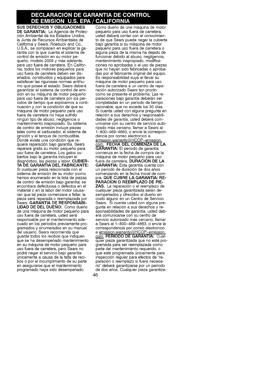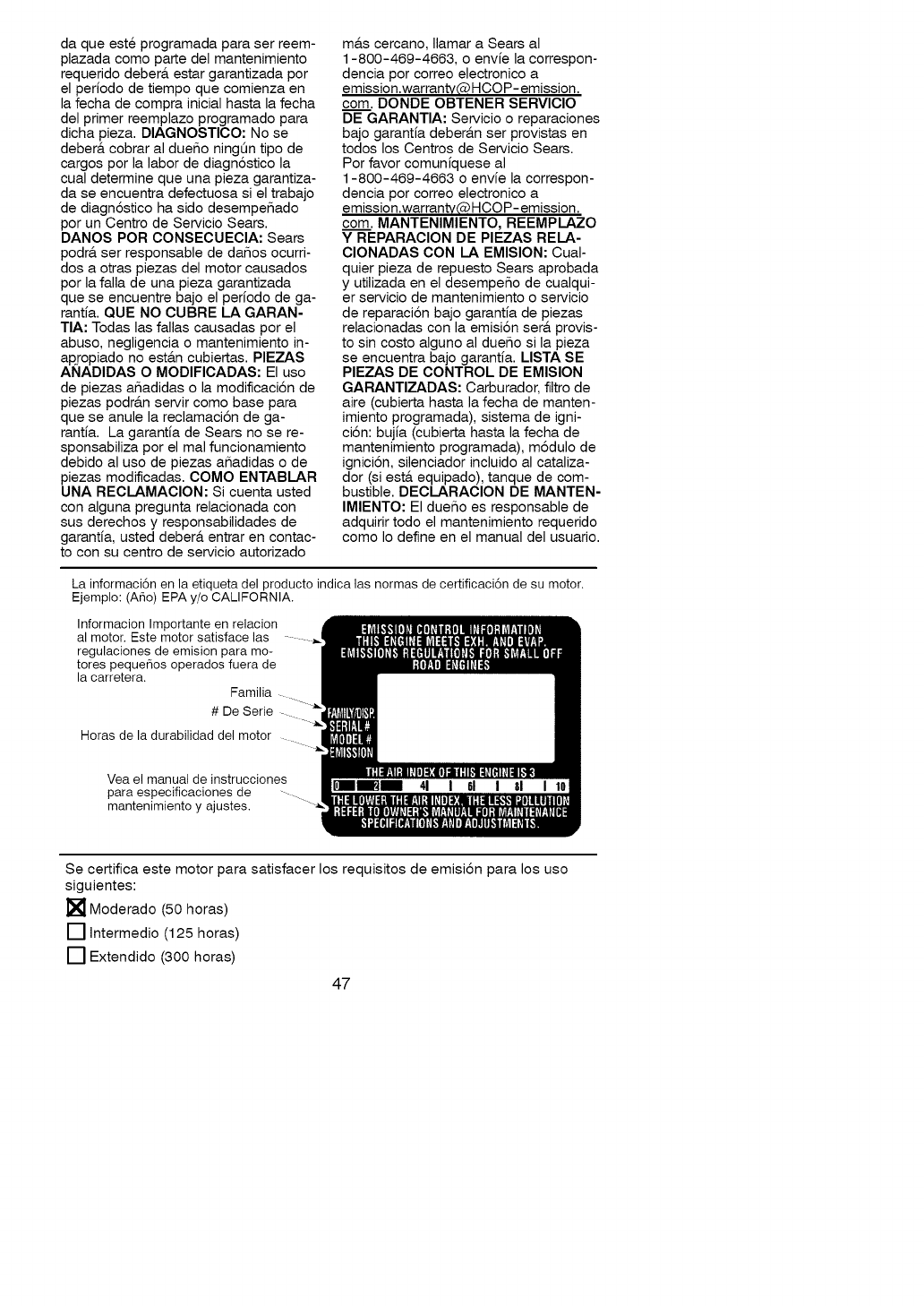 La informaci6n en la etiqueta del producto indica las normas de certificaci6n de su motor.
